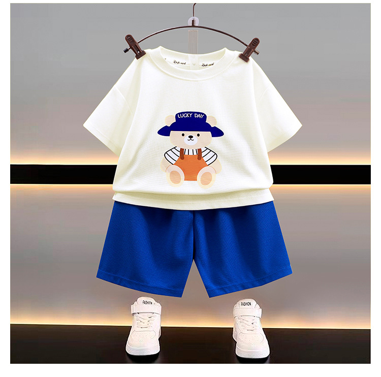 Новая детская летняя детская одежда повседневная свободная одежда для мальчиков с короткими рукавами вафли для детей летом оптом