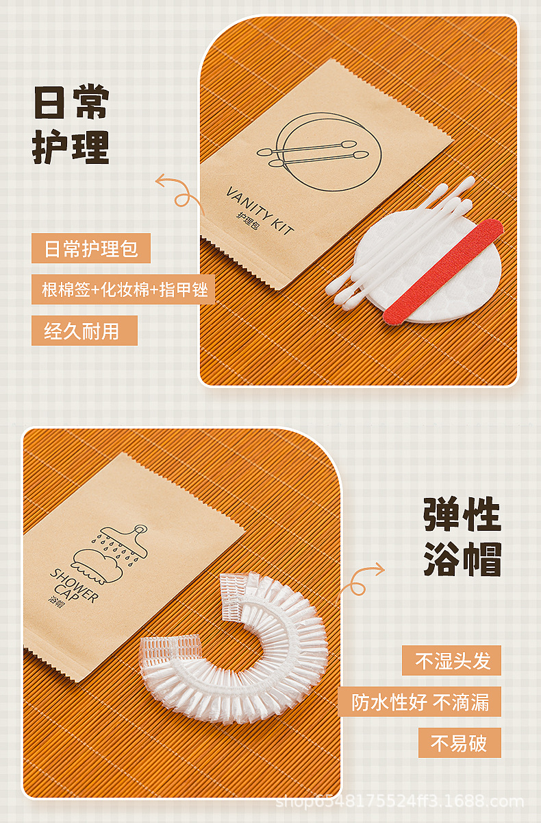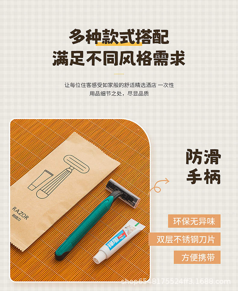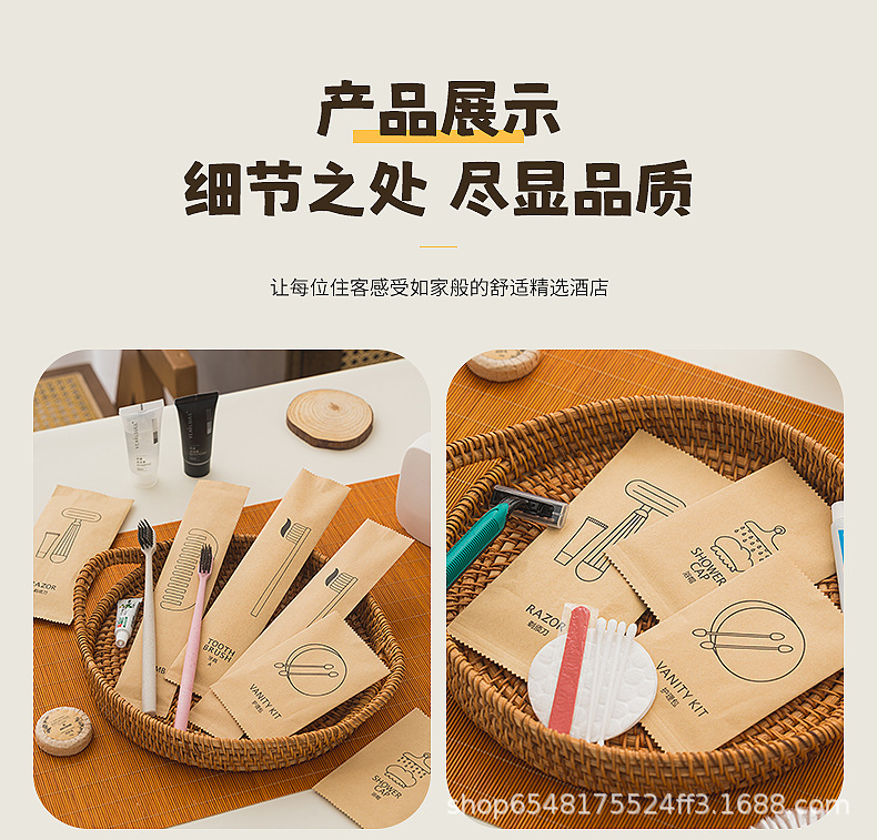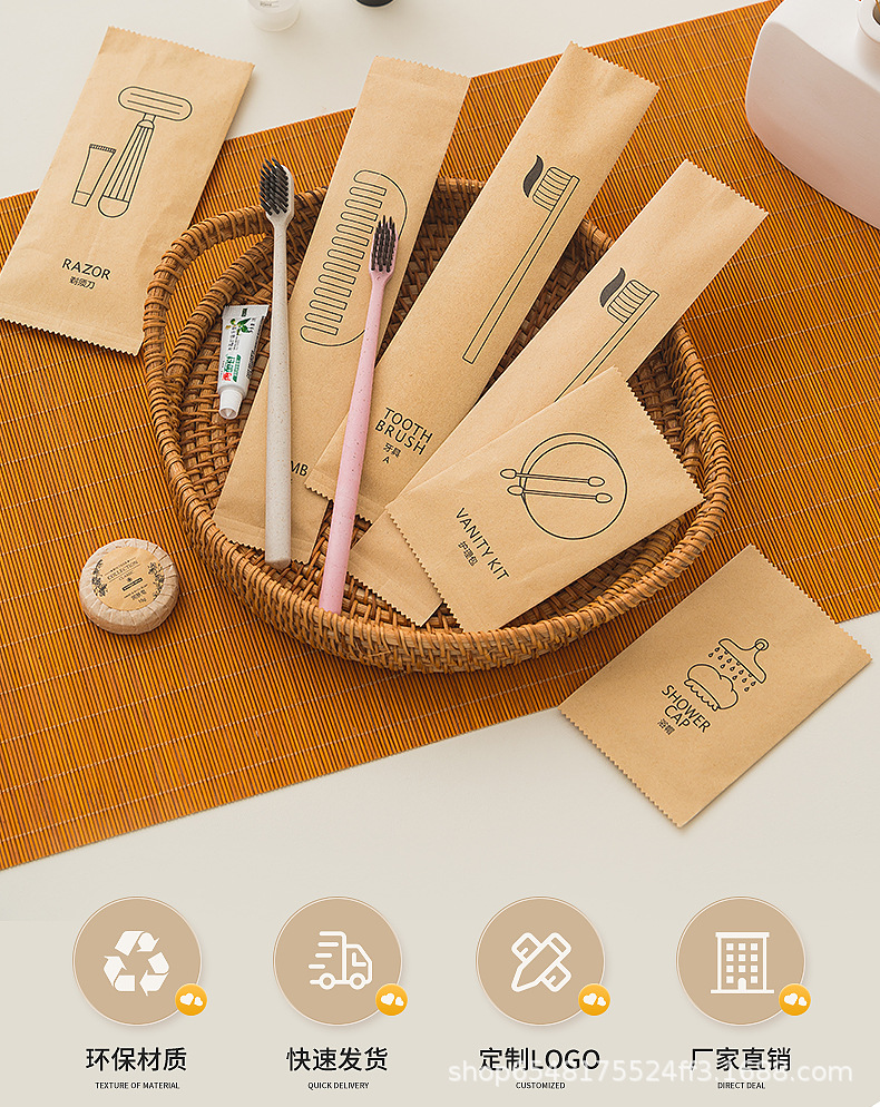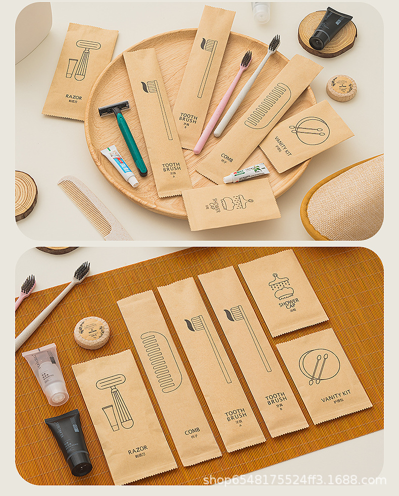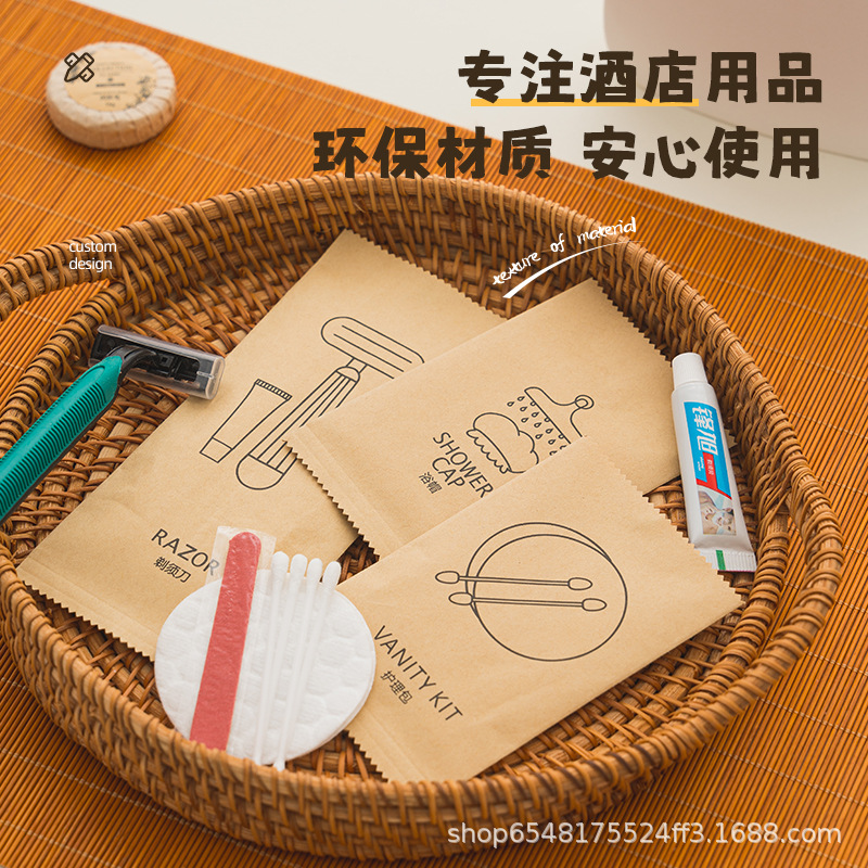 Dental A True Color + мятная зубная паста 3 г [мешок из крафт-бумаги]; Зубная паста Dental B Pink + 3 г мятной зубной пасты [мешок из крафт-бумаги]; Dental A True Color + зубная паста с двусторонней иглой 3 г [мешок из крафт-бумаги]; Dental B Pink + зубная паста с двусторонней иглой 3 г [мешок из крафт-бумаги]; Соломенная расческа-банан [Крафт-бумага]; Шапочка для душа [мешок из крафт-бумаги]; Бритва [Крафт-бумага]; Пакет по уходу [мешок из крафт-бумаги]; Мыло [Крафт-бумага]; Гель для душа 20 мл [черный мягкий флакон]; Шампунь 20 мл [прозрачный мягкий флакон]; Джутовая ткань с узором листьев ивы [поддержка настройки]