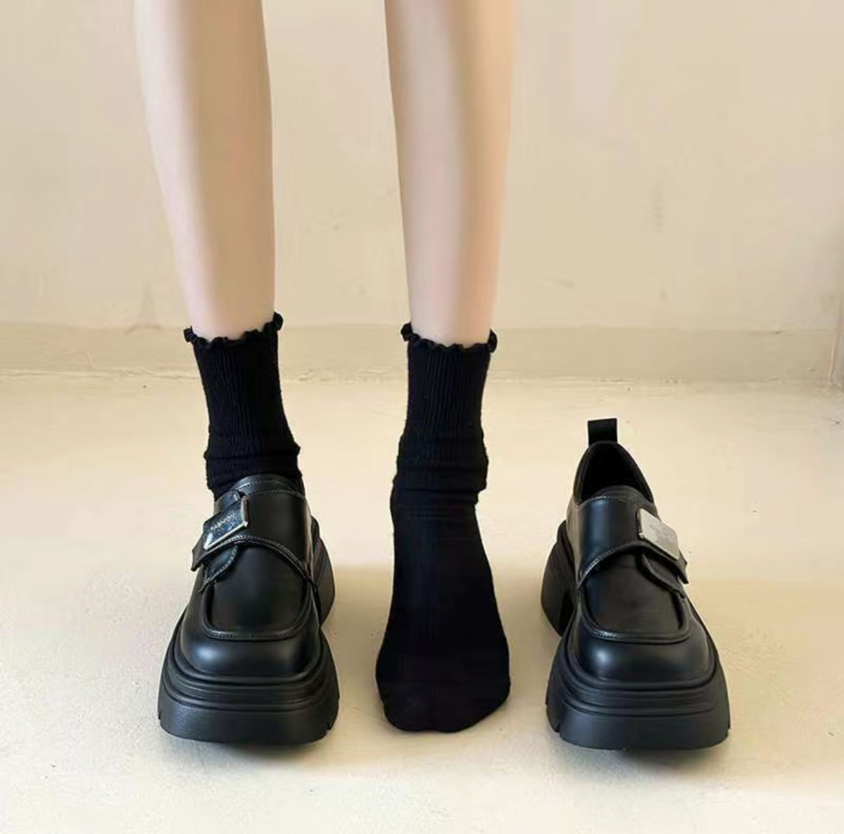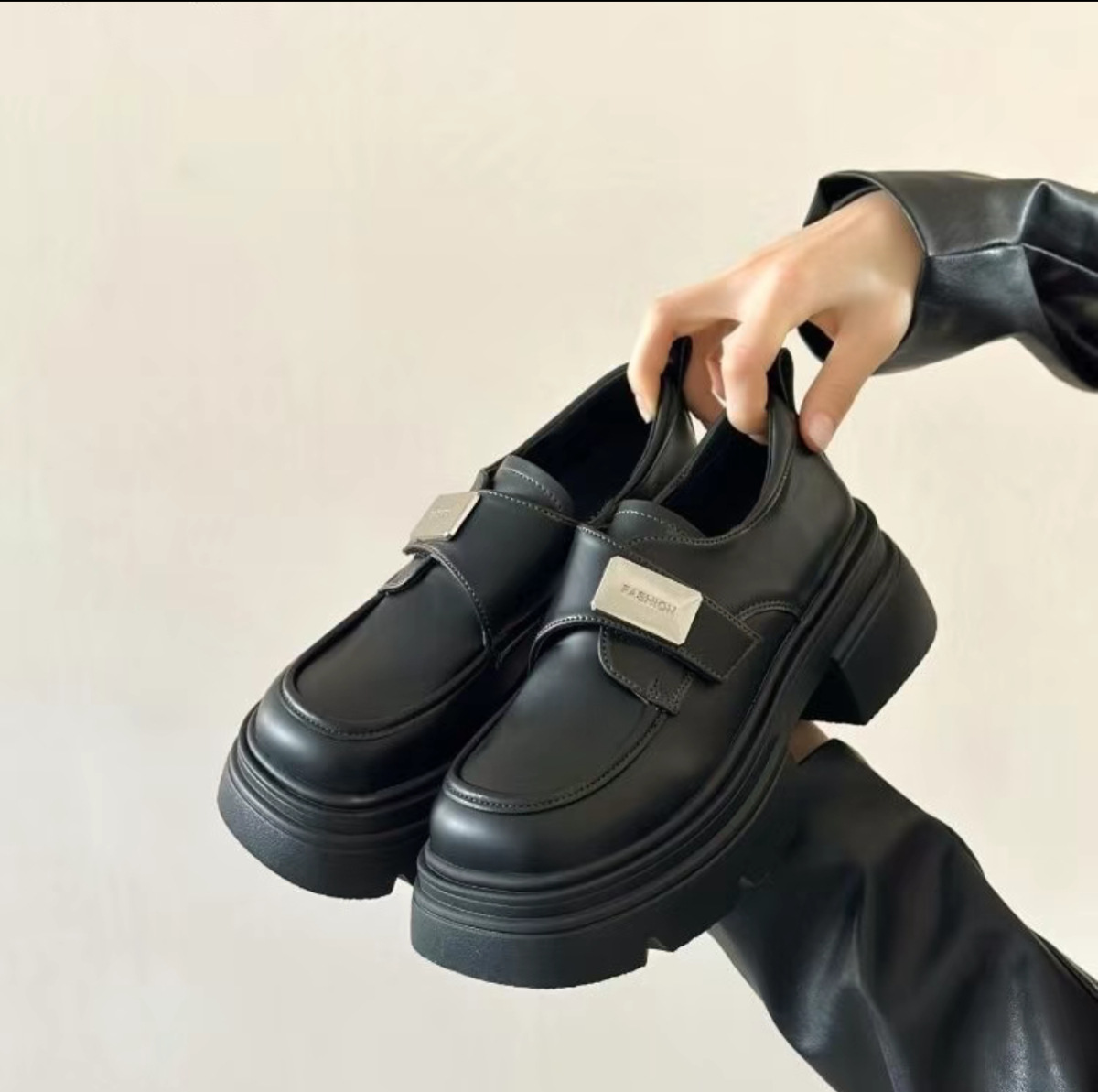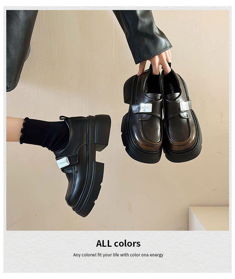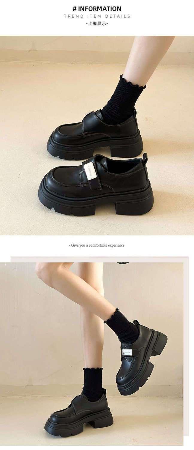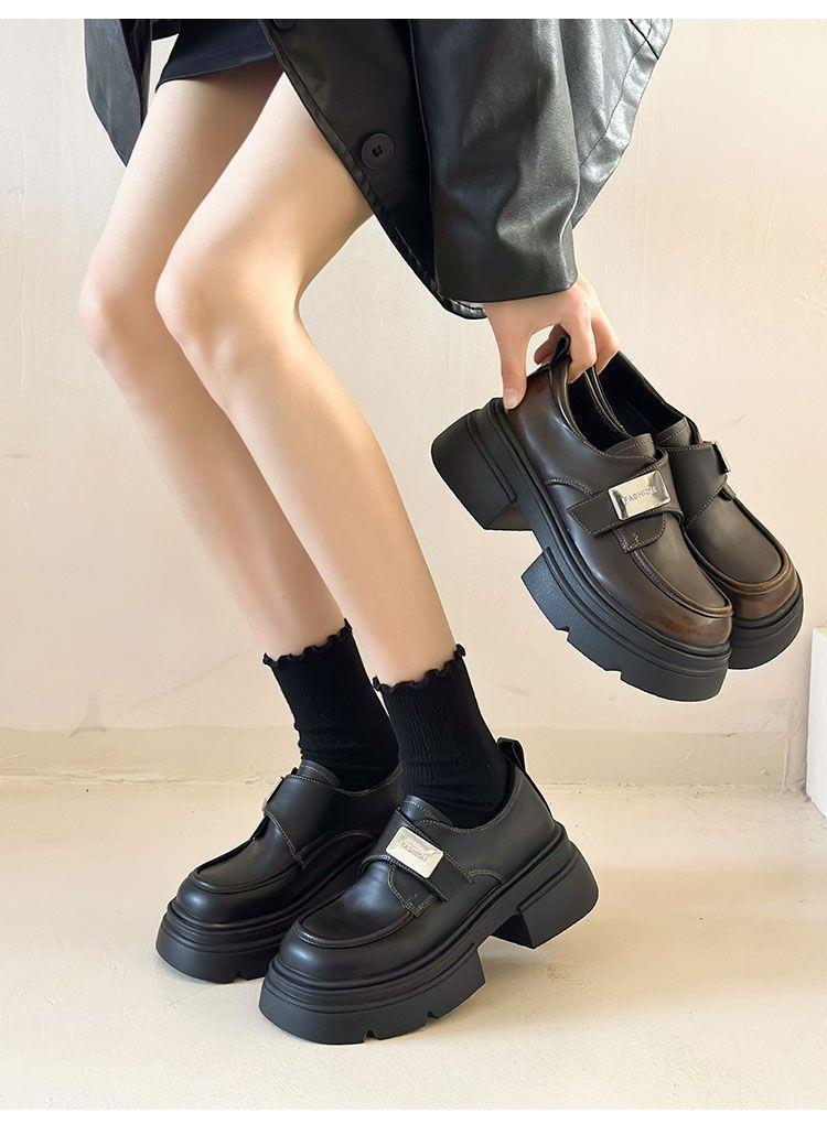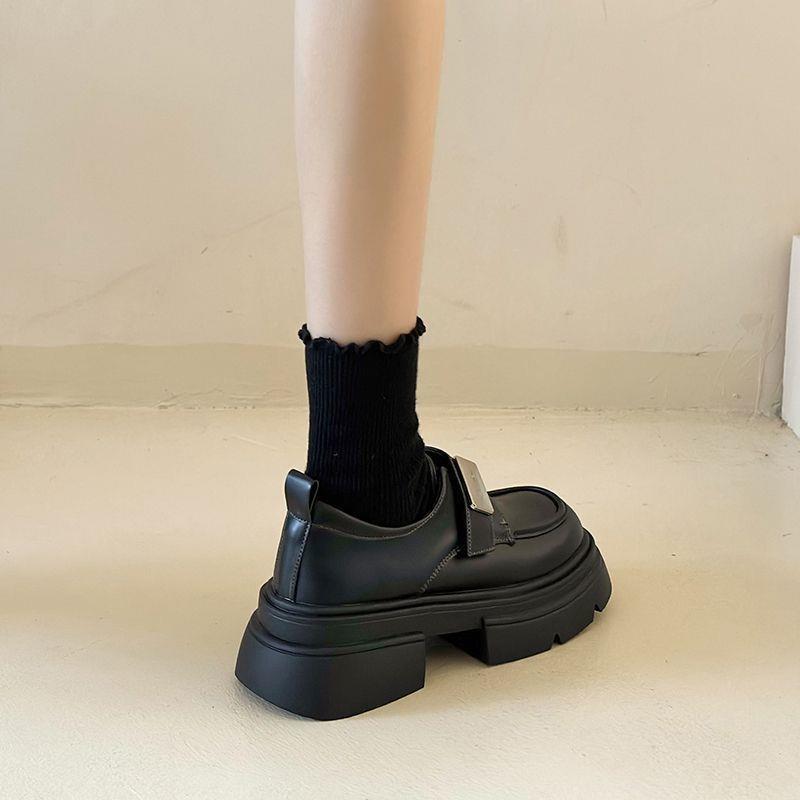 Черные женские лоферы на толстой подошве, слипоны, новинка весна-осень 2026, в стиле французского и японского JK, подходят для сочетания с юбками, кожаные туфли, увеличивающие рост.