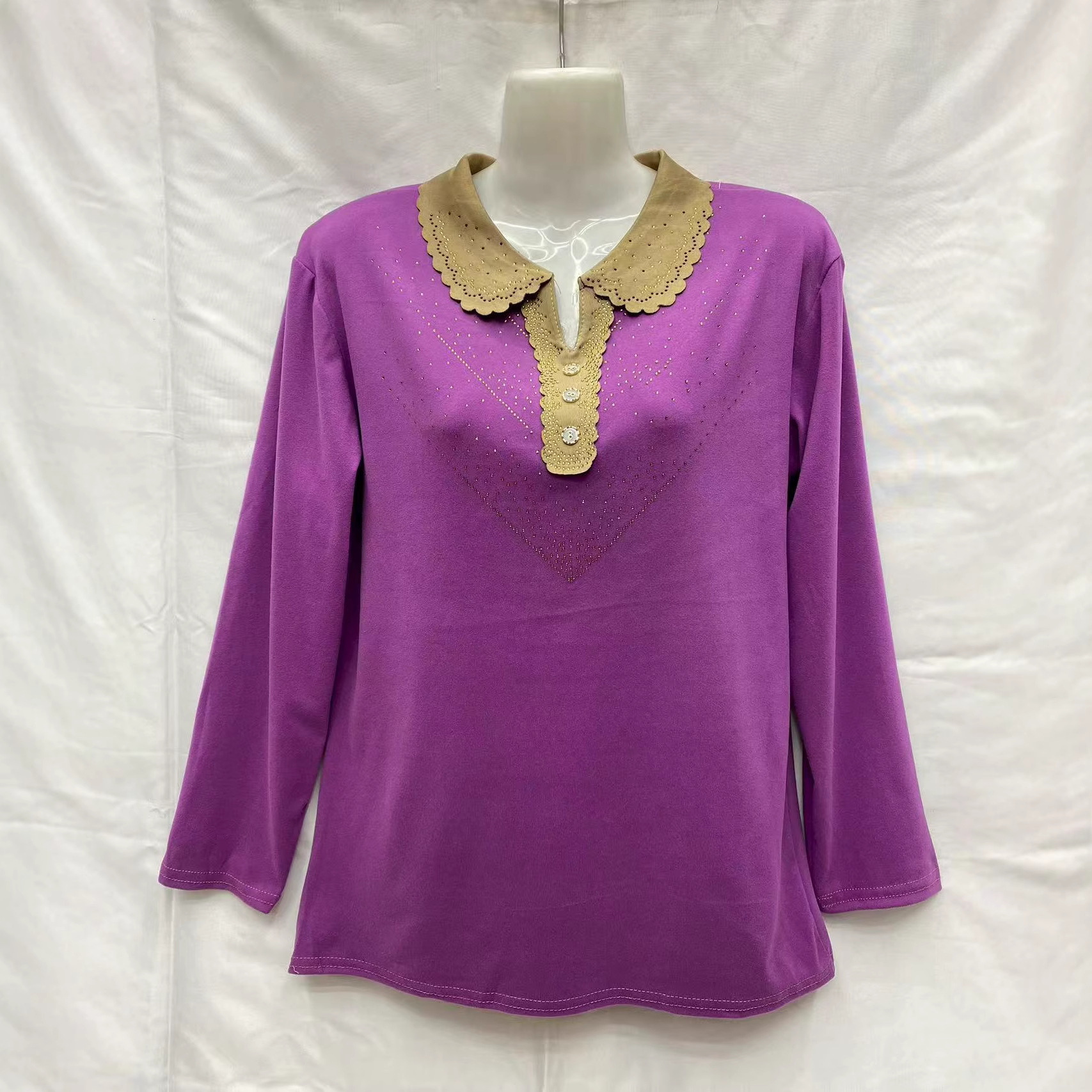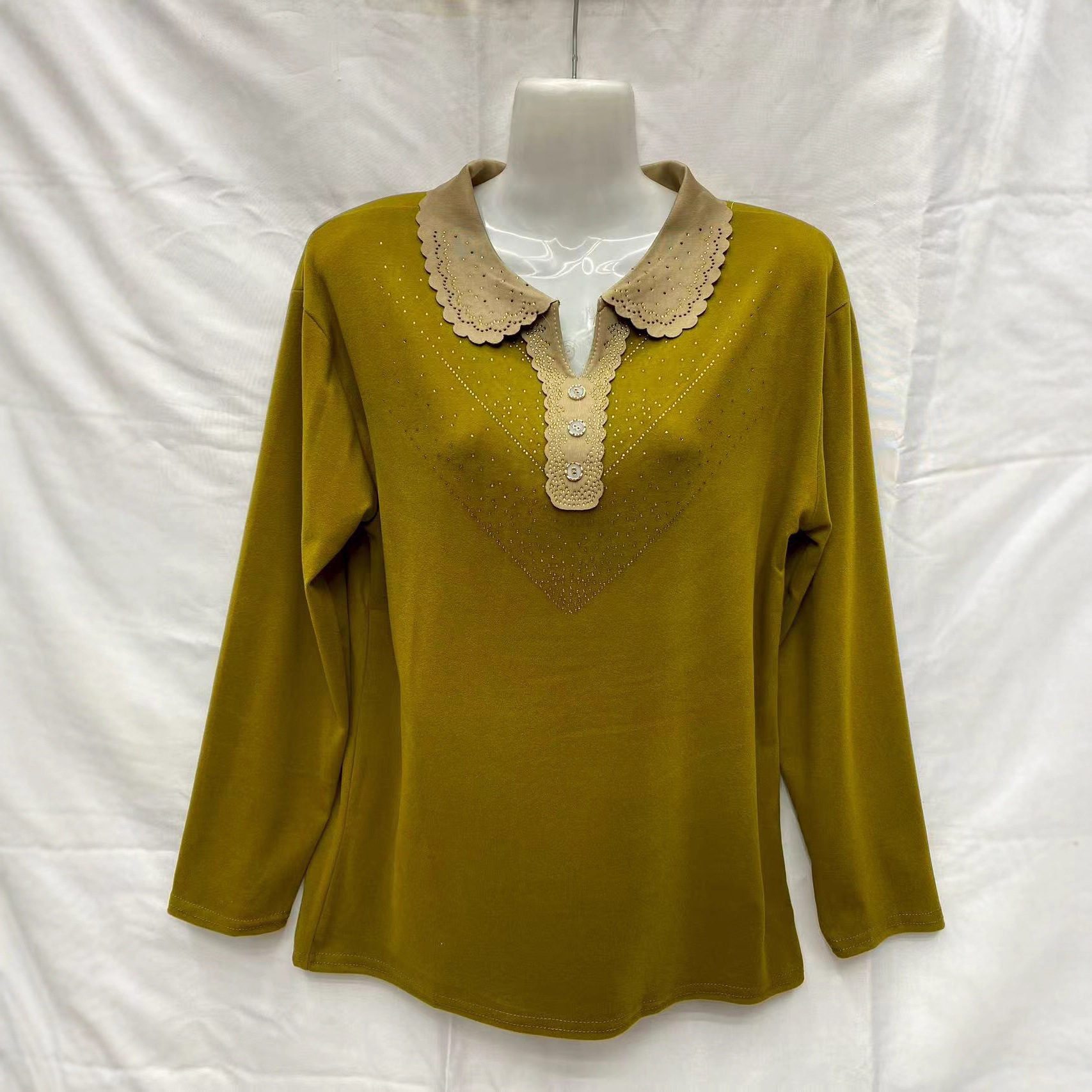 Женская футболка с длинным рукавом, новая, свободного кроя, стройнящая, эластичная, в стиле для женщин среднего возраста, с отложным воротником, весенне-осенняя, осень 2025.