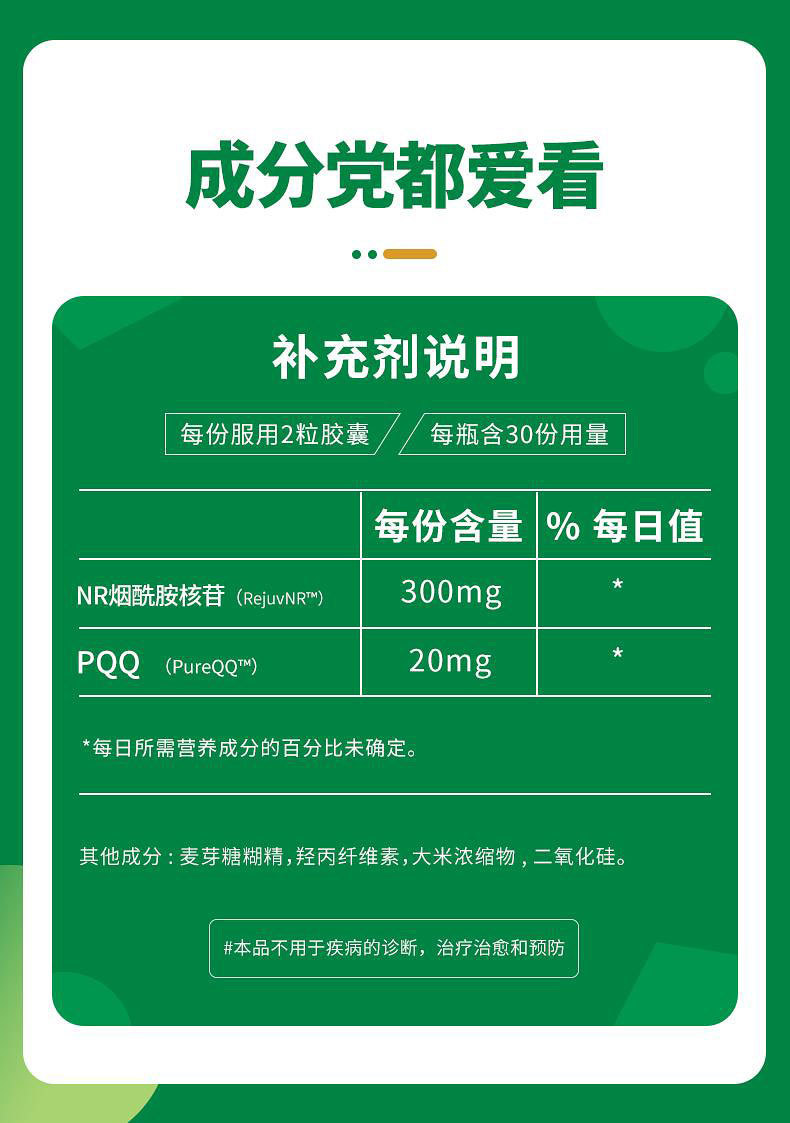 NR никотинамид-рибозид, PQQ, мальтодекстрин, гидроксипропилцеллюлоза, рисовый концентрат, диоксид кремния.