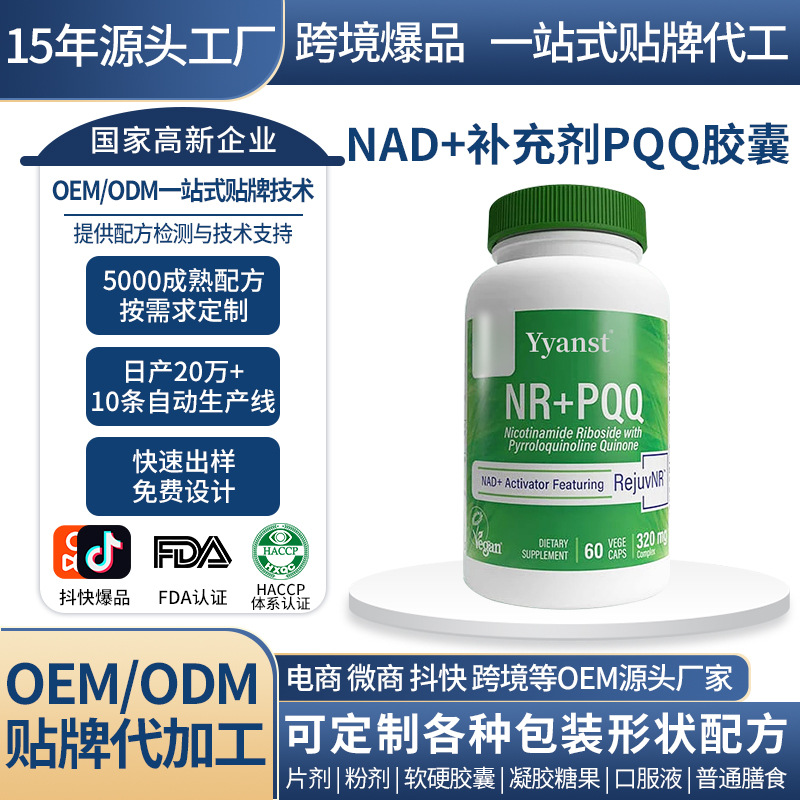 Кросс-бордерная американская оригинальная добавка NAD+ в капсулах PQQ, роскошная бутылка HTN, капсулы OEM, индивидуальная обработка