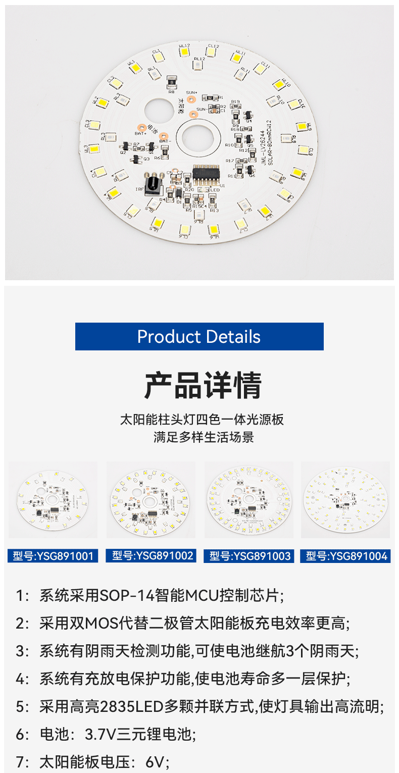 Солнечная колонная фара с четырехцветной интегрированной световой панелью, прямые поставки с завода, поддержка индивидуального заказа, аксессуары для солнечных световых панелей.
