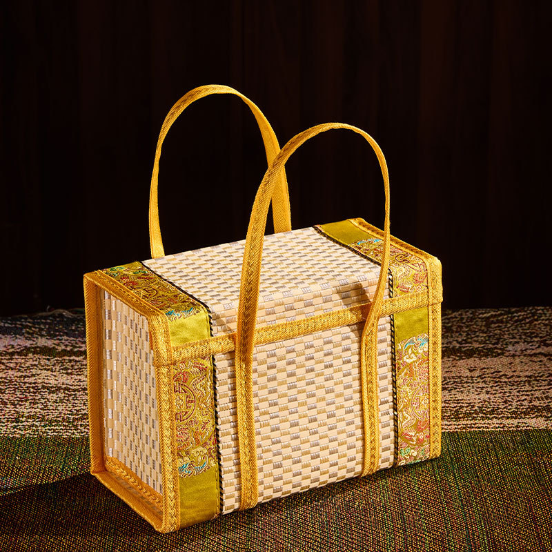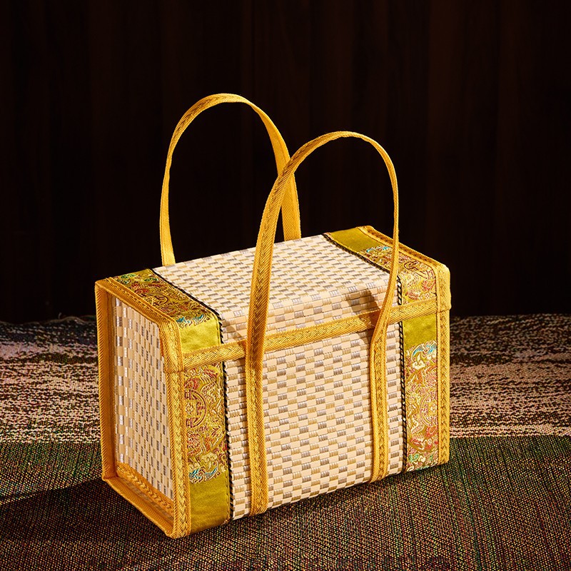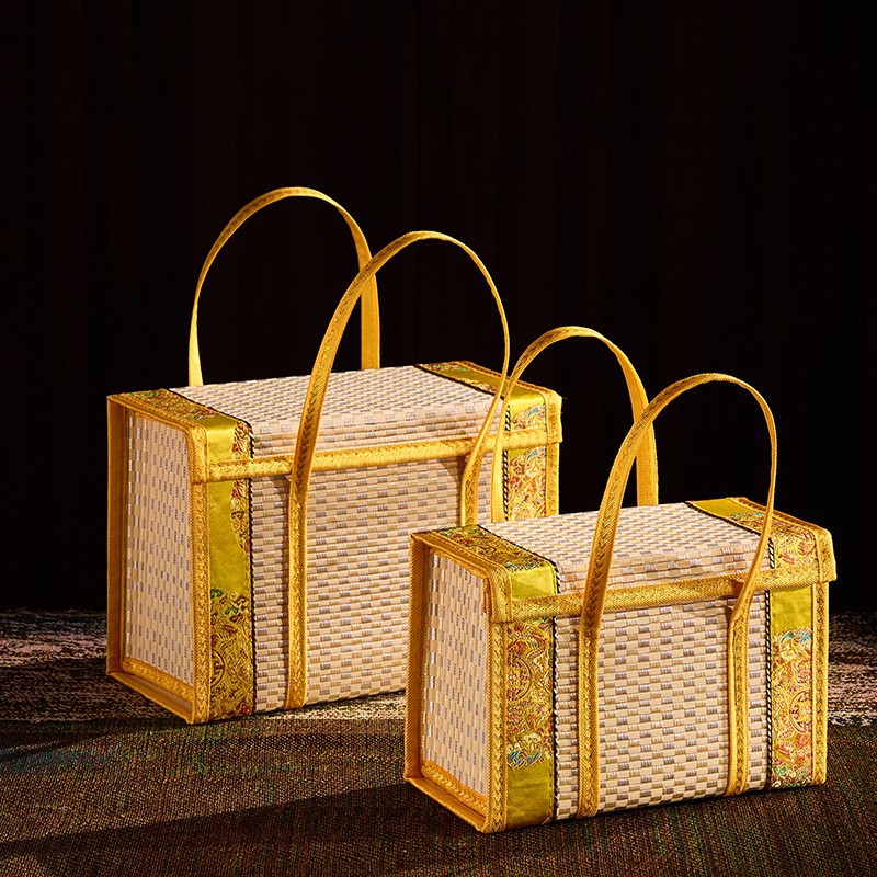 Бамбуковая корзина Ручная корзина Ручная рисовая колбаса, бекон, лунный пирог, крабовый новогодний продукт, фрукты, специальные продукты, складная бамбуковая коробка, упаковка