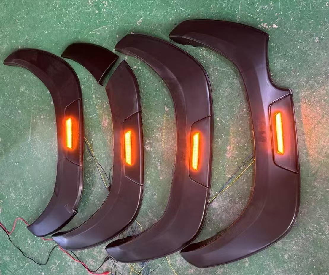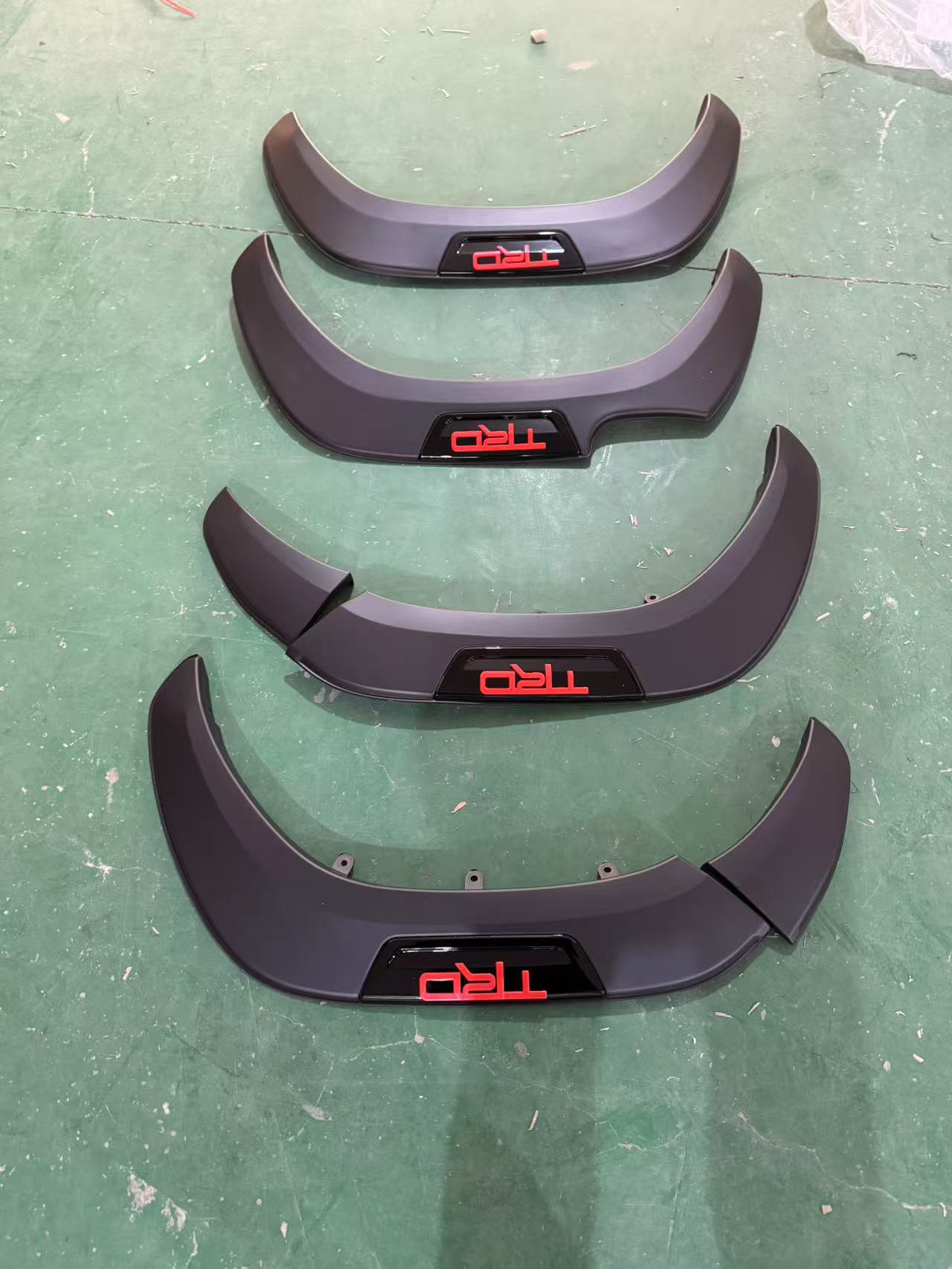 бровка колеса hilux revo (серый кусок); бровь колеса hilux revo (красная пленка); бровка колеса hilux revo (лист с рисунком из углеродного волокна); бровка колеса hilux revo (с подсветкой)