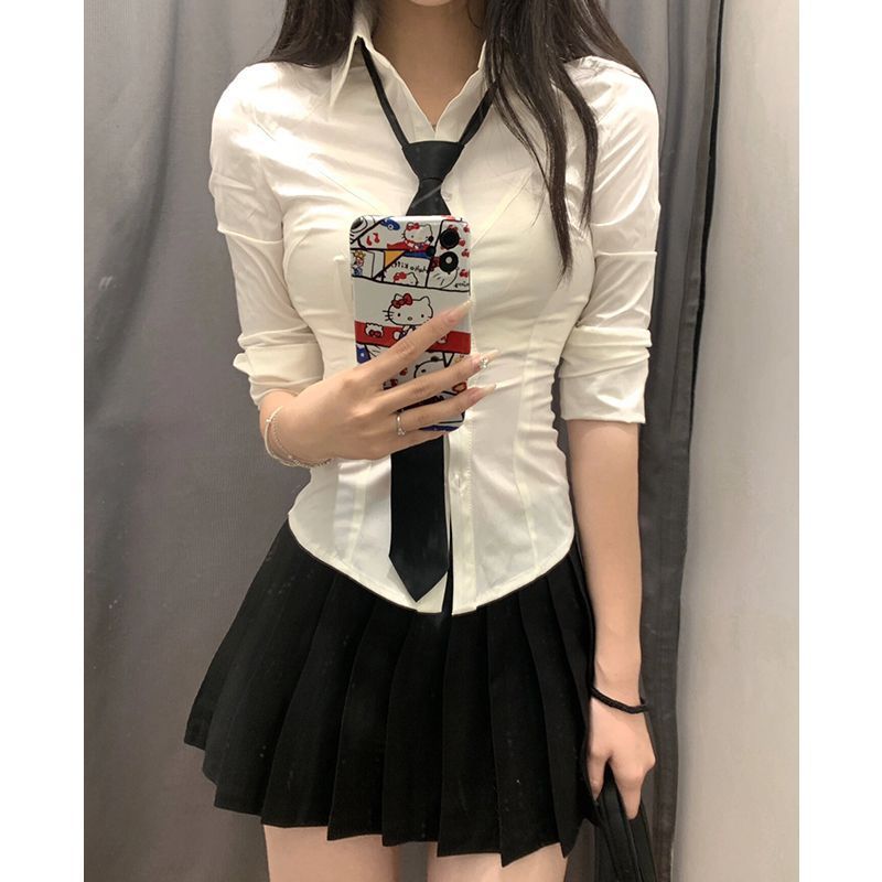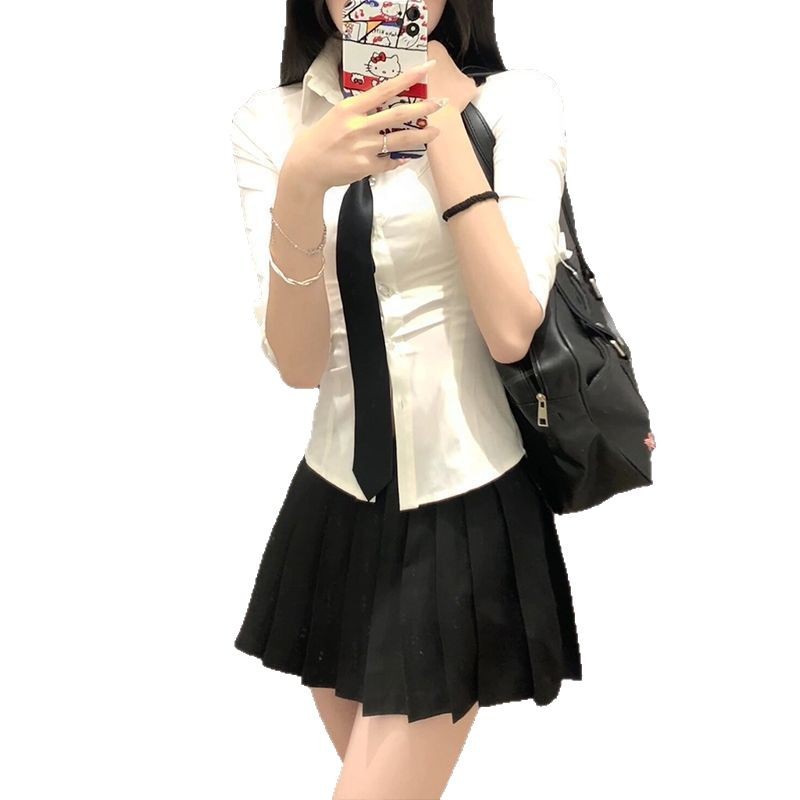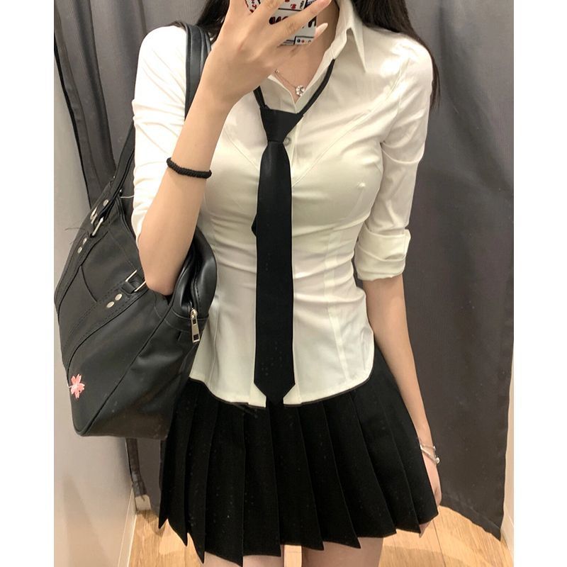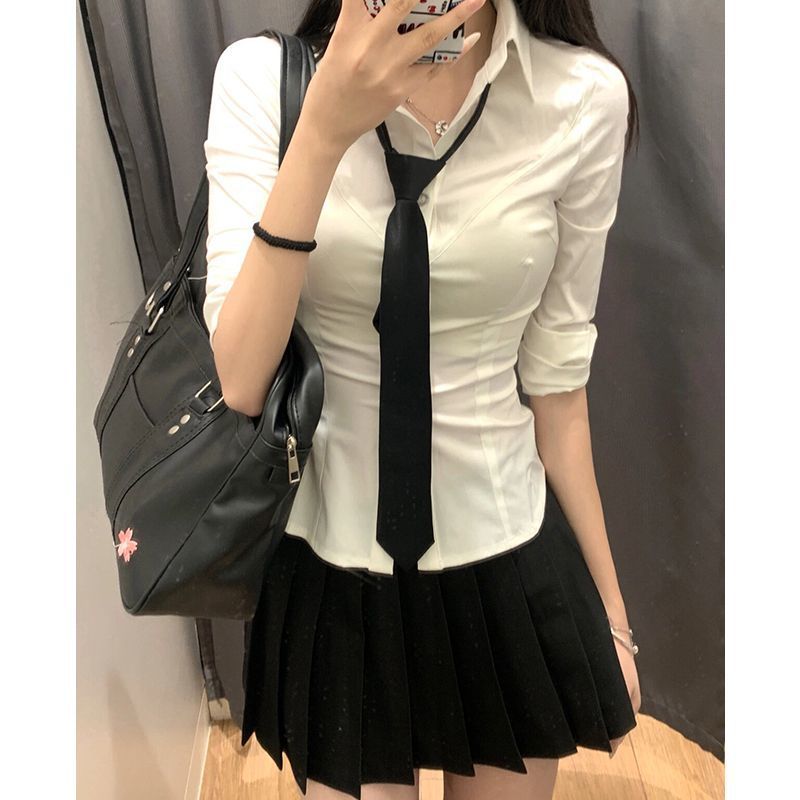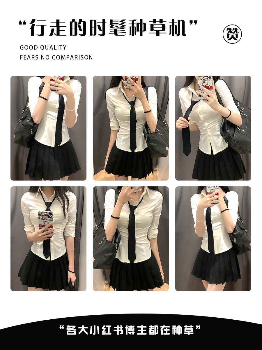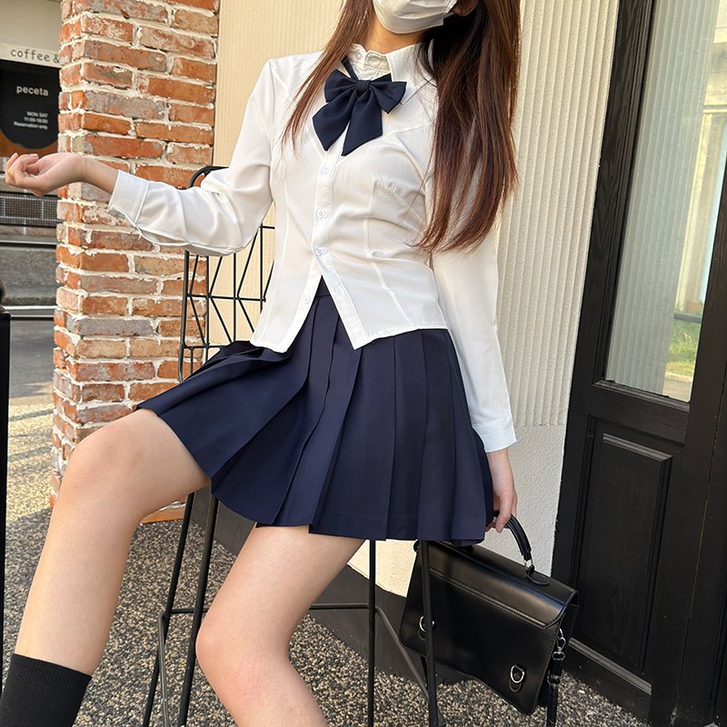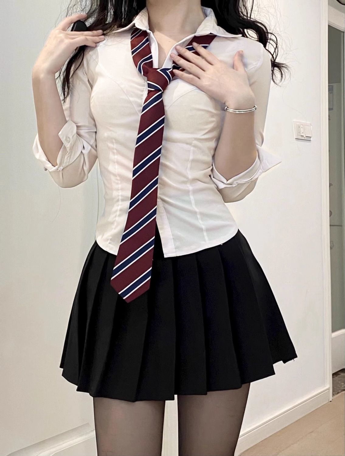 [Рыбка] Белая рубашка с короткими рукавами; [Рыбка] Белая рубашка с длинными рукавами.; [Рыбка] Белая рубашка с короткими рукавами + темно-синий галстук-бабочка; [Рыбка] Белая рубашка с длинными рукавами + темно-синий галстук-бабочка; [Рыбка] Белая рубашка с длинными рукавами + красно-синий полосатый галстук.; [Рыбка] Белая рубашка с длинными рукавами + черный галстук