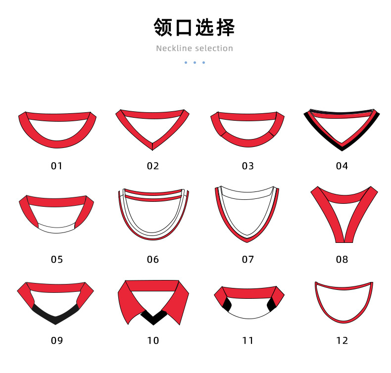 Круглая горловина, воротник-стойка, V-образный вырез и т. д.