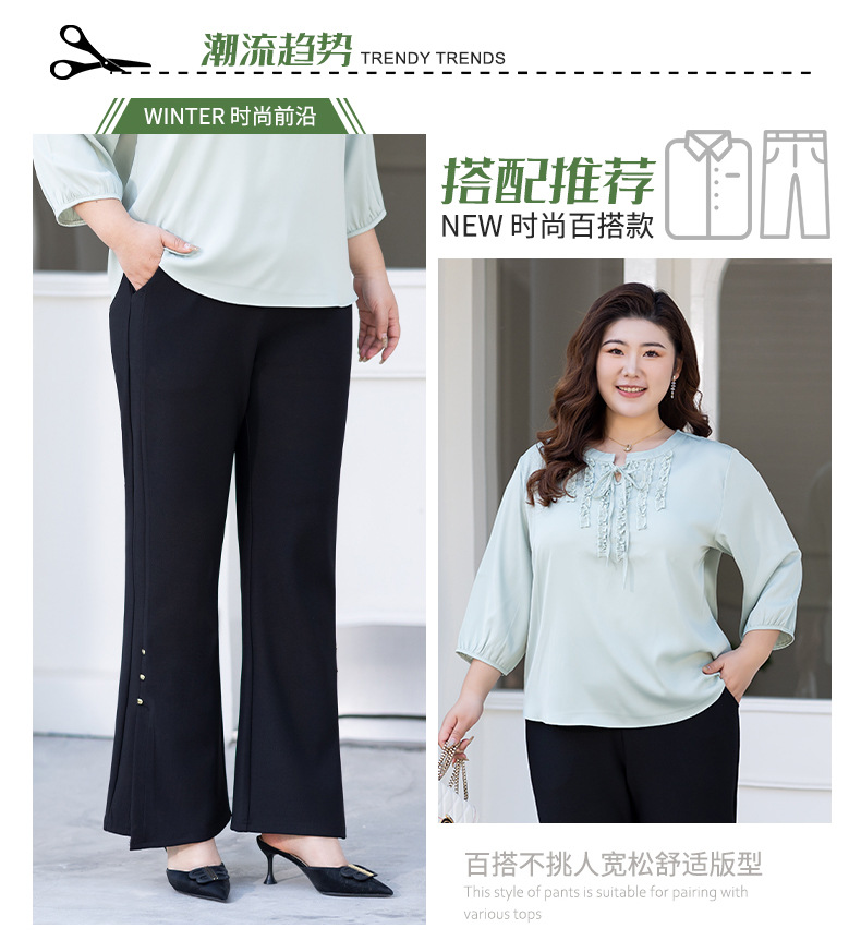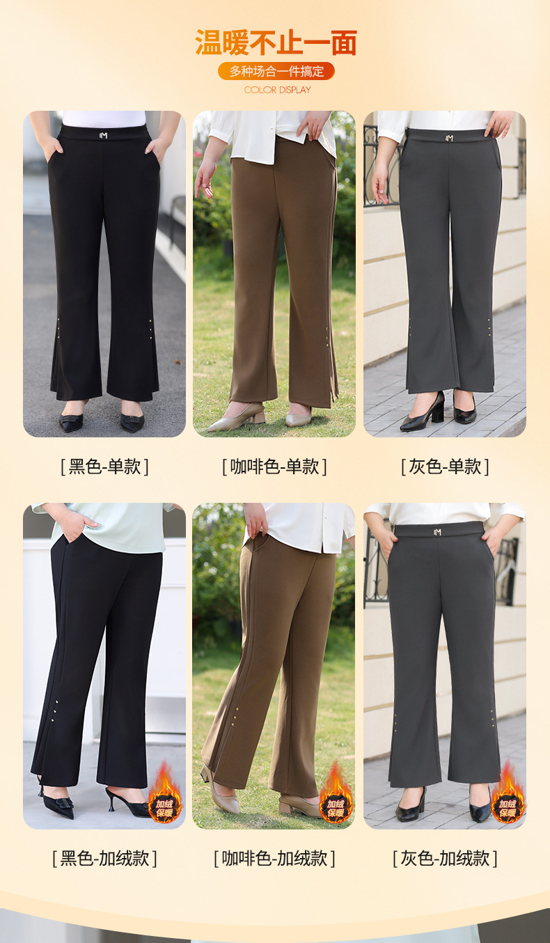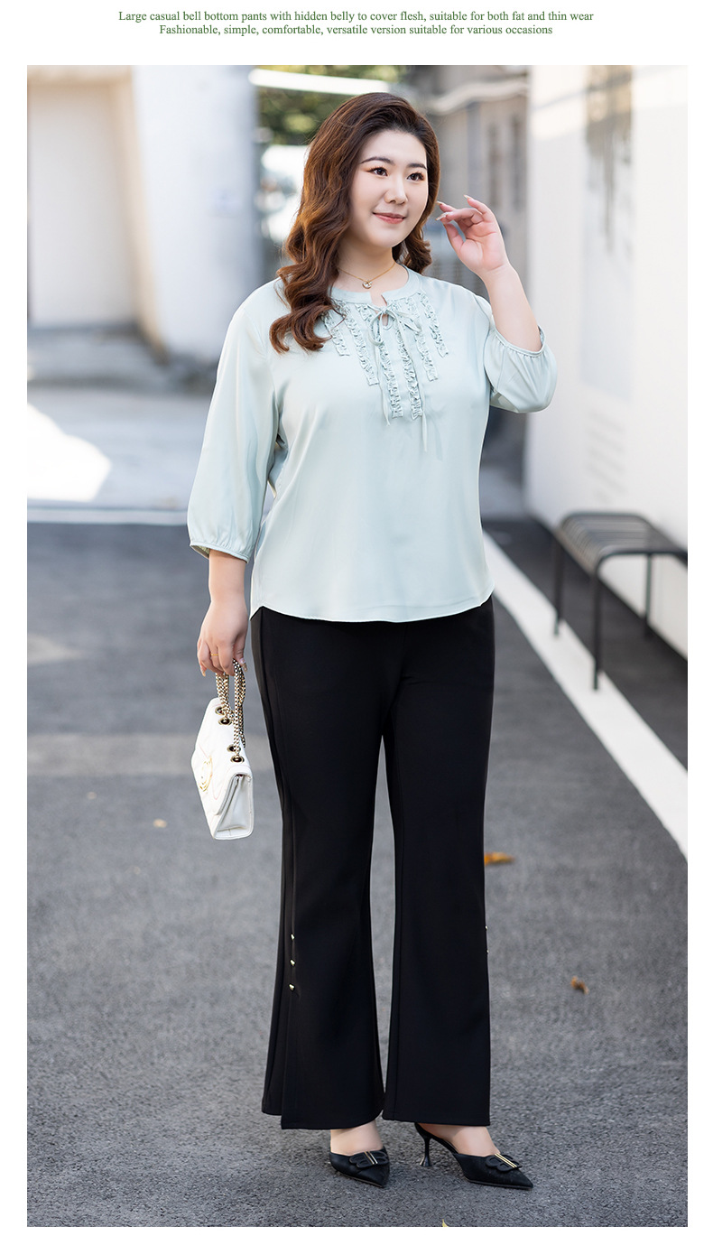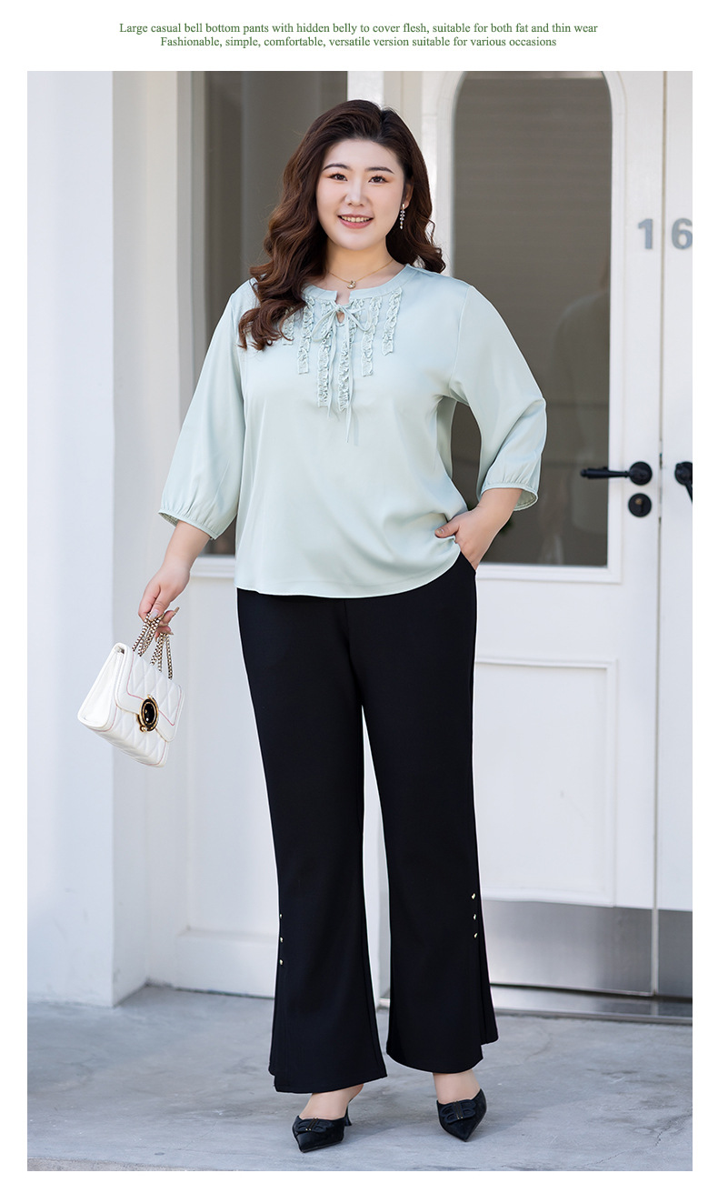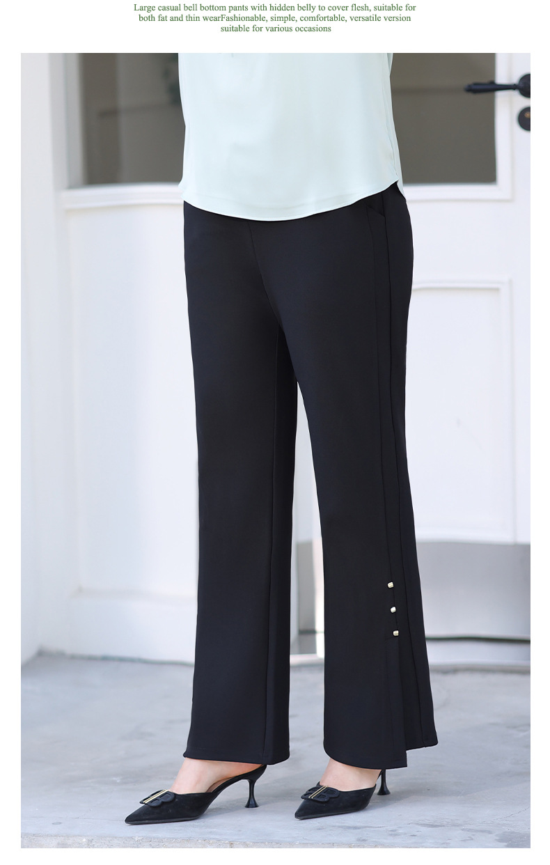 Брюки-клеш с высокой талией для женщин больших размеров, свободного кроя, для женщин среднего возраста, с увеличенной талией, подтягивающие бедра, стройнящие, повседневные брюки для полных девушек.
