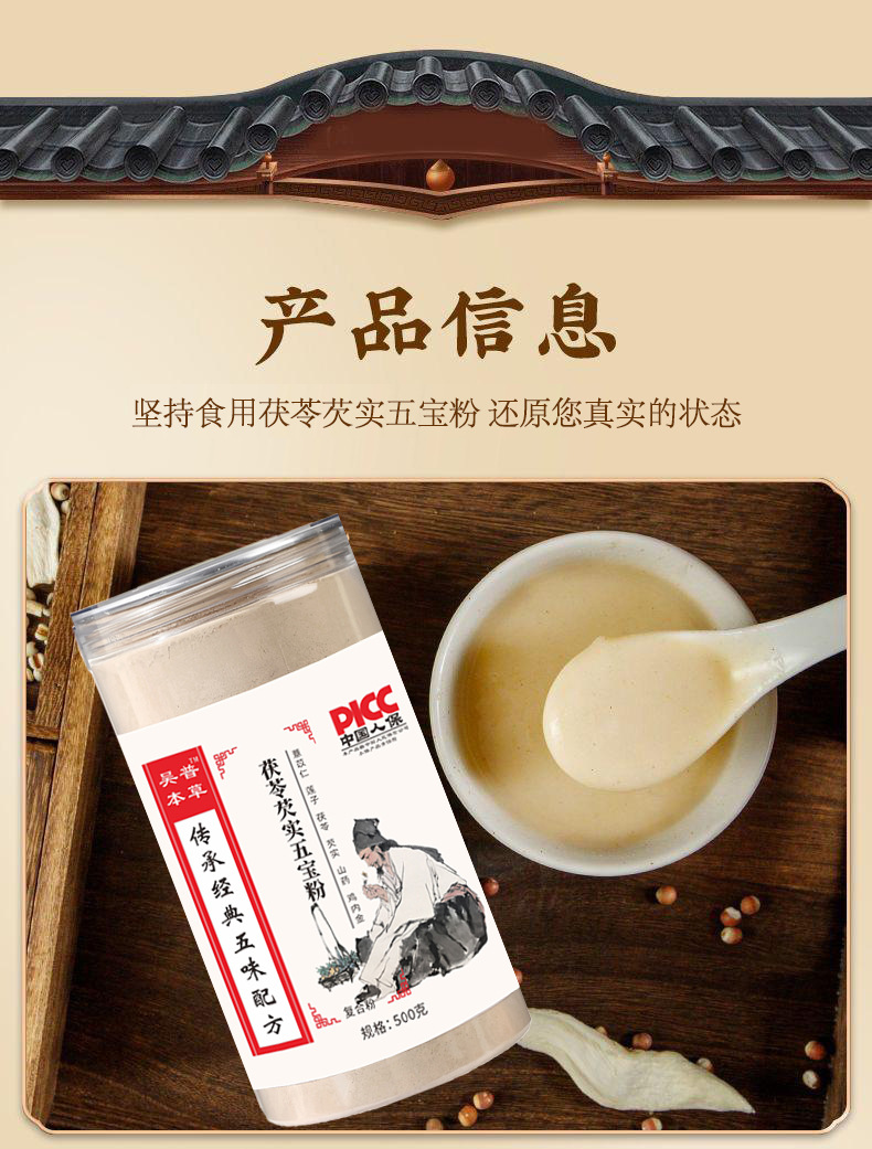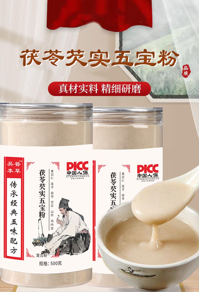 Wu Pu Materia Medica-Poria и Gorgon Five Treasure Powder-500 г/прозрачная бутылка