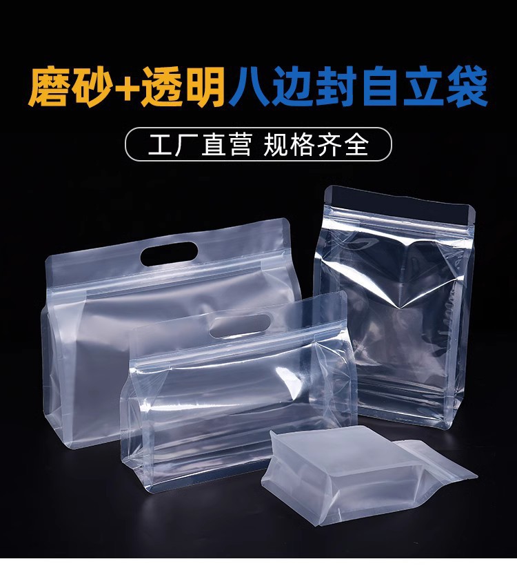 Прозрачный восьмисторонний пакет для запечатывания пластиковый пакет на молнии