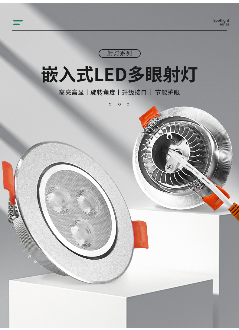 Новый встроенный светодиодный прожектор с несколькими глазами, двухцветный прожектор без мерцания, потолочный светильник «яблочко» для магазина одежды, лампа с отверстием для украшения дома