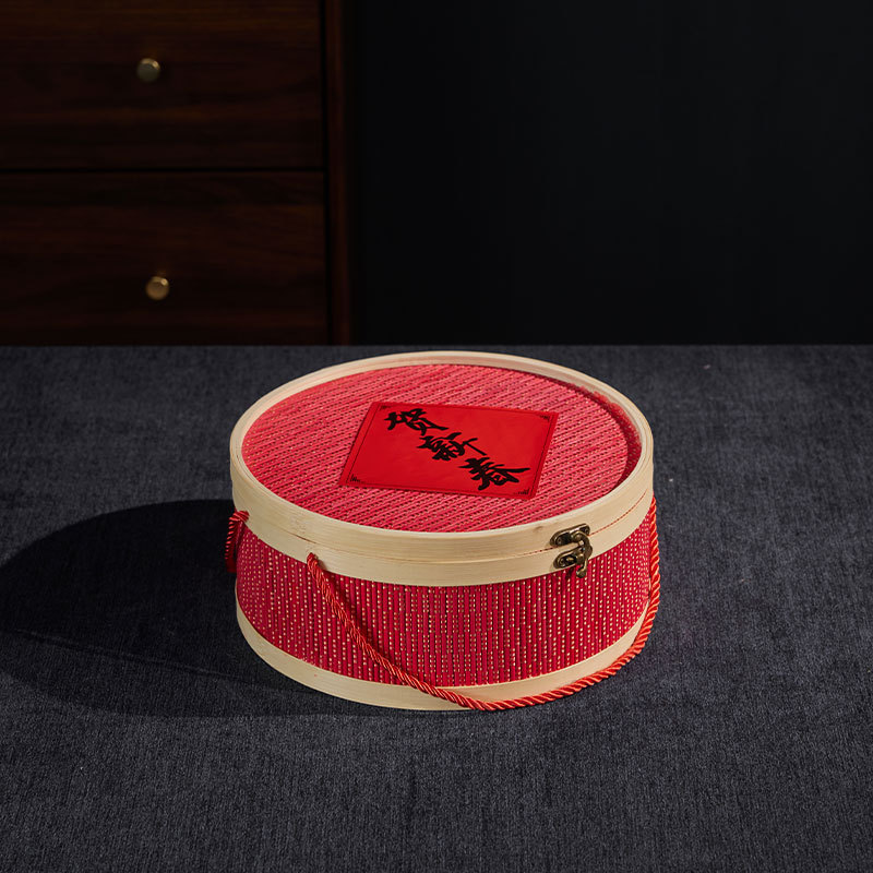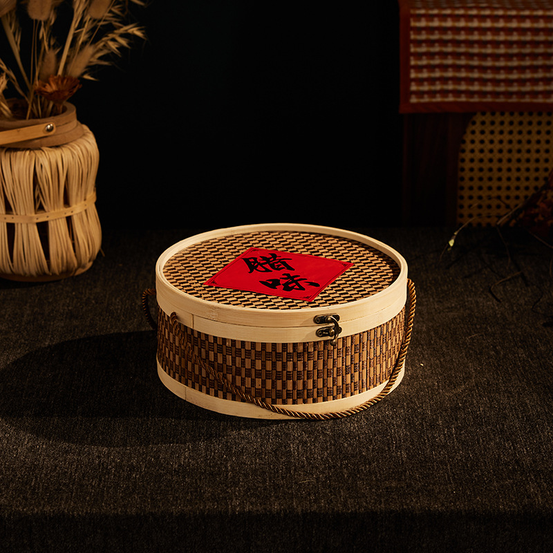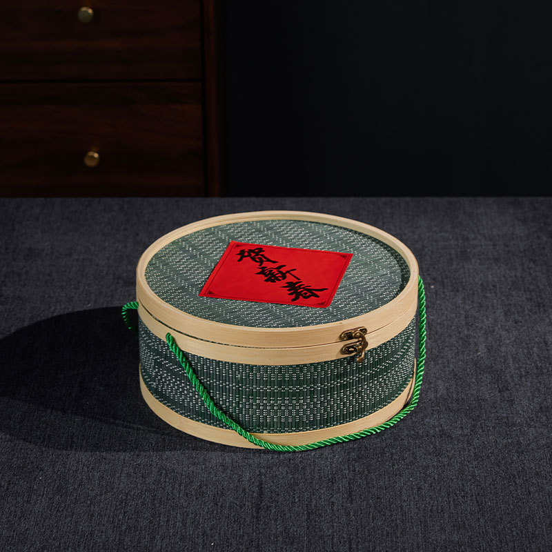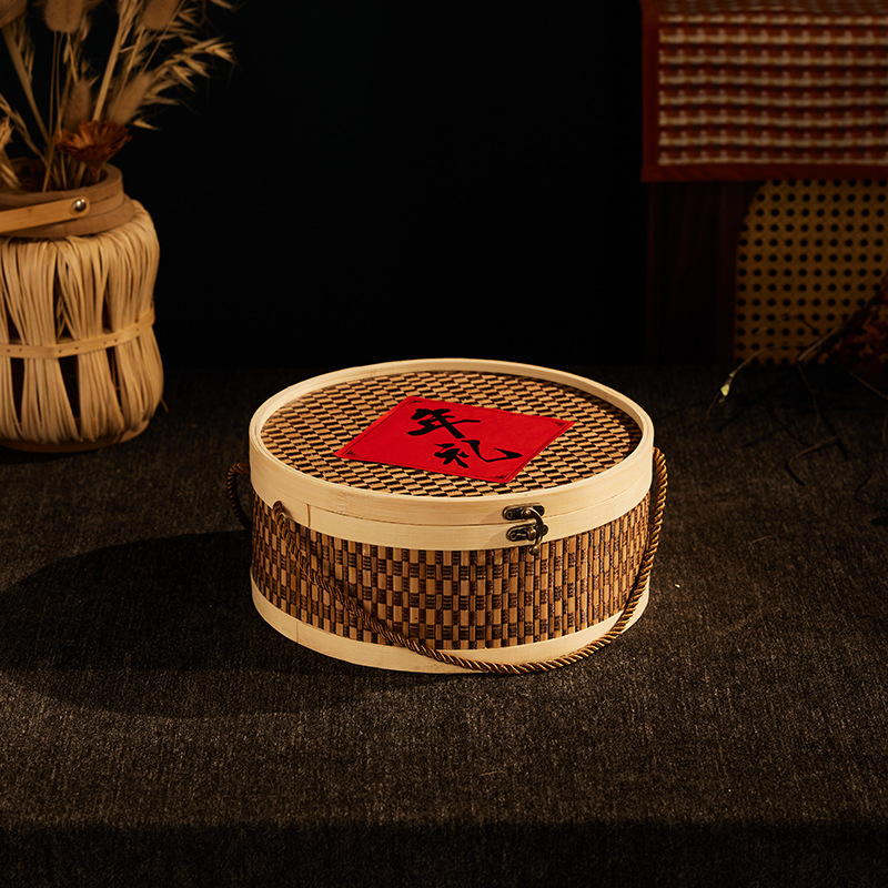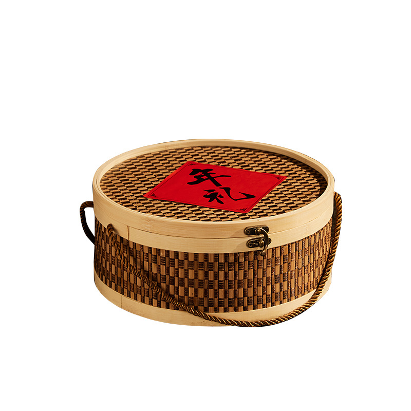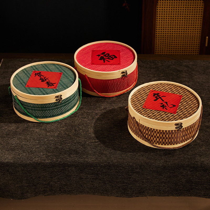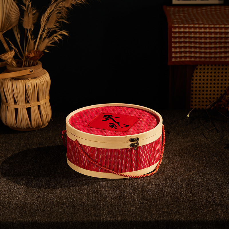 Элитные подарочные коробки ручной работы из бамбука для рисовых пирожных, колбас, выпечки, фруктов и больших тортов, с изысканным круглым дизайном.