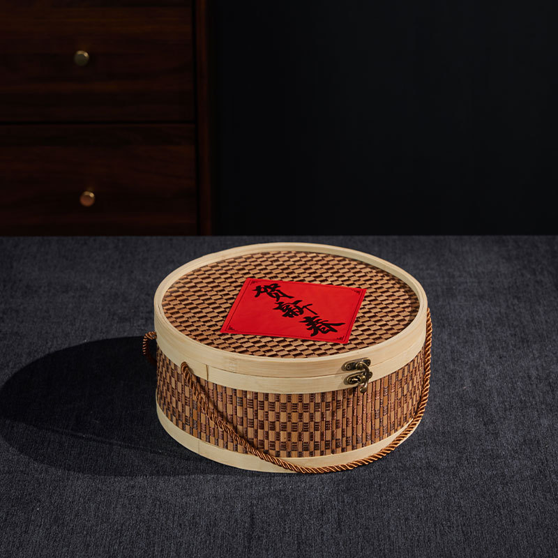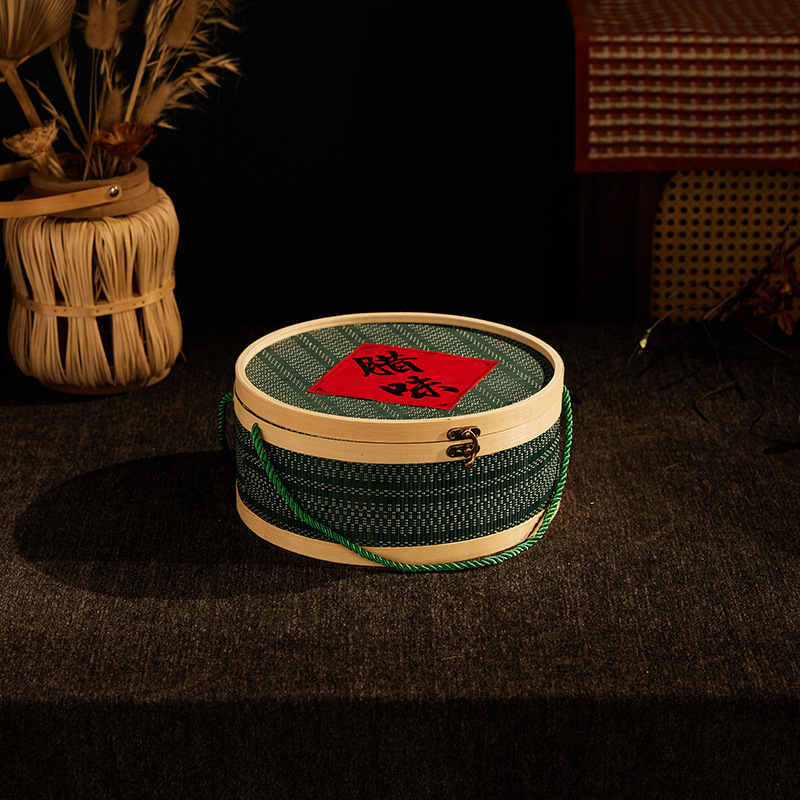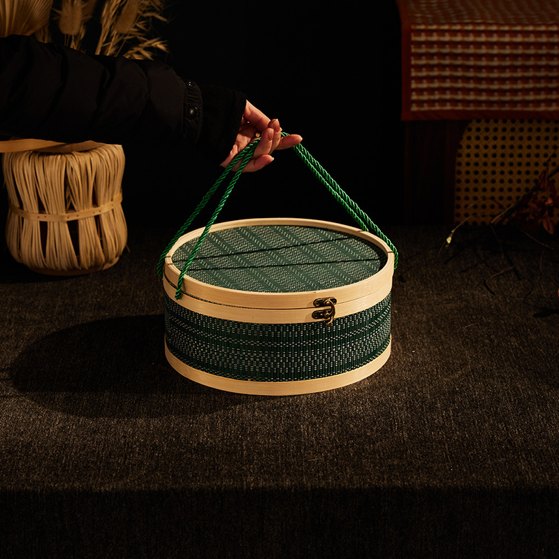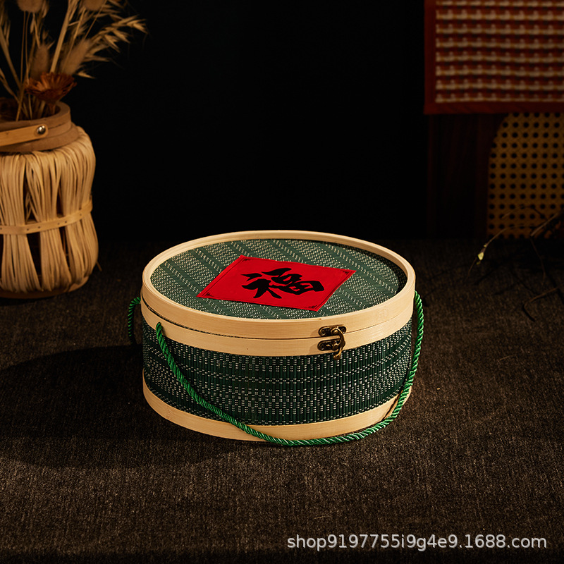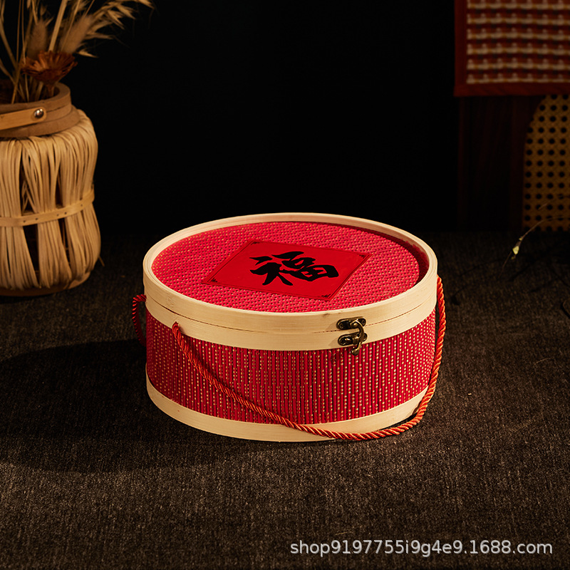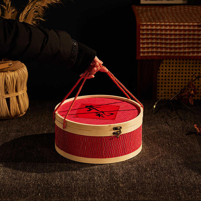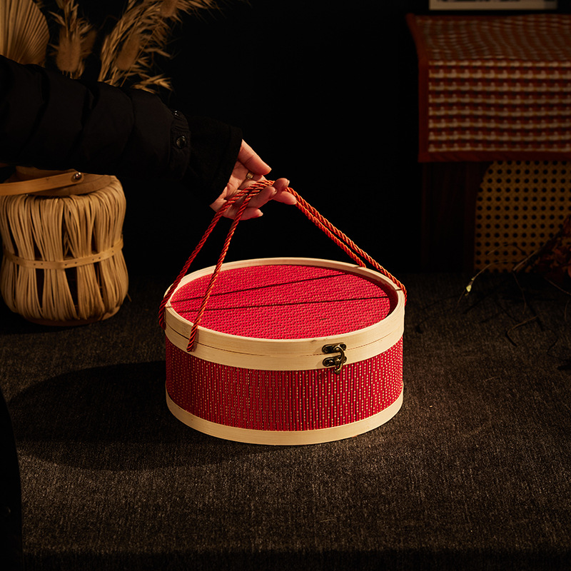 Элитные подарочные коробки ручной работы из бамбука для рисовых пирожных, колбас, выпечки, фруктов и больших тортов, с изысканным круглым дизайном.