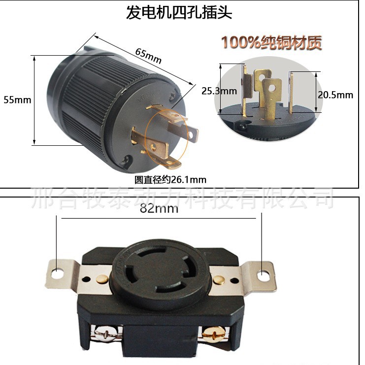 XIONGDA однофазный трехфазный большой американский четырехлунный противомедный штепсельный разъем 5KW-8KW американский четырехлунный штепсельный штекер