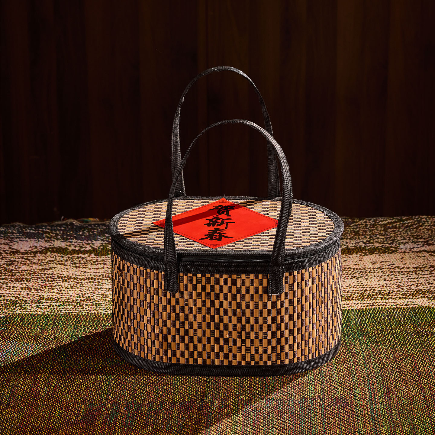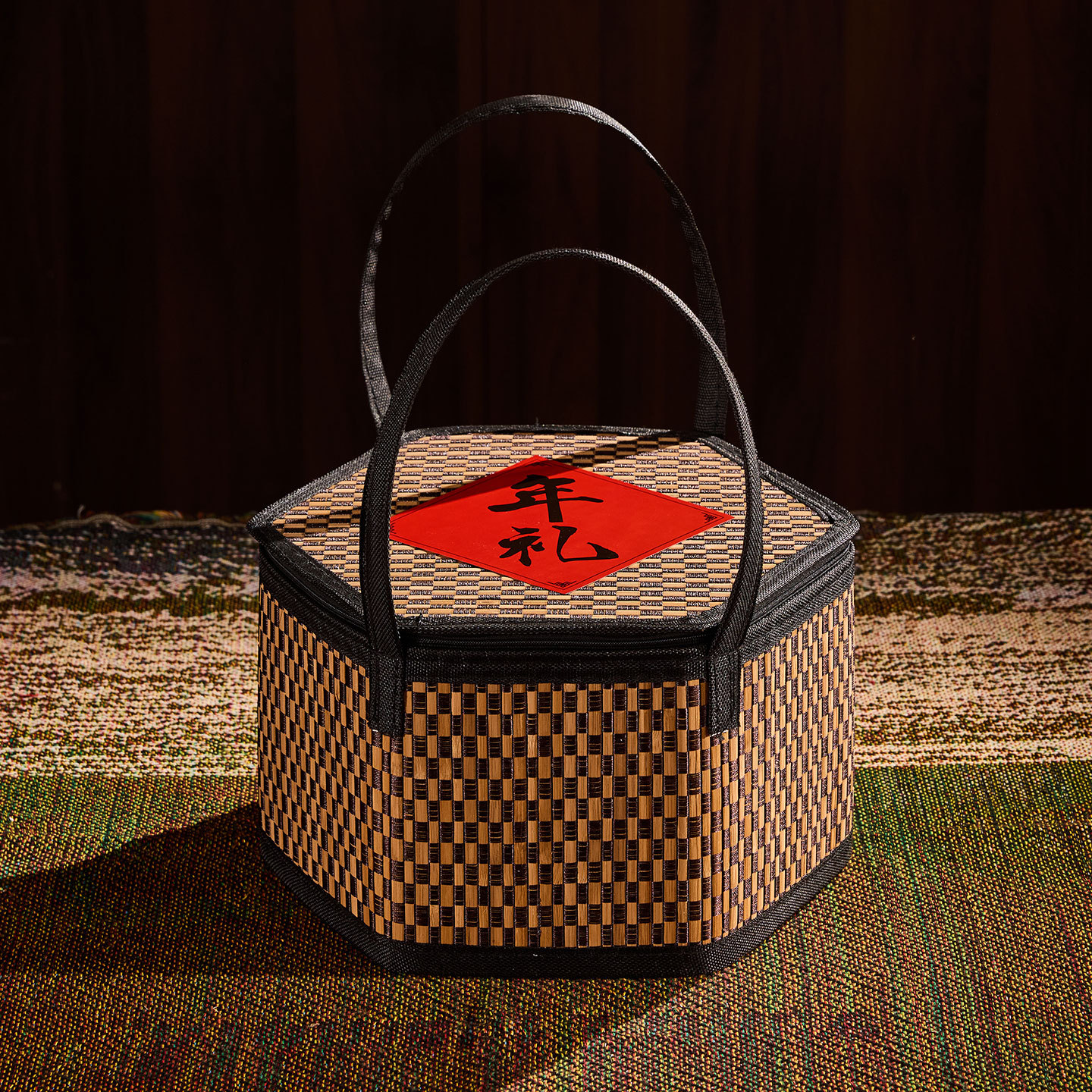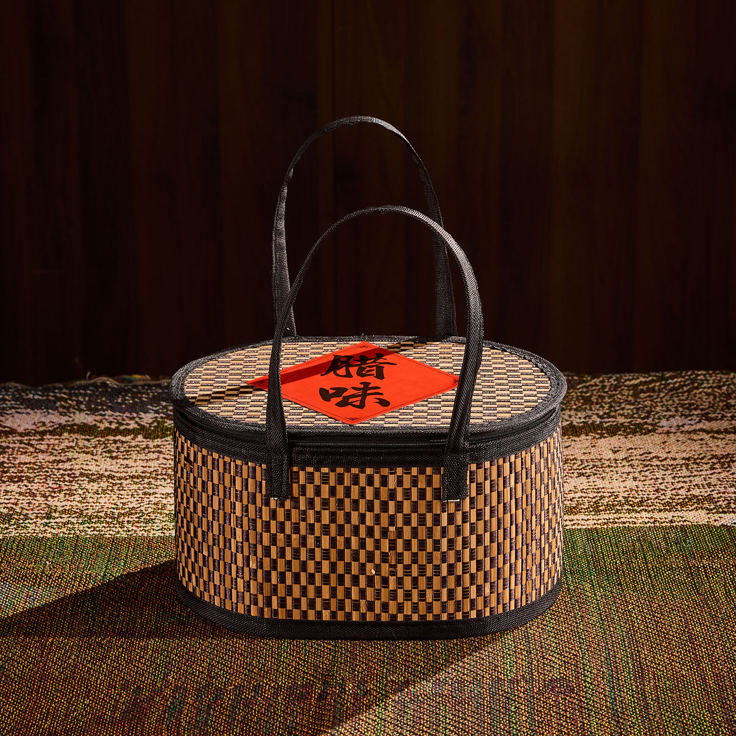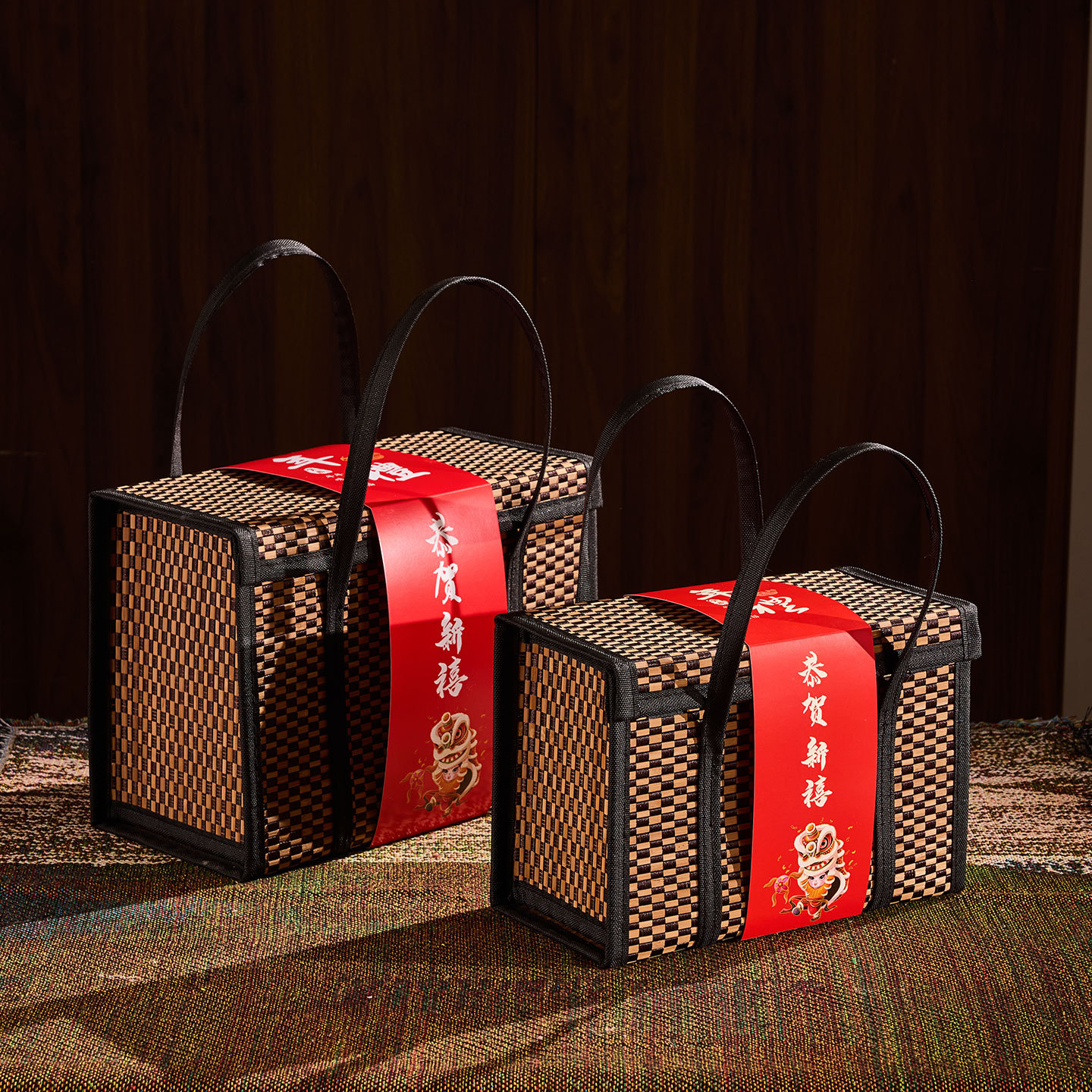 Бамбуковая корзина Ручная корзина Ручная рисовая колбаса, бекон, лунный пирог, крабовый новогодний продукт, фрукты, специальные продукты, складная бамбуковая коробка, упаковка