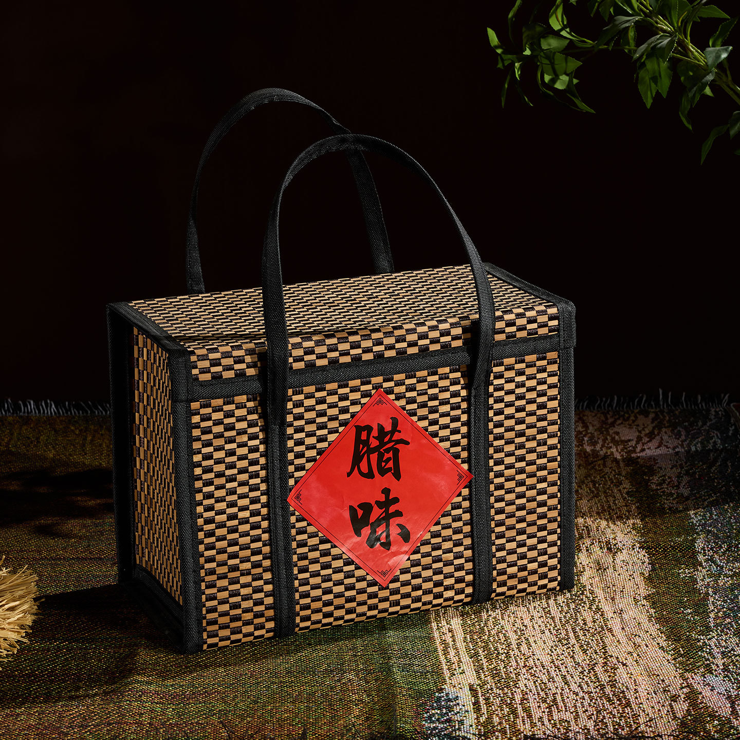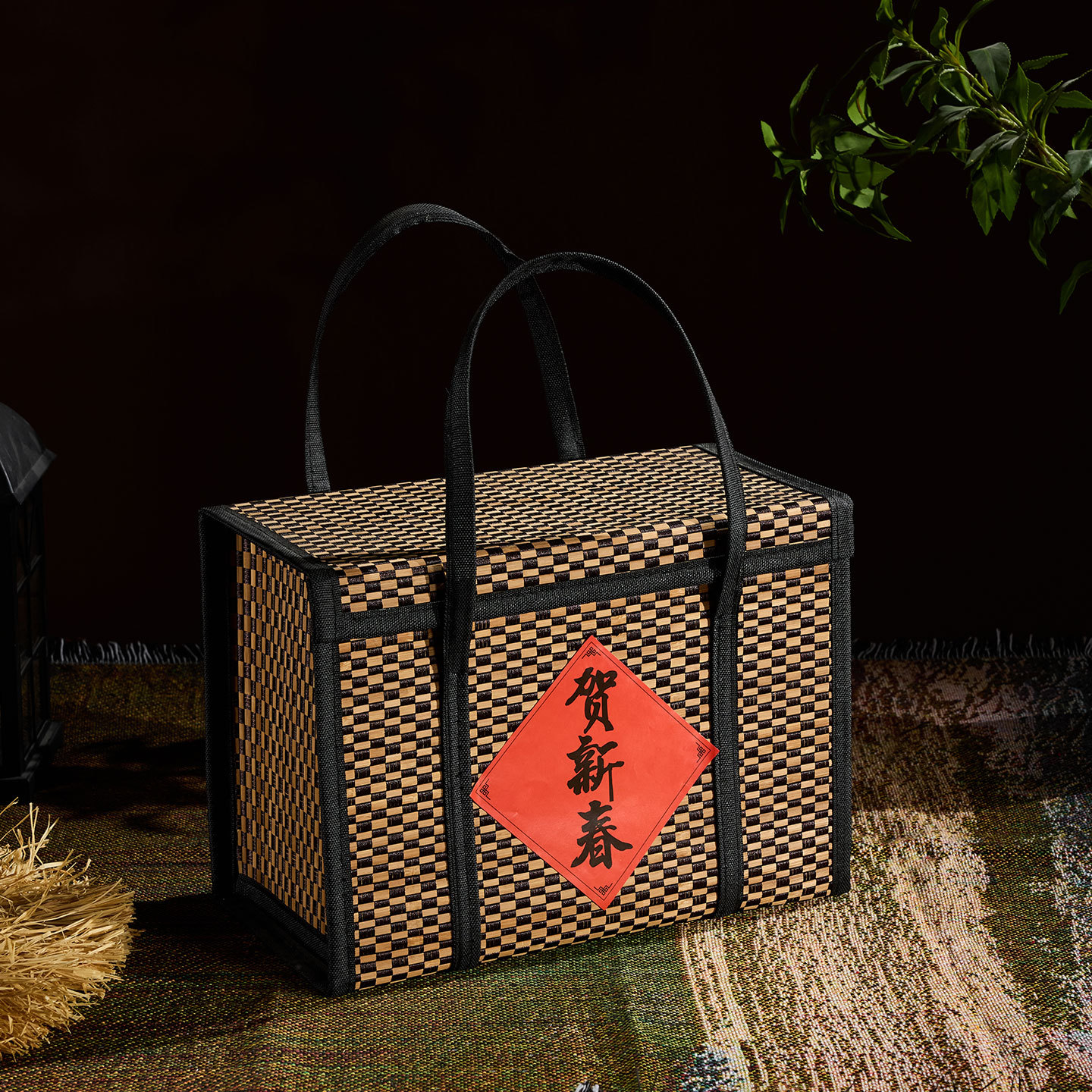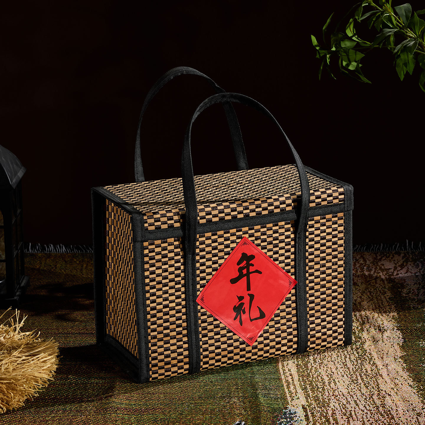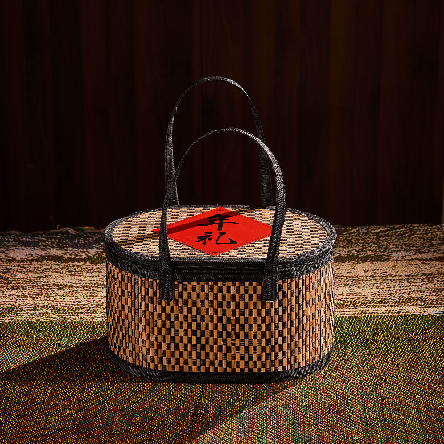 Бамбуковая корзина Ручная корзина Ручная рисовая колбаса, бекон, лунный пирог, крабовый новогодний продукт, фрукты, специальные продукты, складная бамбуковая коробка, упаковка