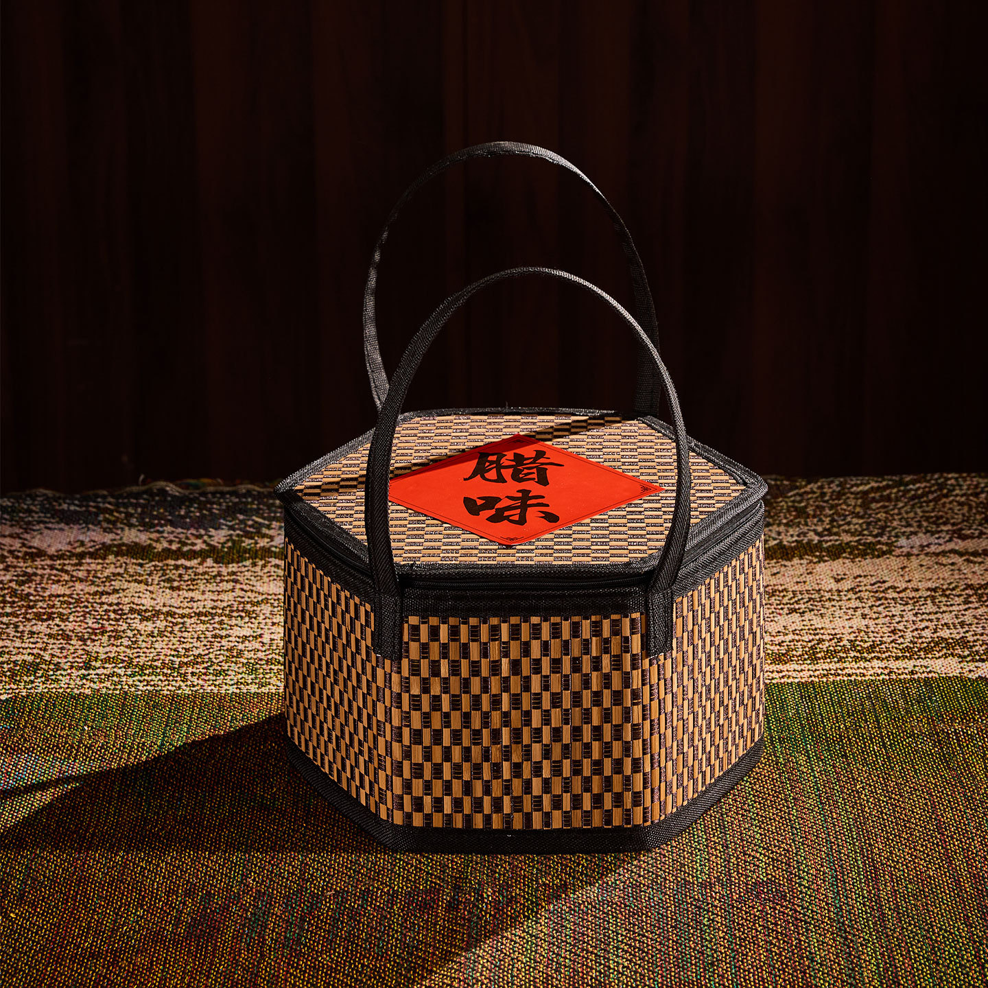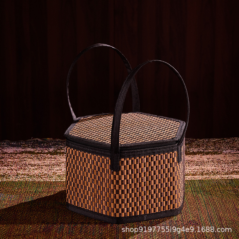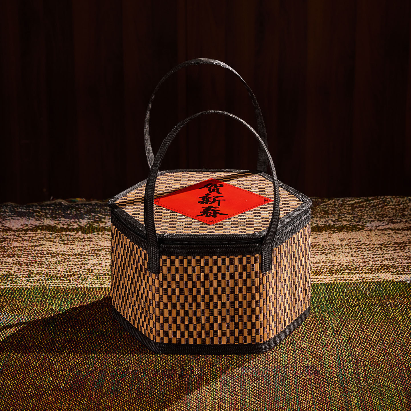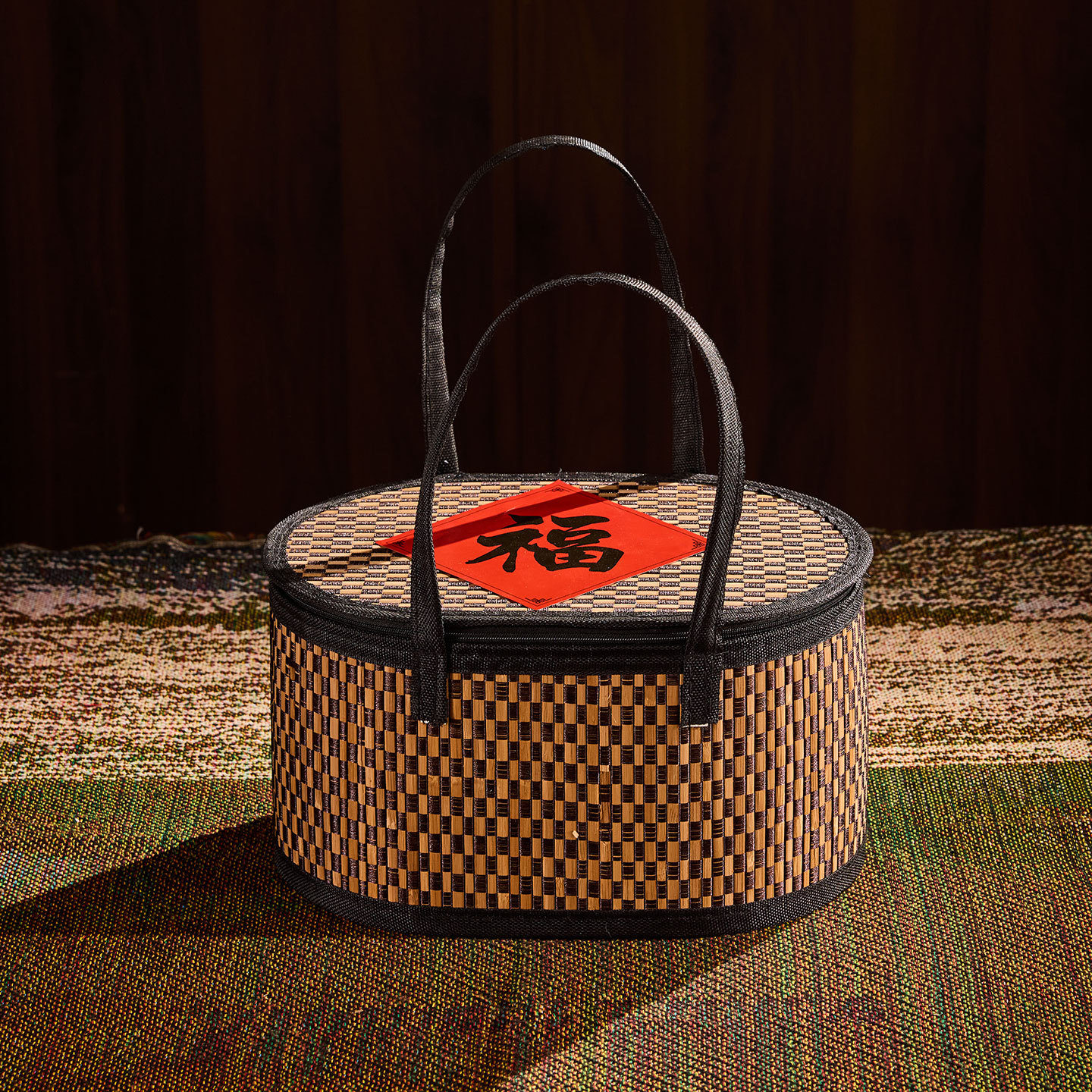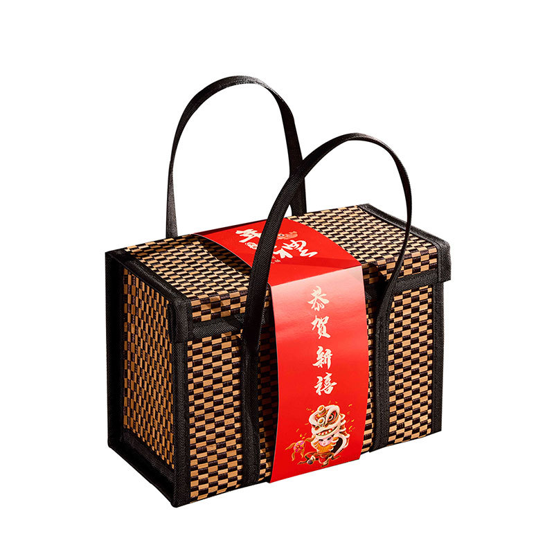 Бамбуковая корзина Ручная корзина Ручная рисовая колбаса, бекон, лунный пирог, крабовый новогодний продукт, фрукты, специальные продукты, складная бамбуковая коробка, упаковка