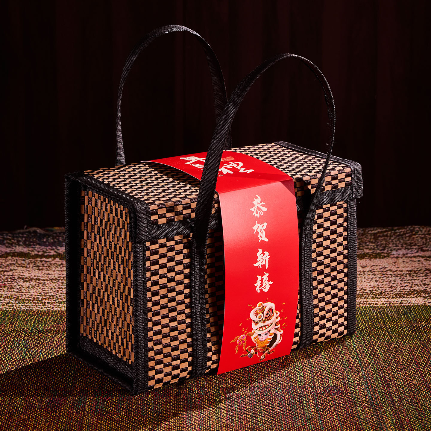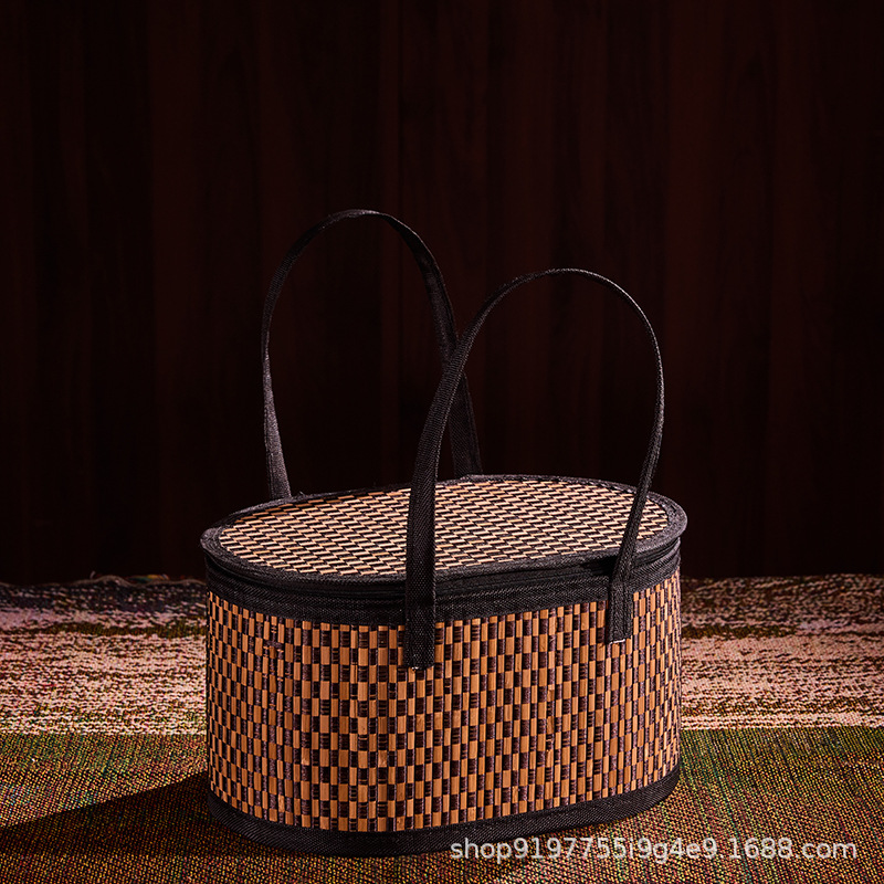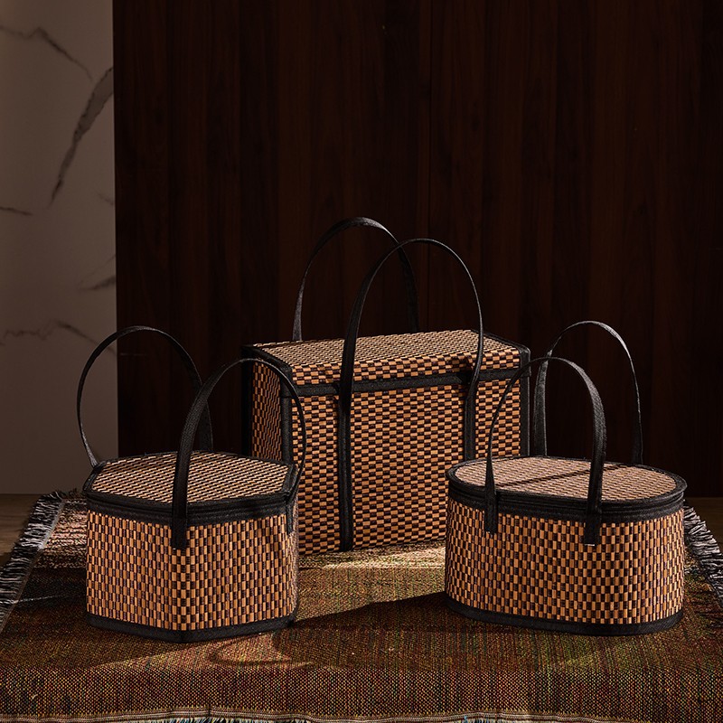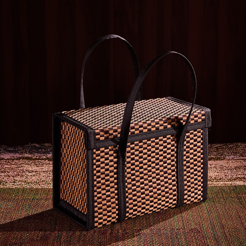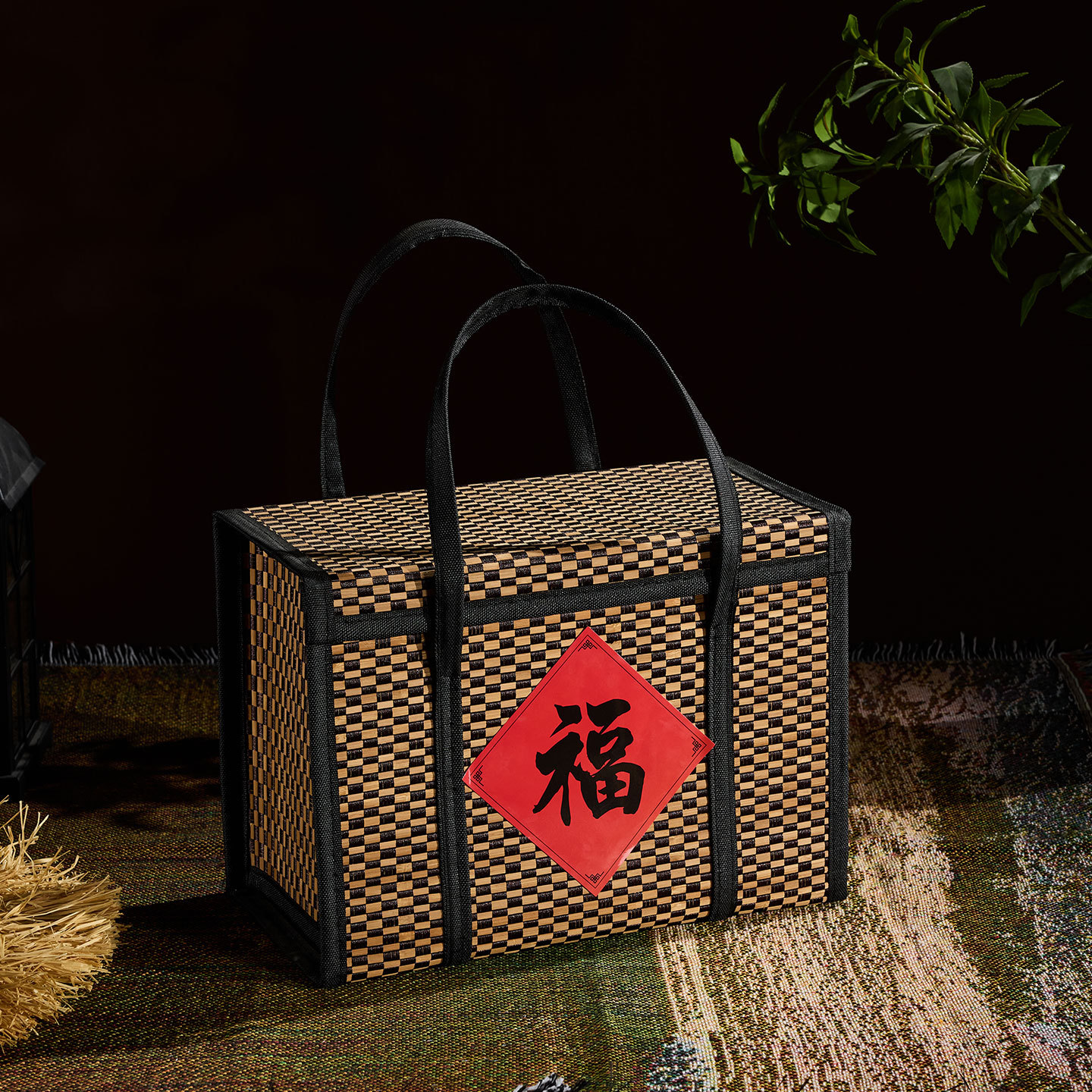 Бамбуковая корзина Ручная корзина Ручная рисовая колбаса, бекон, лунный пирог, крабовый новогодний продукт, фрукты, специальные продукты, складная бамбуковая коробка, упаковка