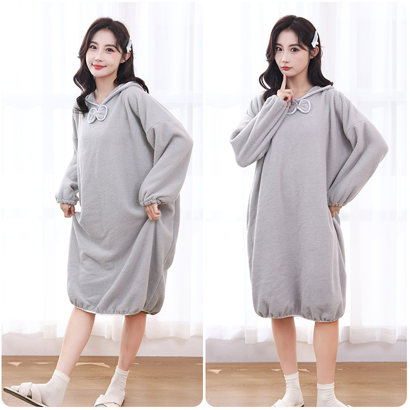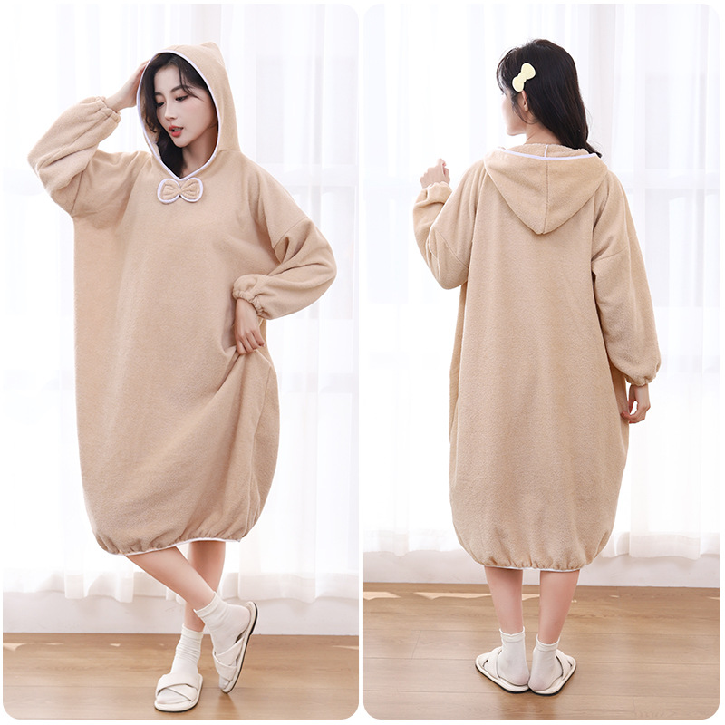 Коралловый бархат с капюшоном юбка для ванной длинный свободный халат
