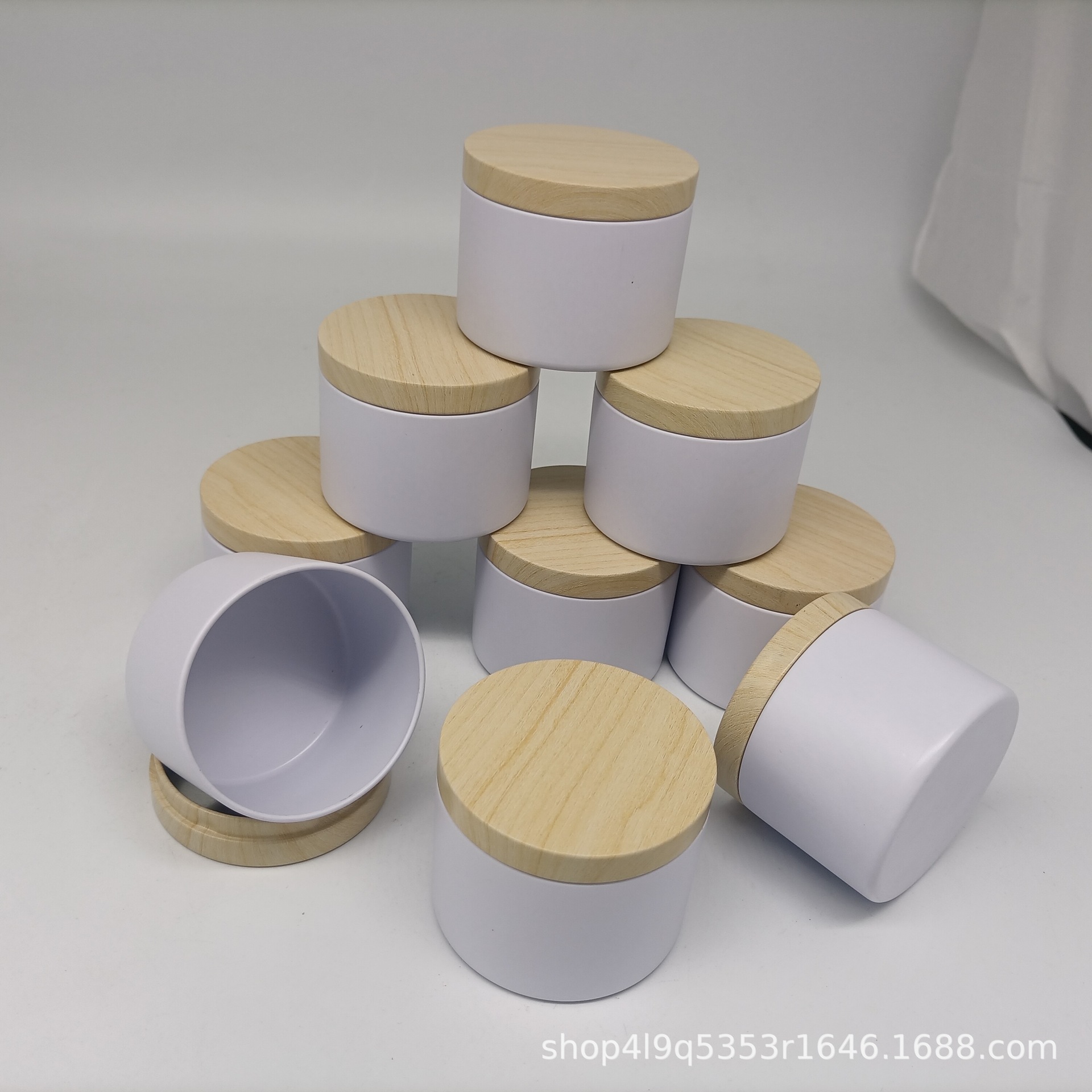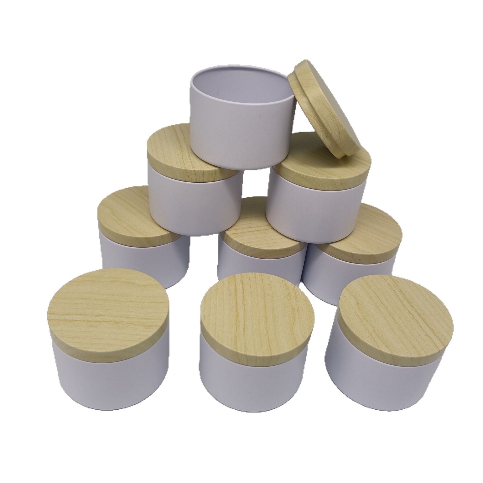 Спот имитация деревянной узорчатой крышки полный белый прямой жестяный ящик 4oz 8 унций бесшовный DIY ароматерапевтическая свеча железная банка с крышкой
