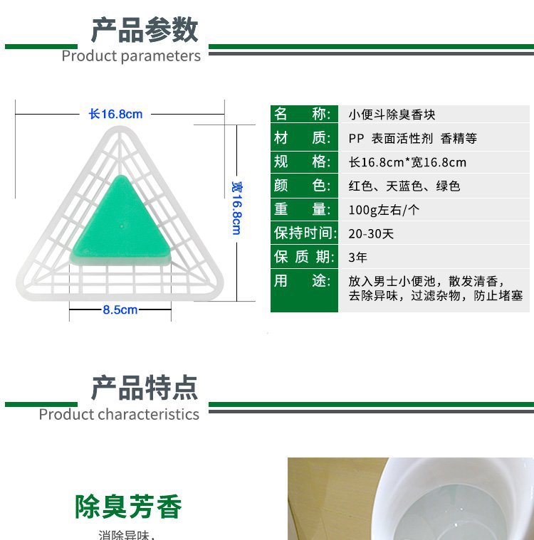 Ароматизирующий блок для писсуаров, треугольный, санитарный, освежающий, для устранения запаха и накипи в унитазах
