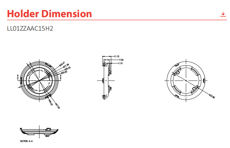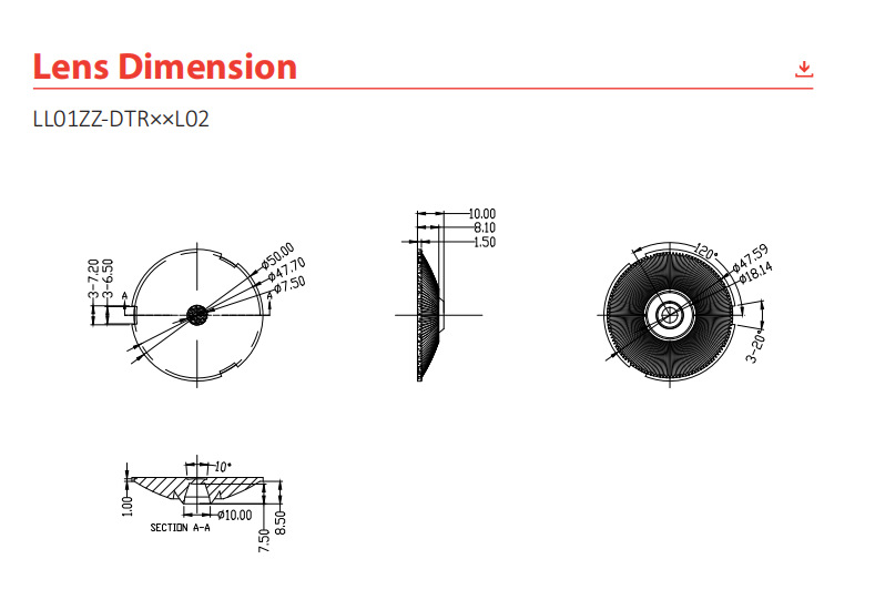Редок ультратонкий диаметр линзы 50 мм высота 11,1 мм угол 15 градусов 24 градусов 38 градусов 45 градусов 60 градусов