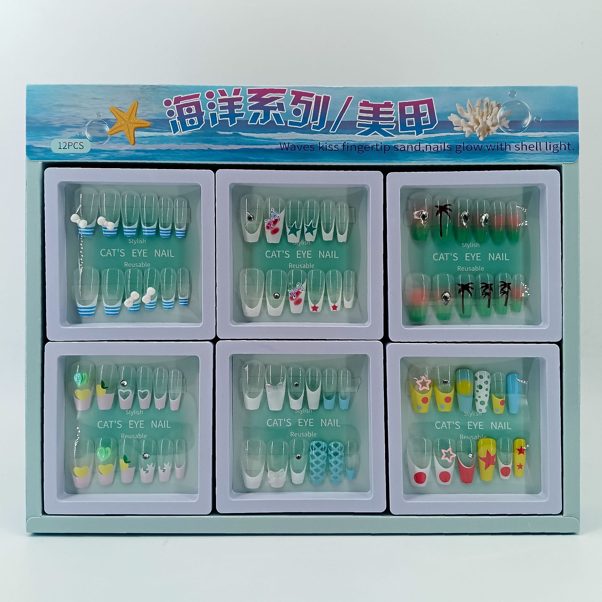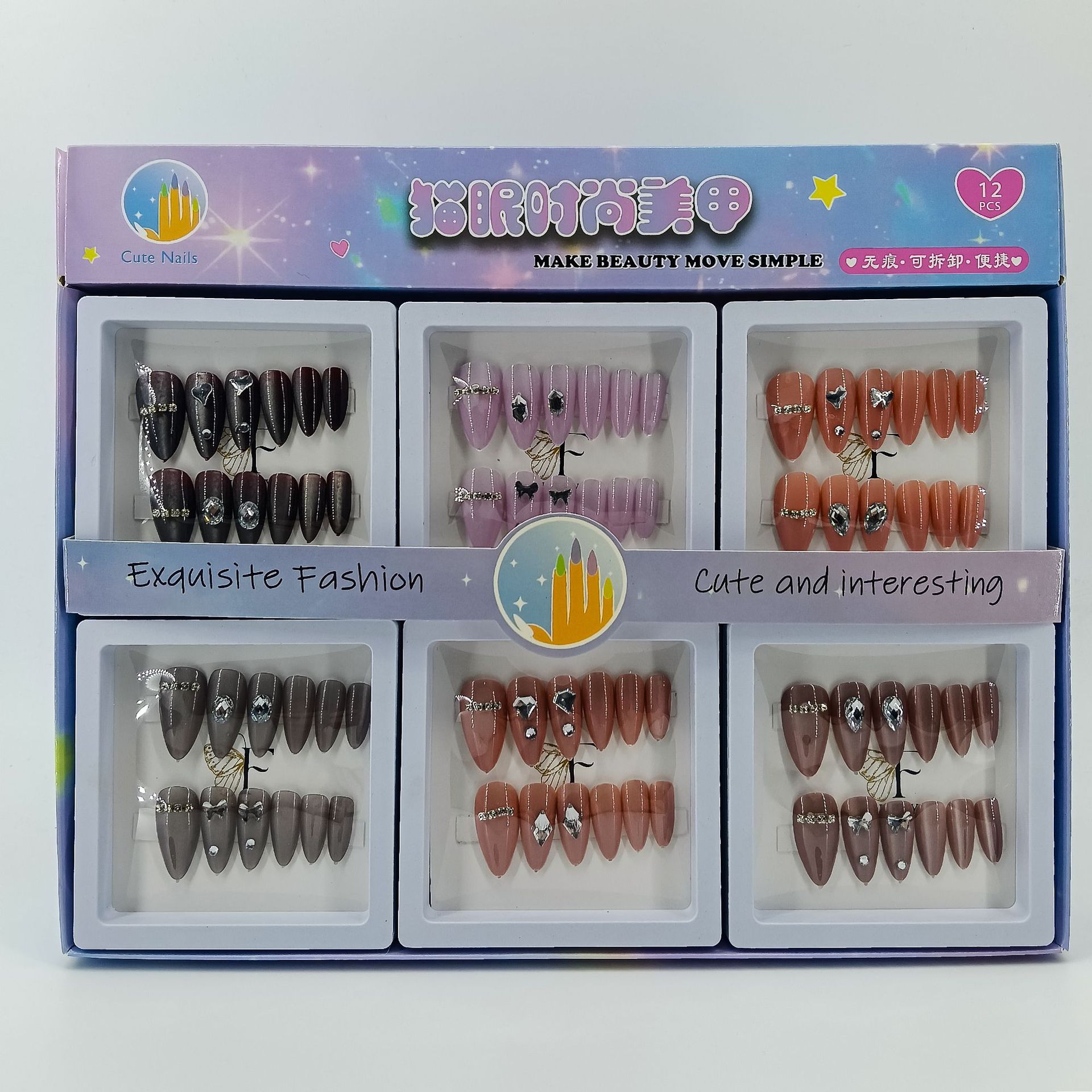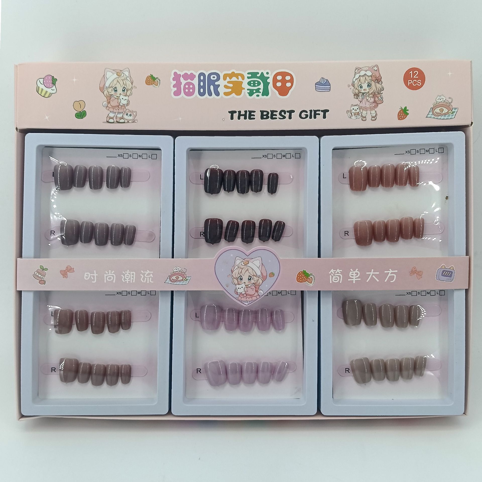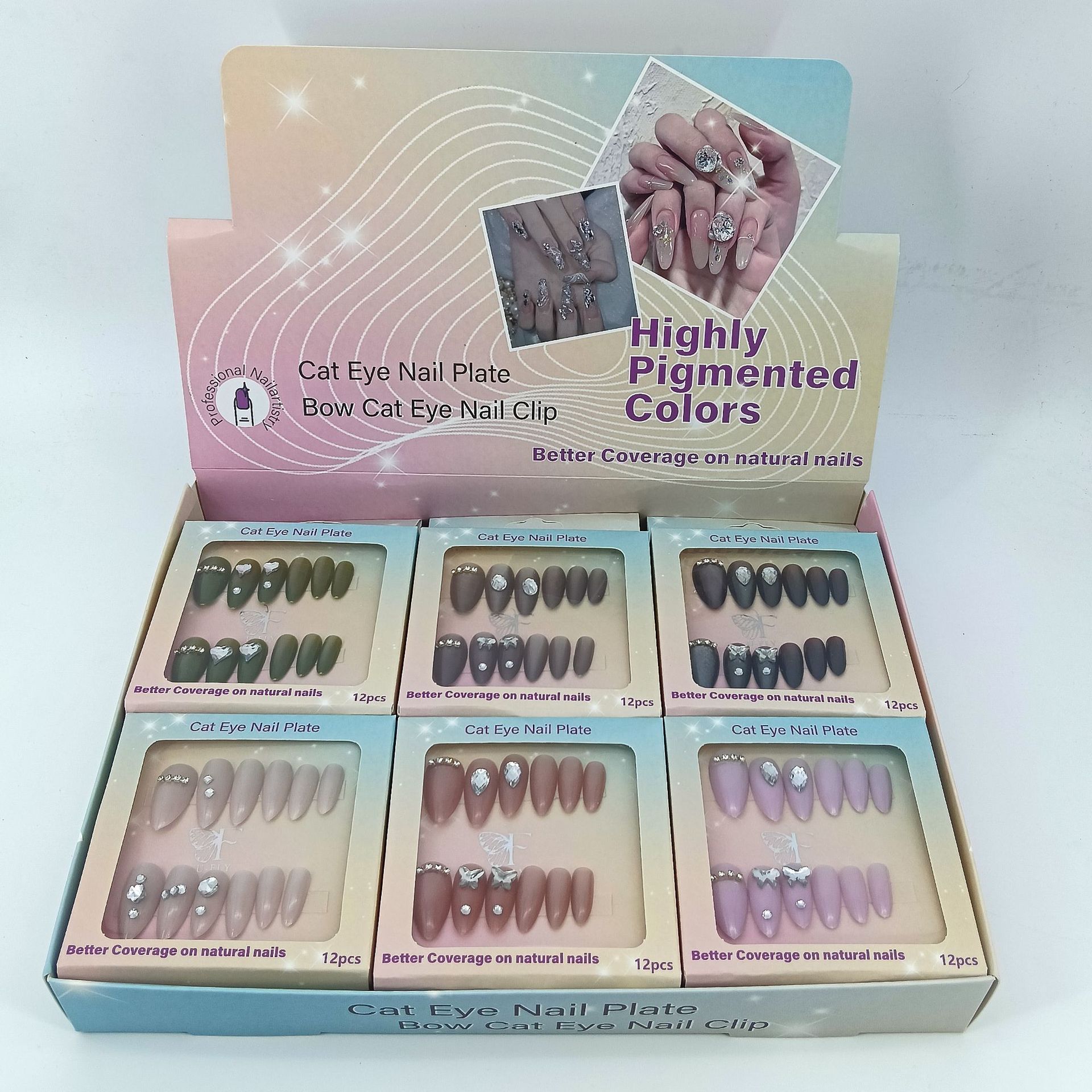 Накладные ногти в форме кошачьего глаза, высококачественные ногти, популярный в Европе и Америке смешанный дизайн ногтей, накладные наклейки для ногтей, готовые элементы для ногтей.