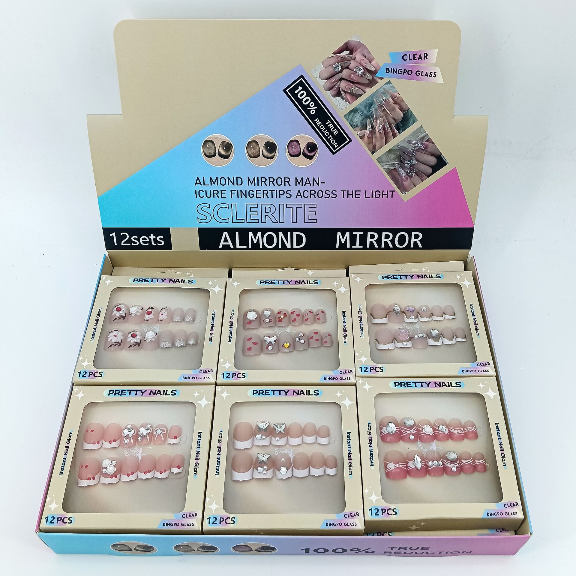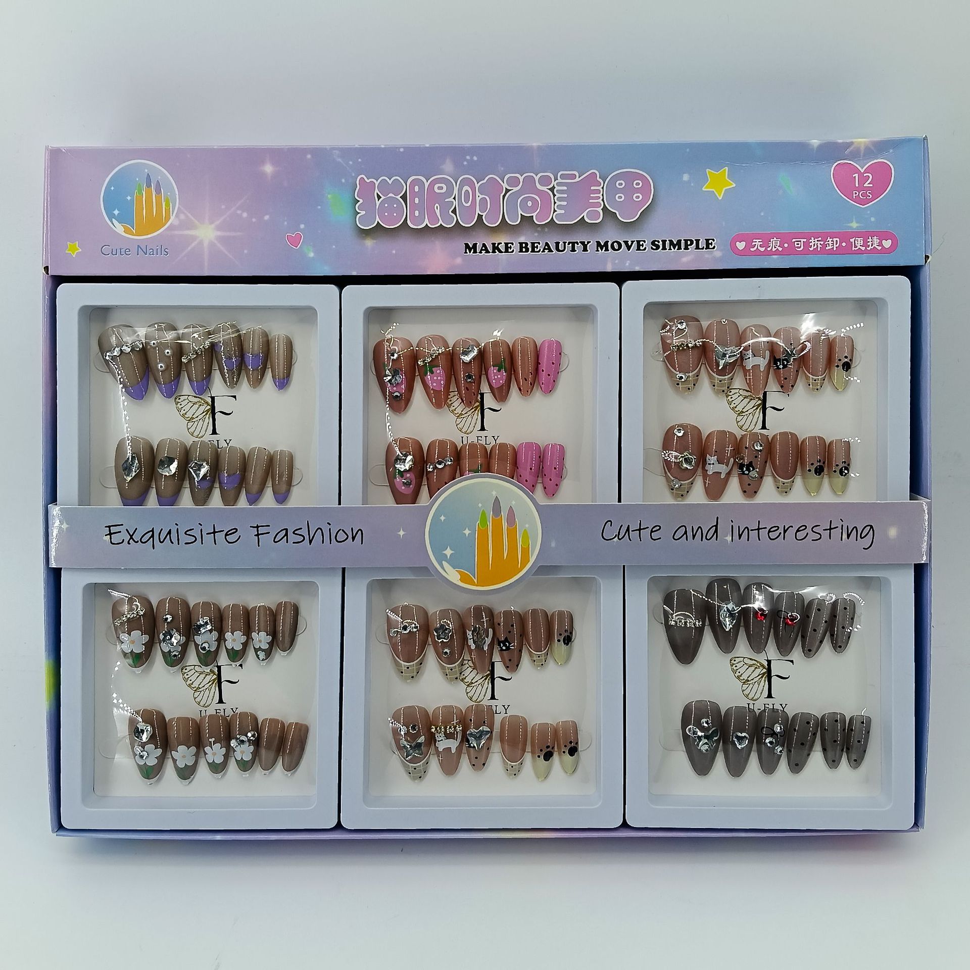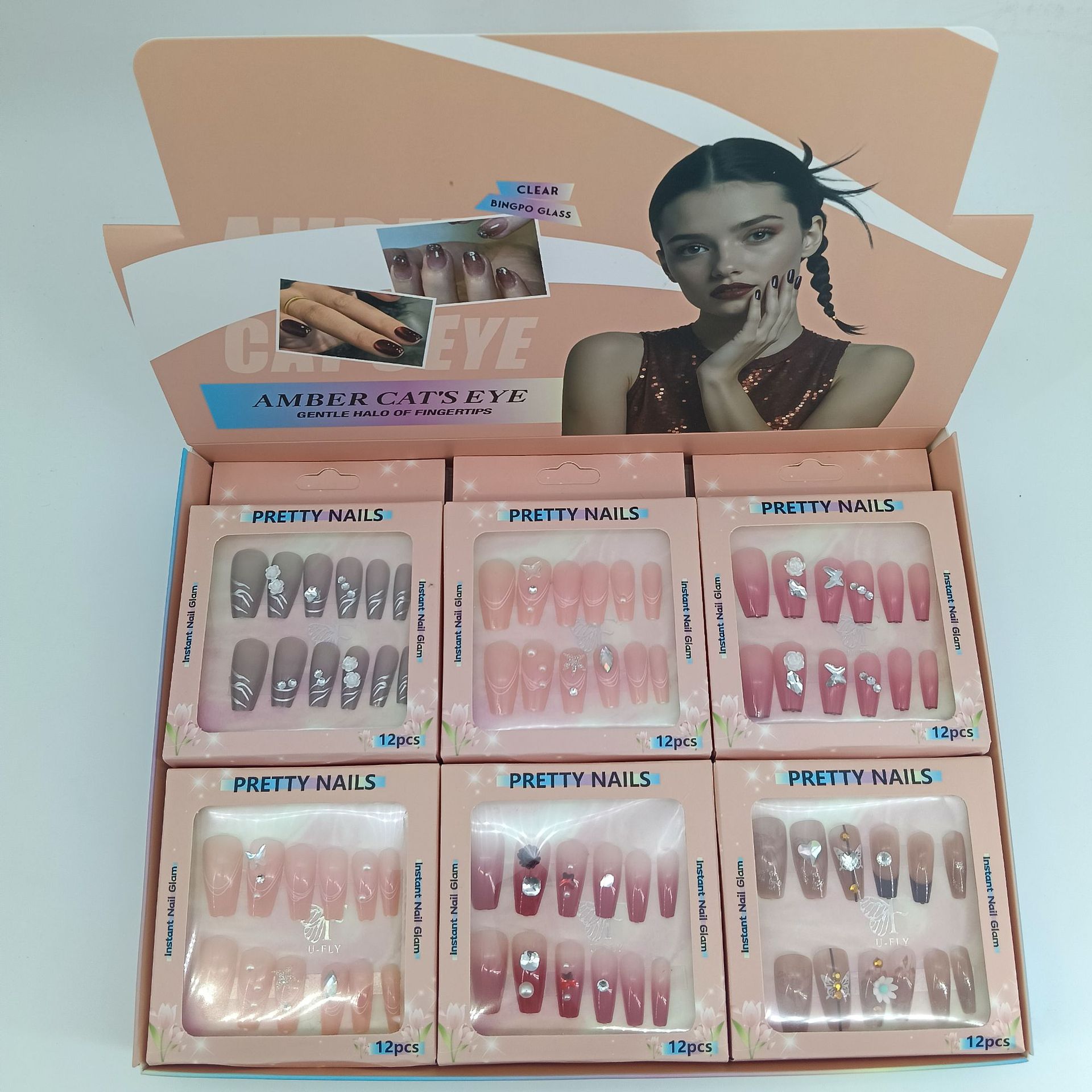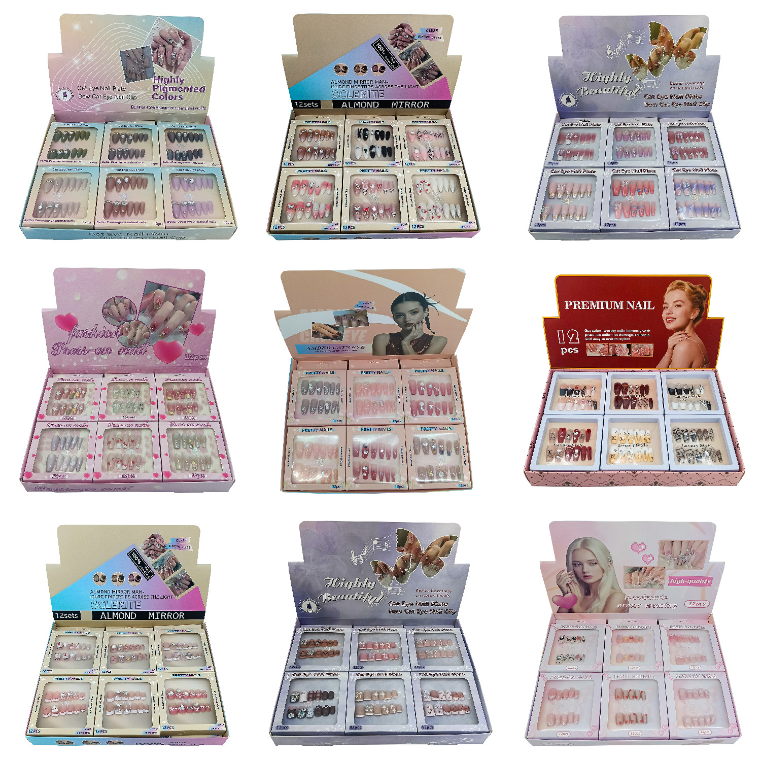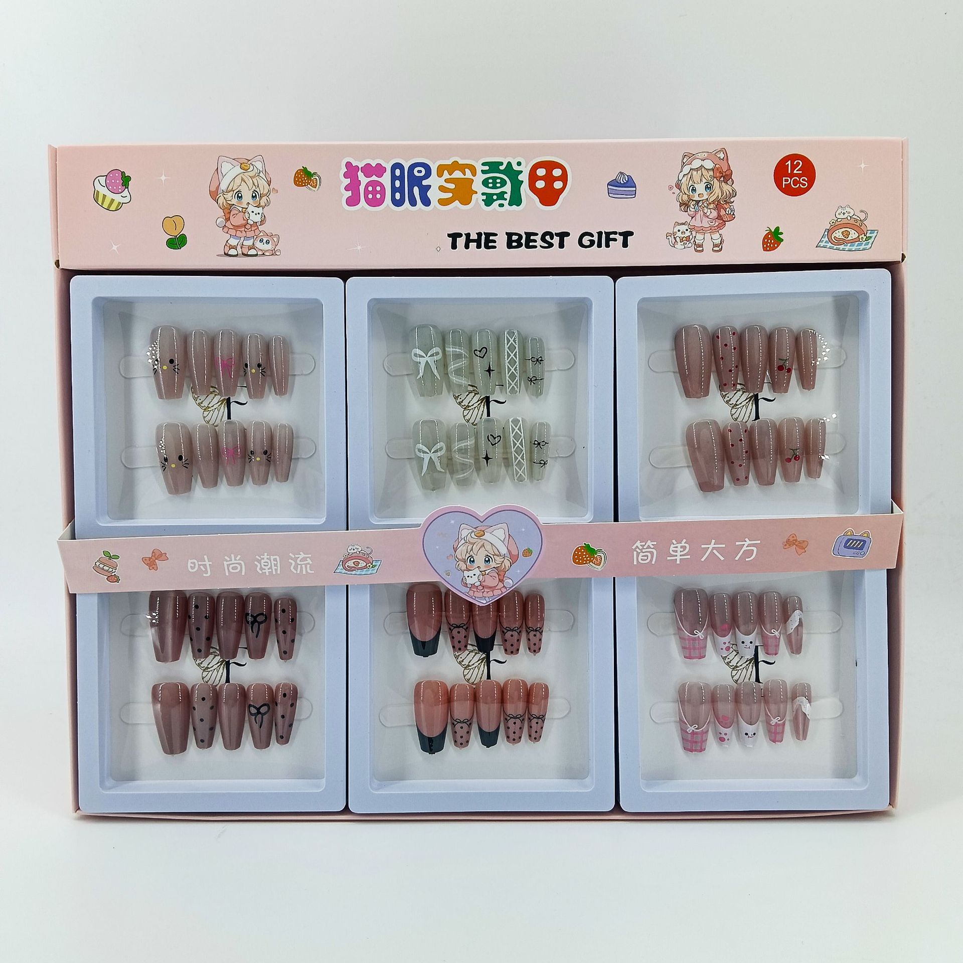 Накладные ногти в форме кошачьего глаза, высококачественные ногти, популярный в Европе и Америке смешанный дизайн ногтей, накладные наклейки для ногтей, готовые элементы для ногтей.