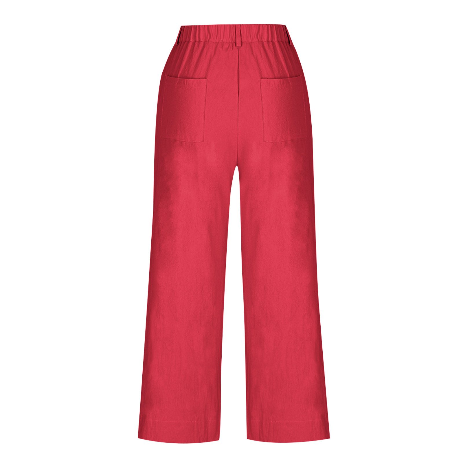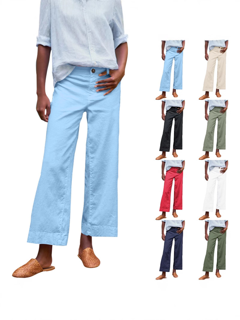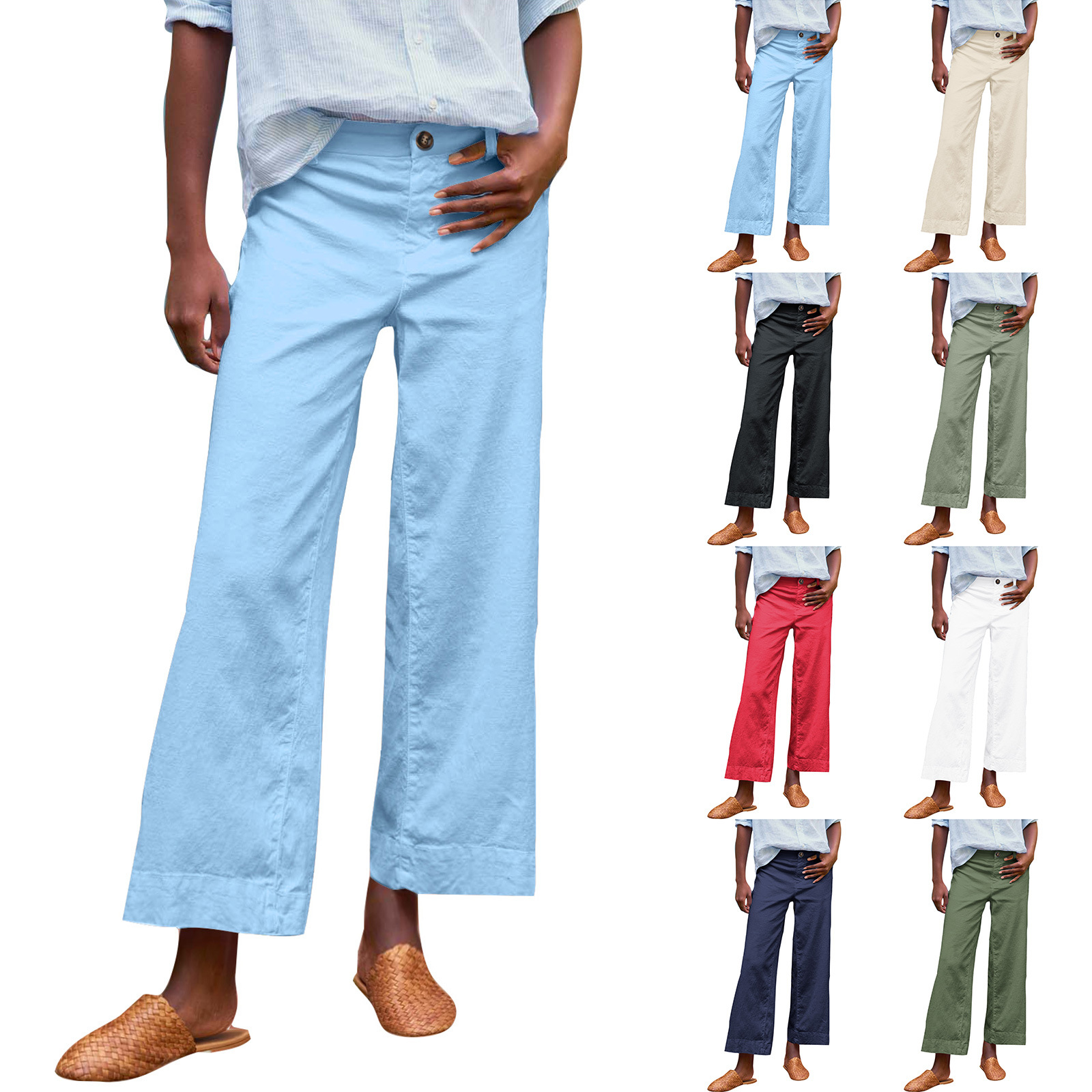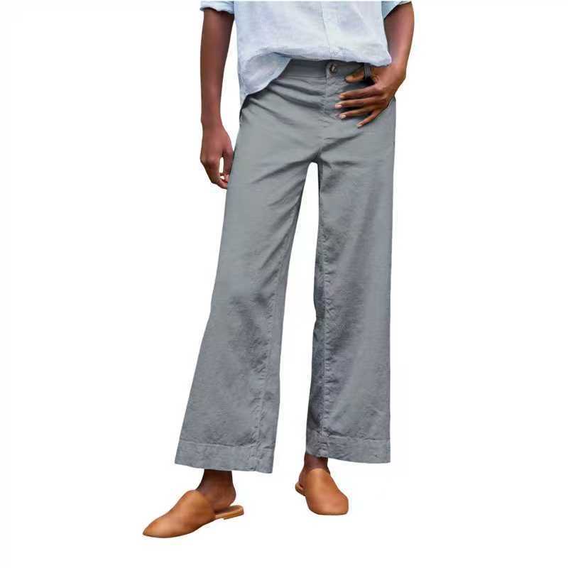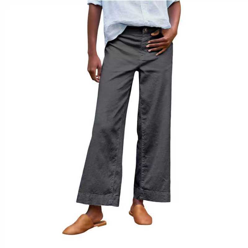 Трансграничный Amazon wish независимая станция женская одежда хлопок конопля свободный сплошной цвет за эластиной талии карманные прямые брюки