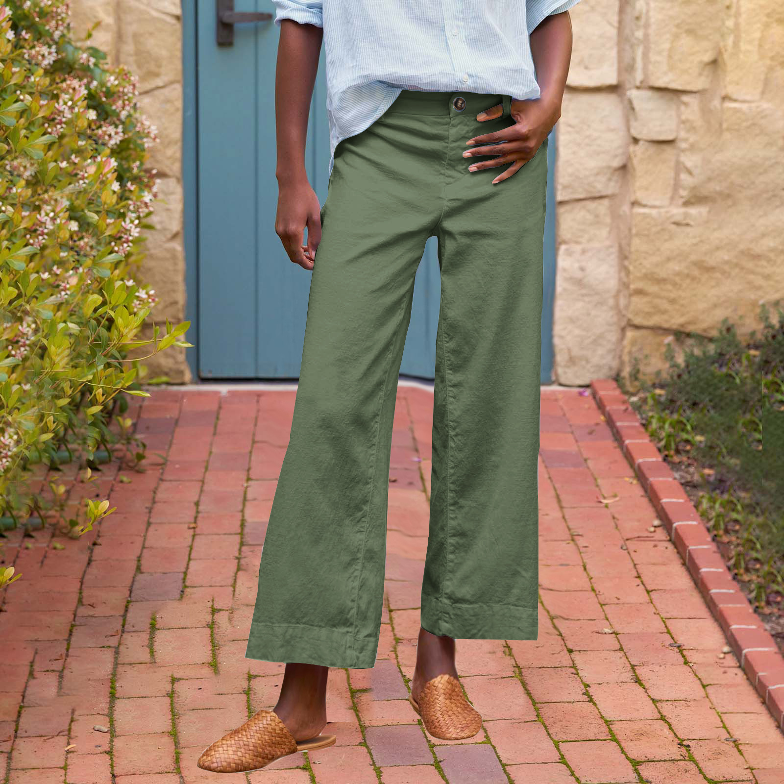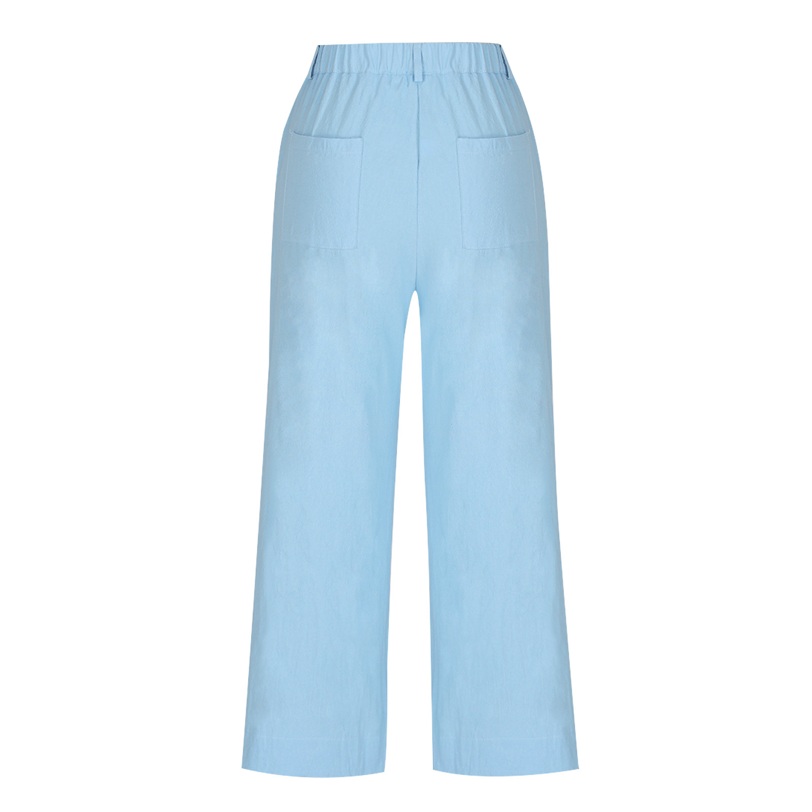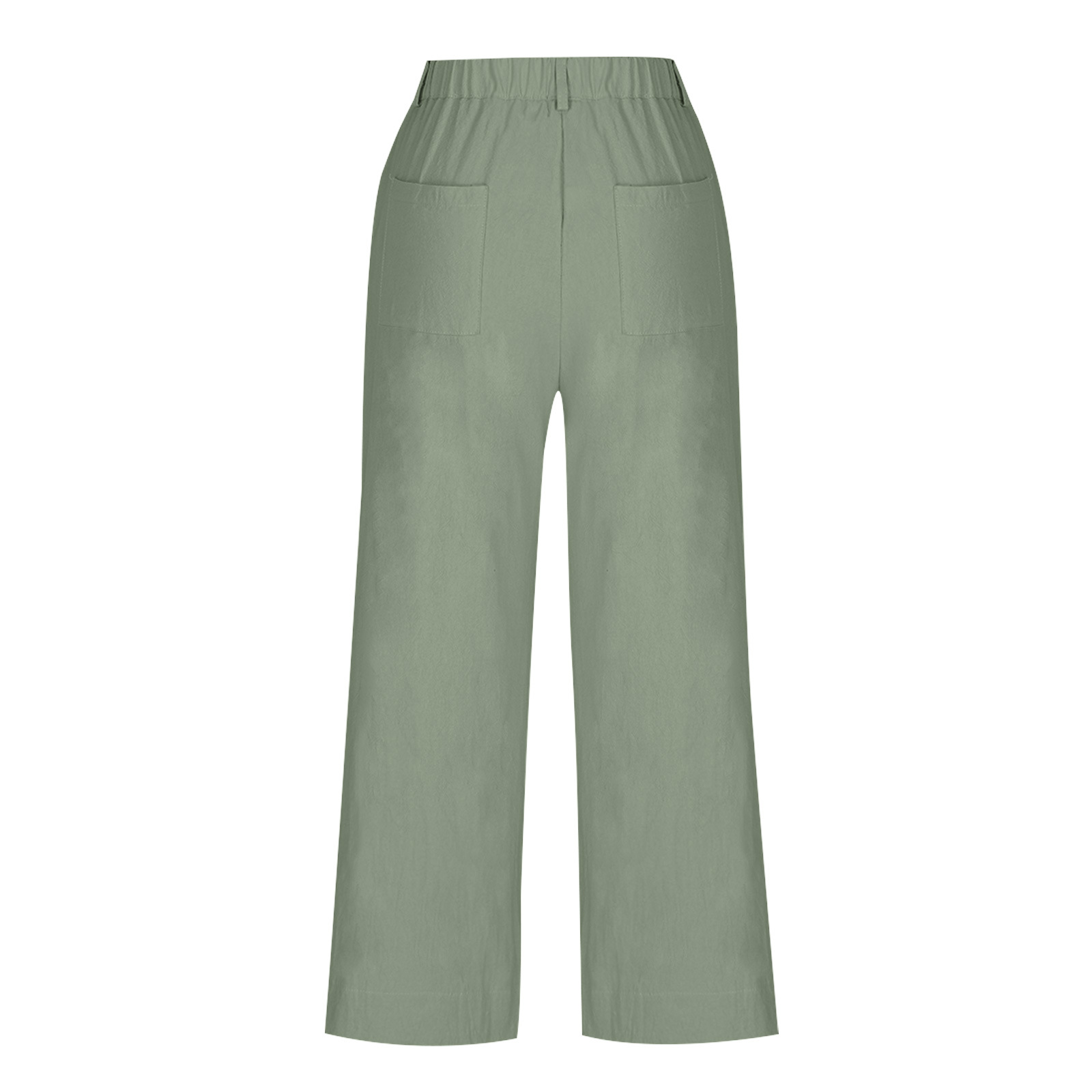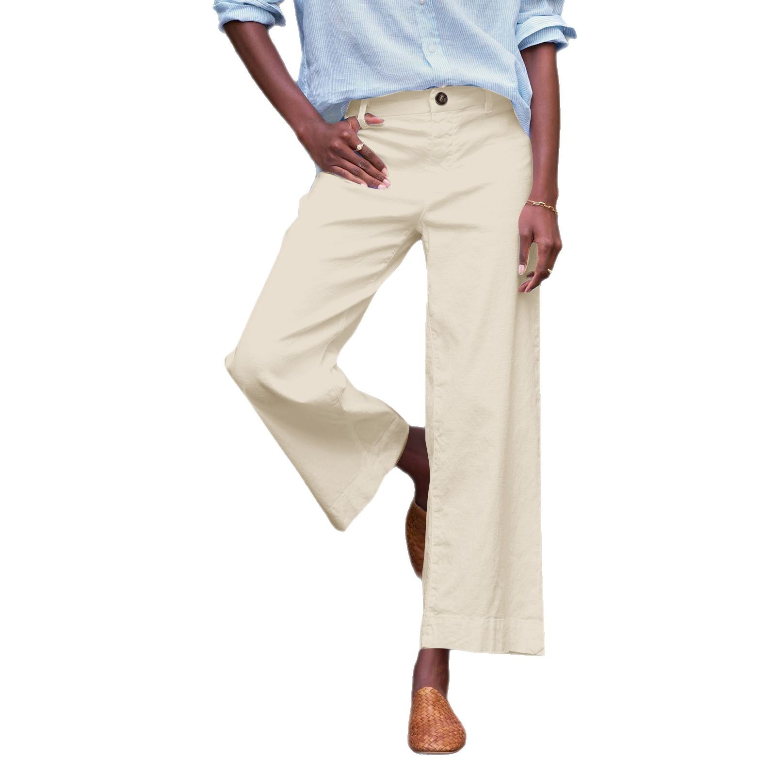 Трансграничный Amazon wish независимая станция женская одежда хлопок конопля свободный сплошной цвет за эластиной талии карманные прямые брюки