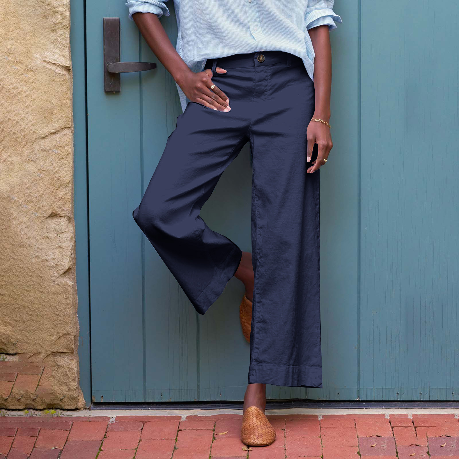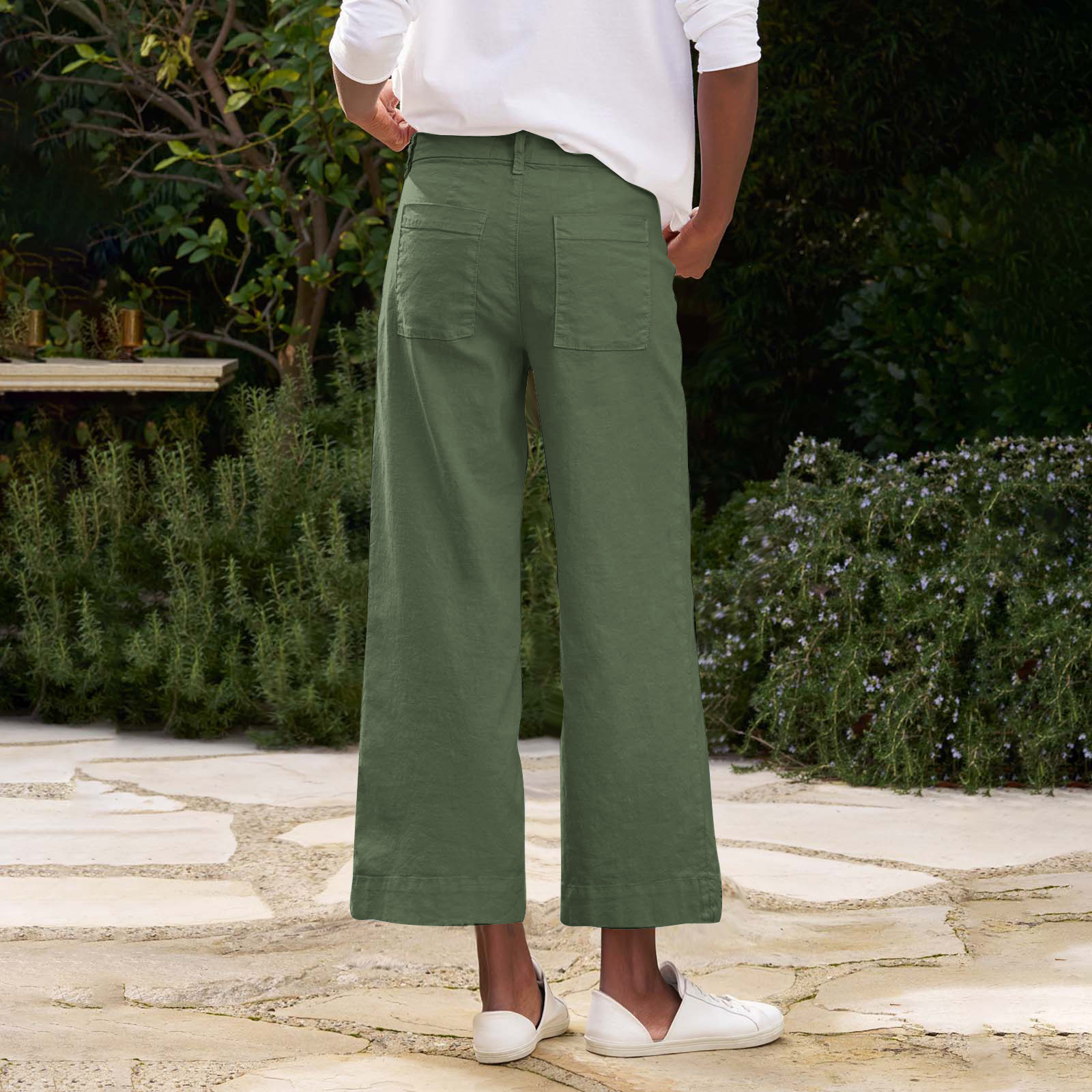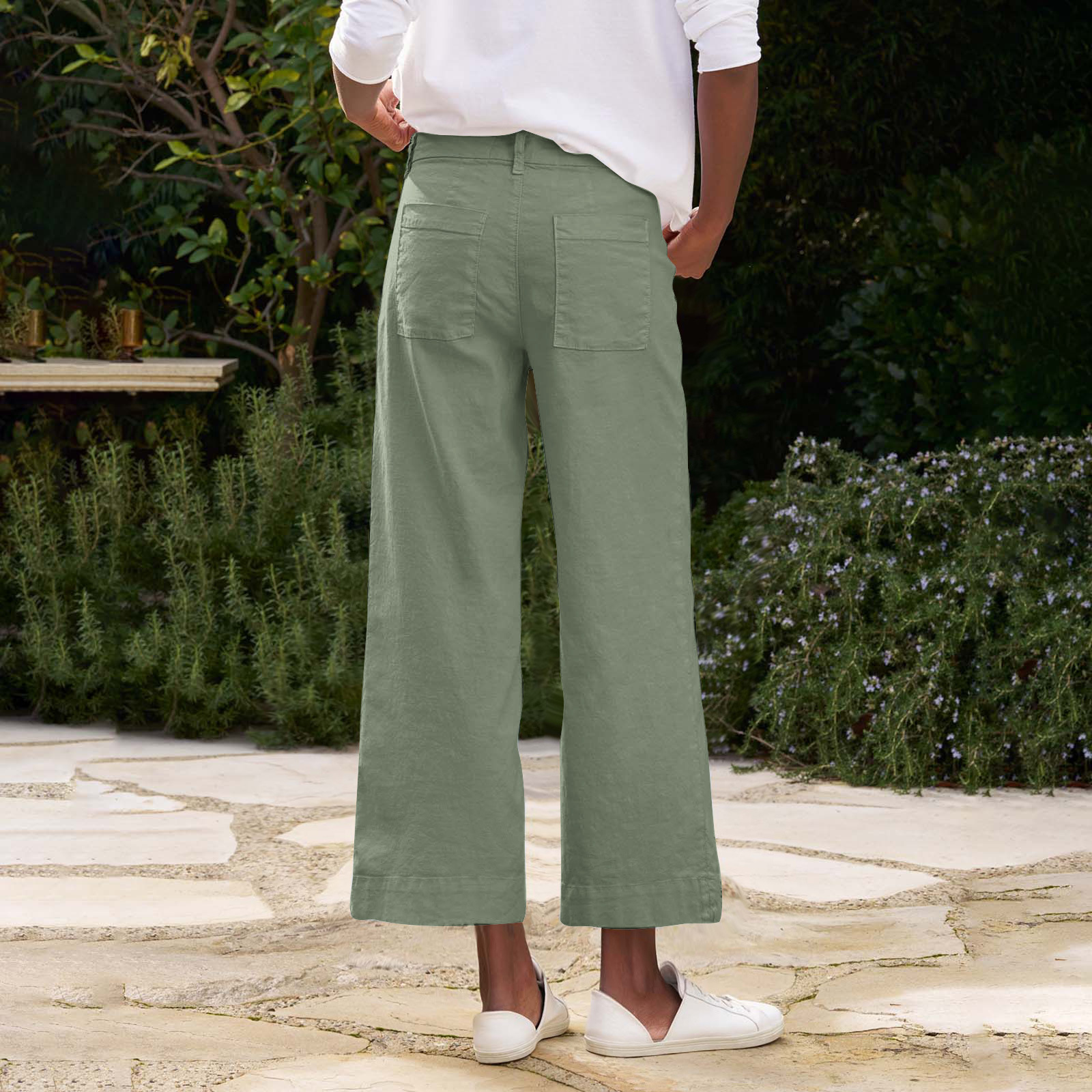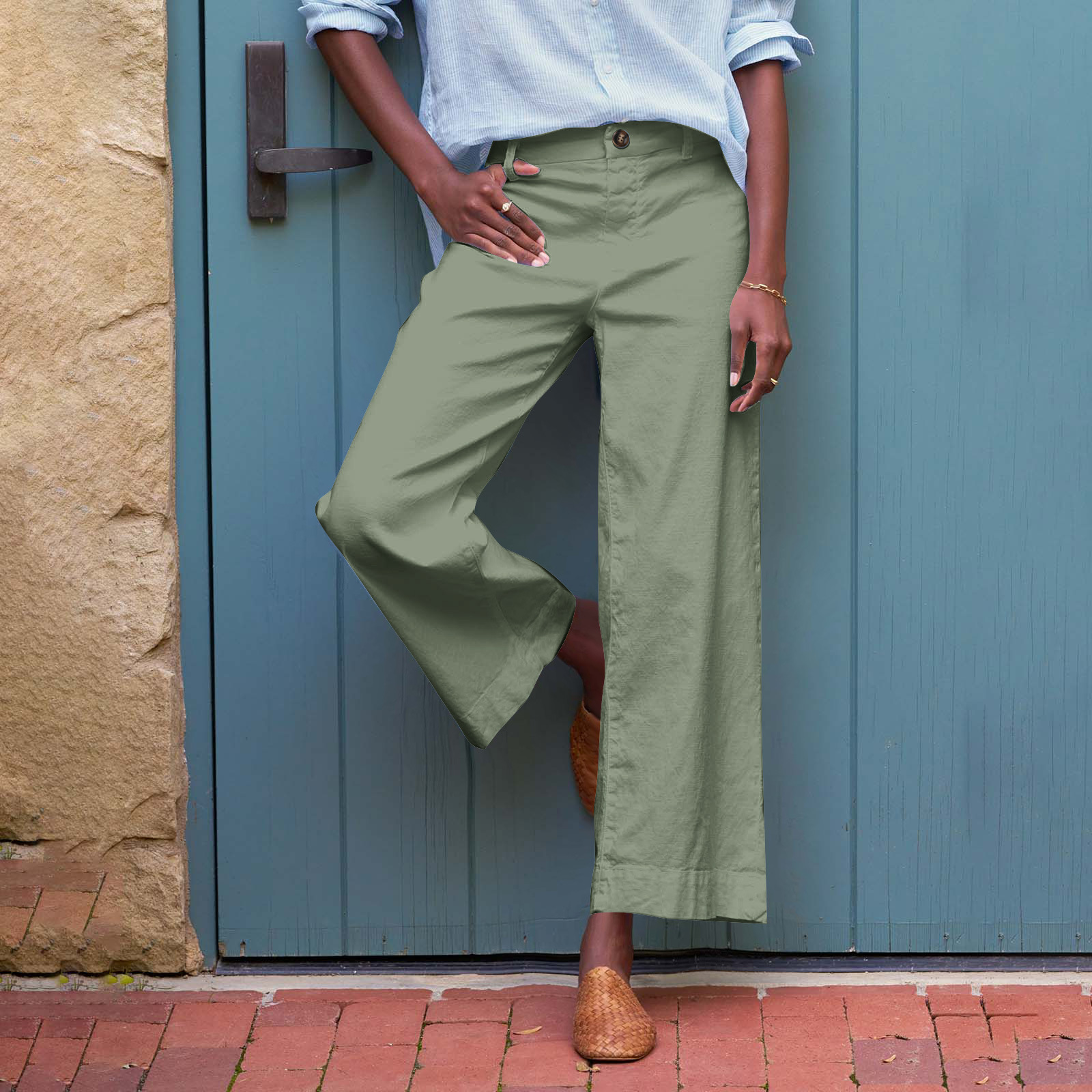 Трансграничный Amazon wish независимая станция женская одежда хлопок конопля свободный сплошной цвет за эластиной талии карманные прямые брюки