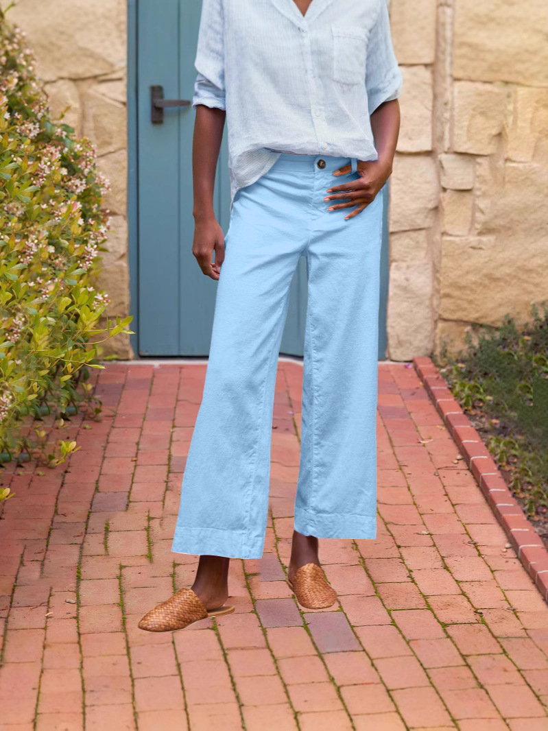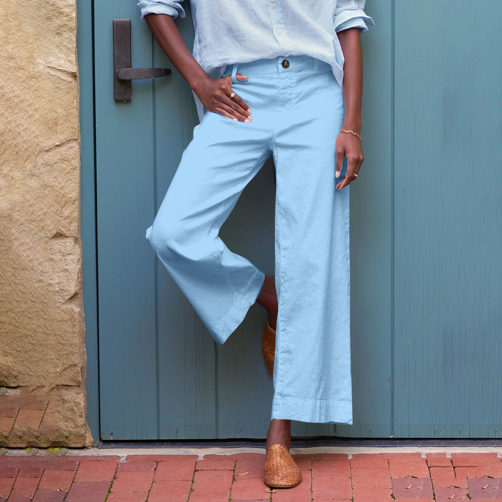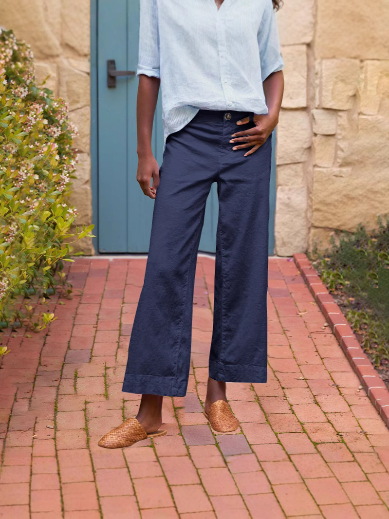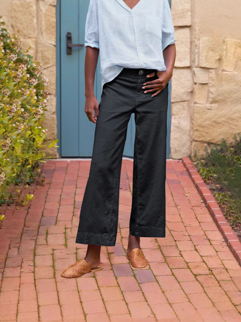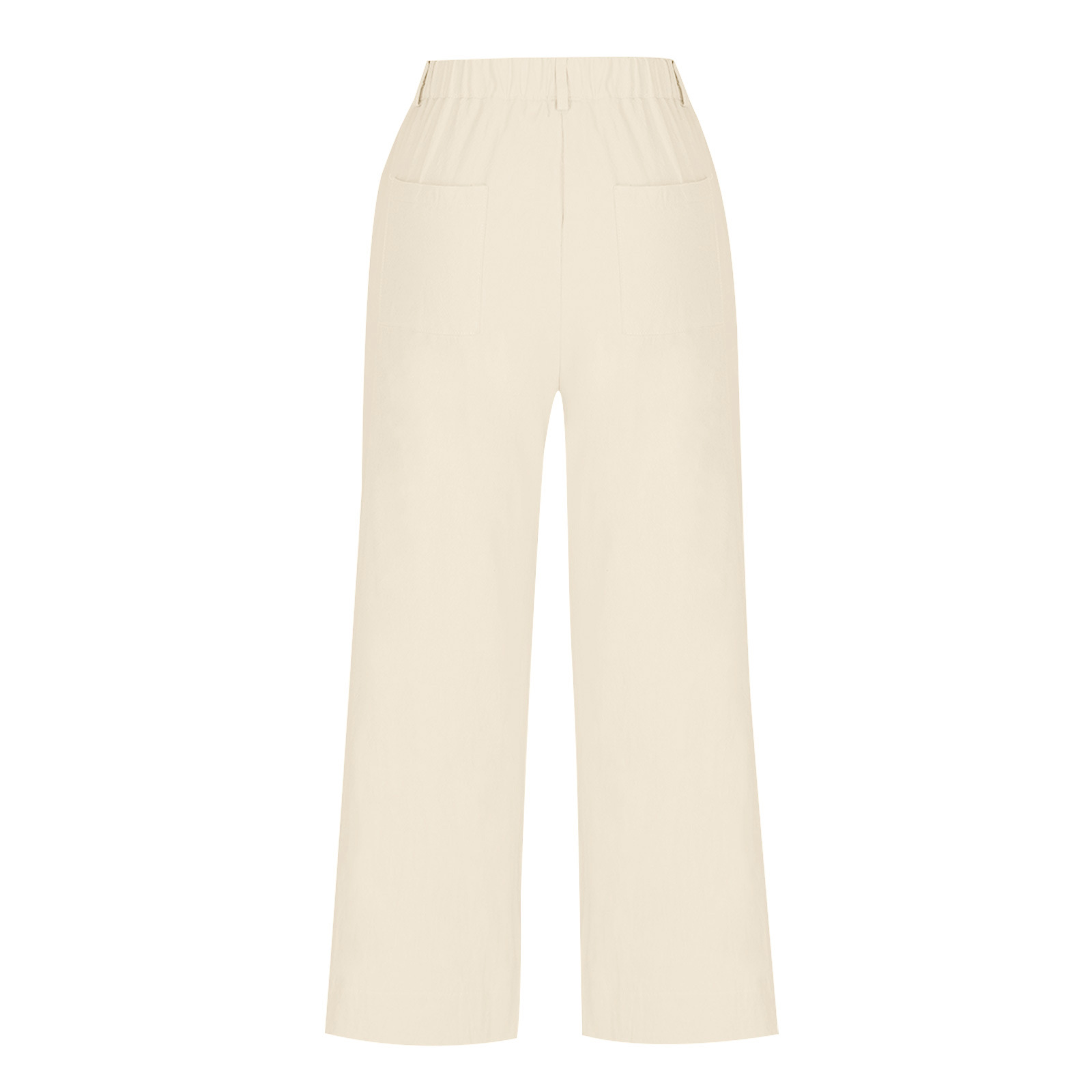 Трансграничный Amazon wish независимая станция женская одежда хлопок конопля свободный сплошной цвет за эластиной талии карманные прямые брюки