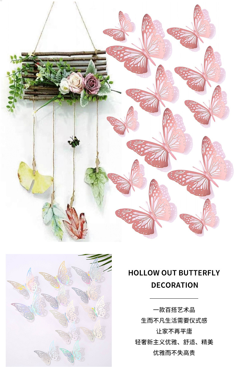 Полые наклейки на стену с бабочками, трехмерные наклейки на стену с бабочками, фоновое украшение, красочные наклейки с бабочками, украшение на стену, фоновые наклейки на стену