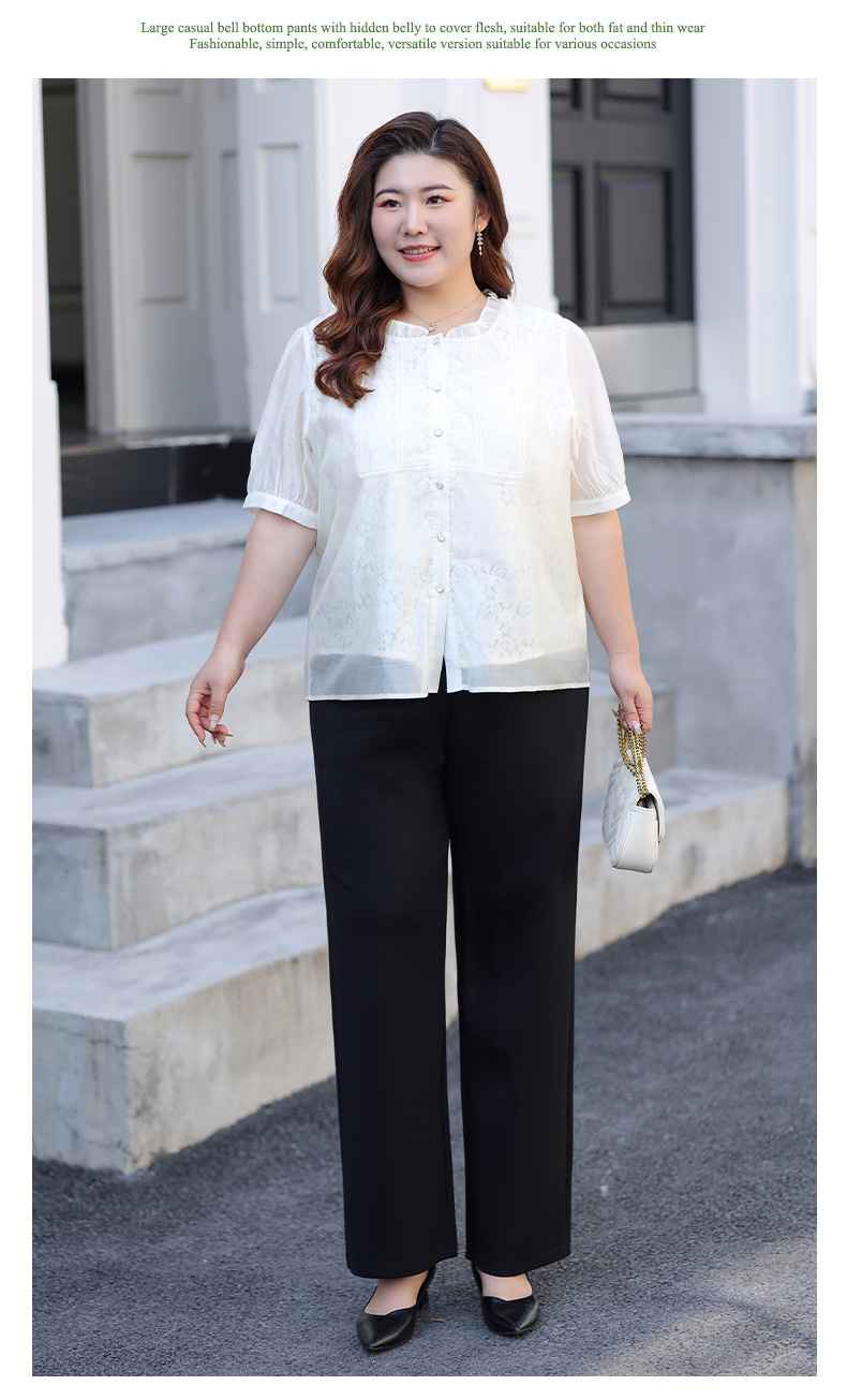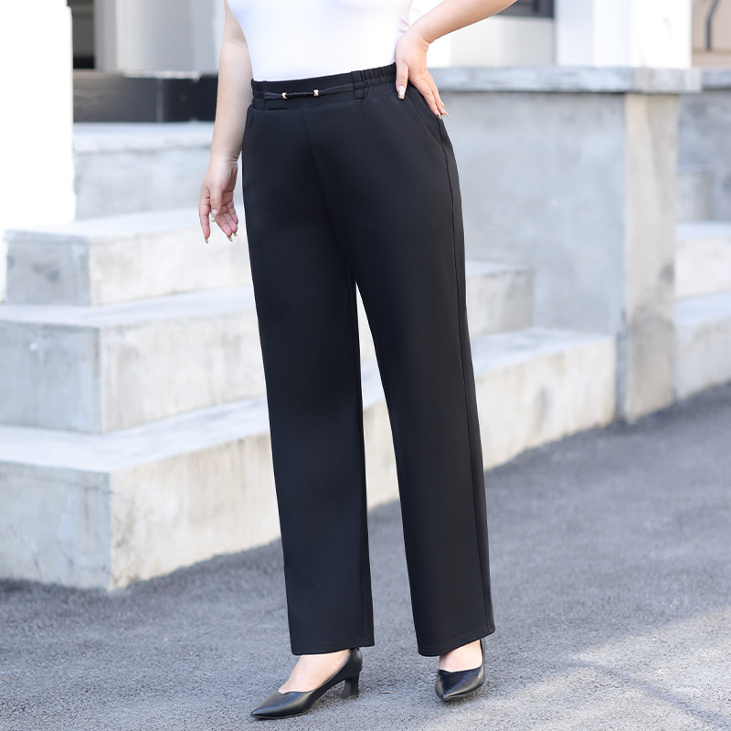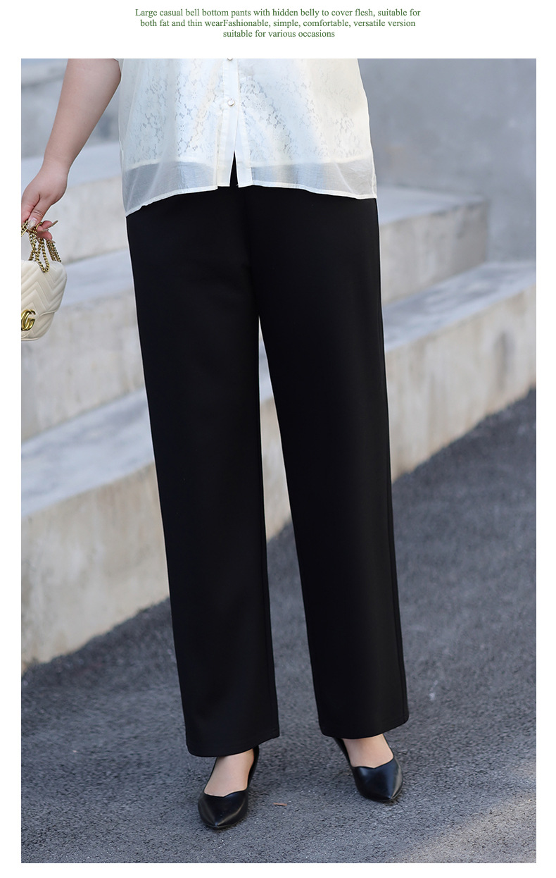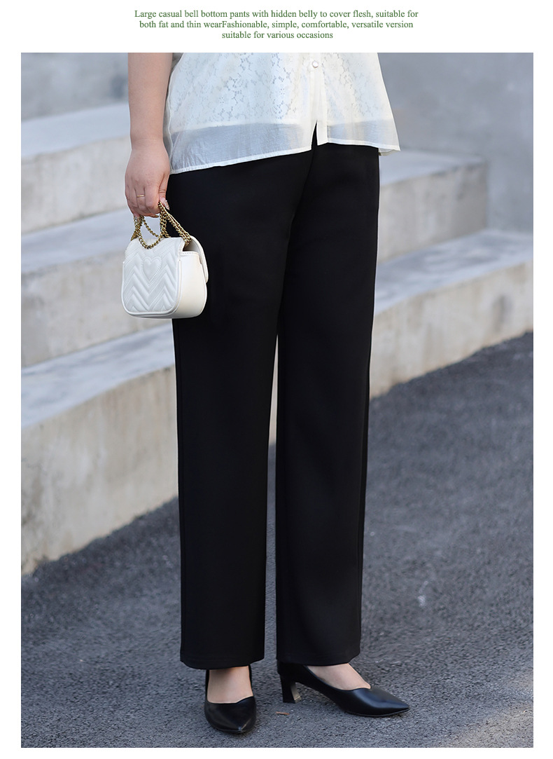 Черные женские повседневные брюки больших размеров, новинка лета 2026, с эластичным поясом, струящиеся широкие прямые брюки для женщин.
