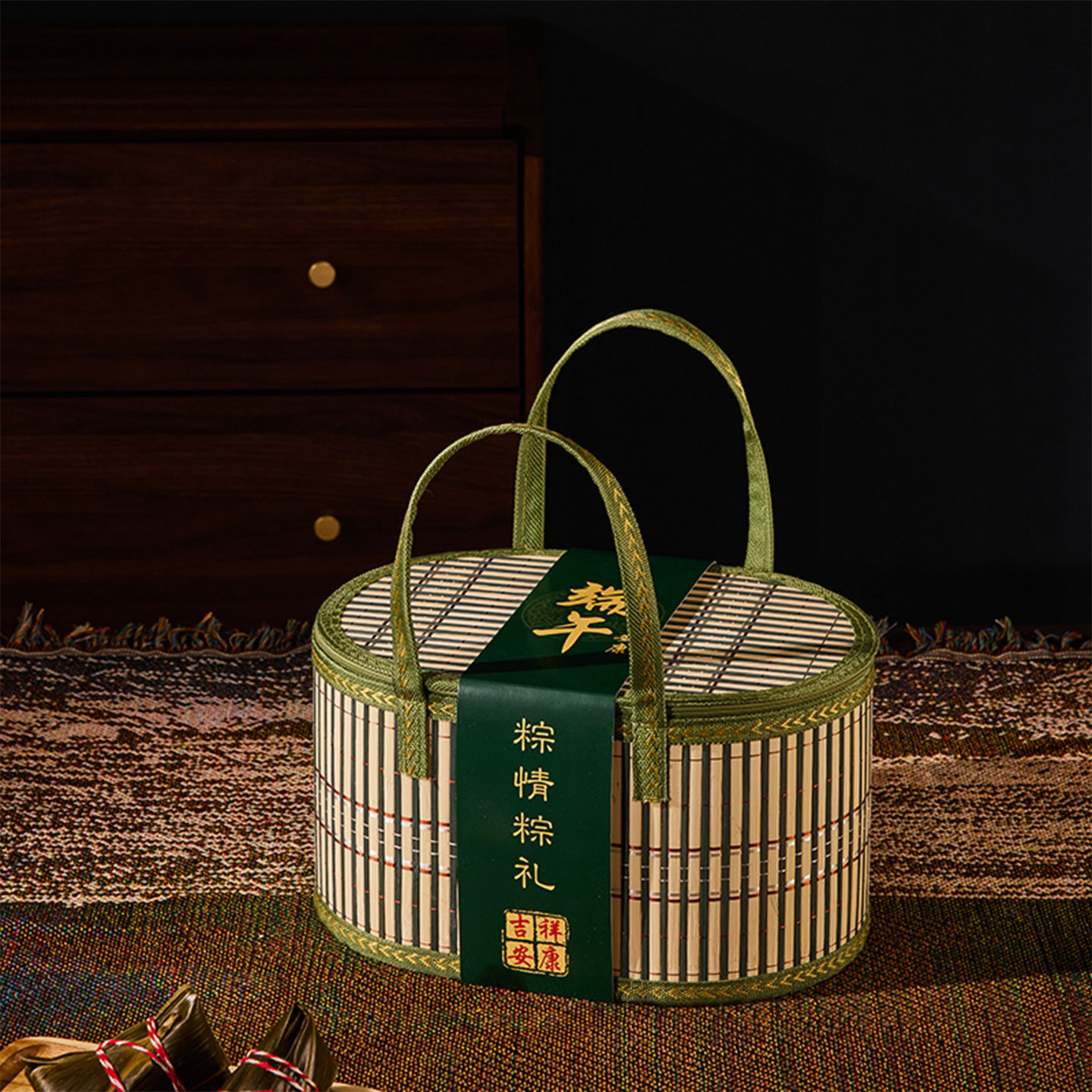 Бамбуковая корзина Ручная корзина Ручная корзина Рельсовый пирог с яйцом, крабом, фруктами из байберри