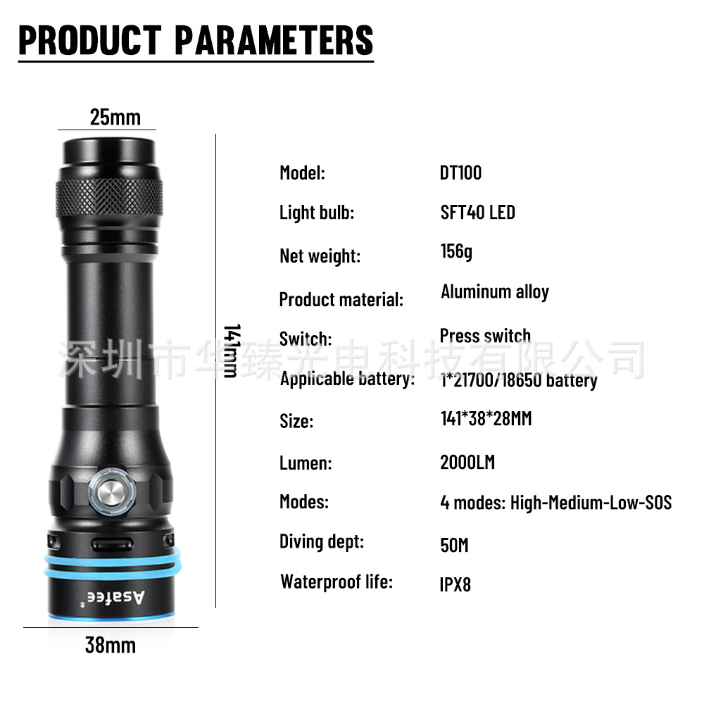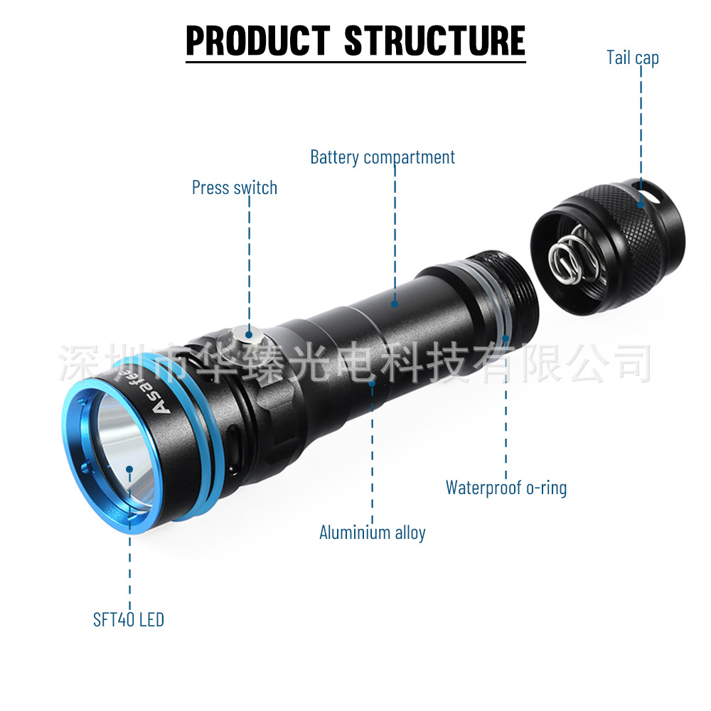 25 лет профессионального погружения фонарик SST40 световой шар 2000 High Luming с зарядом питания показывает глубину погружения 60 метров