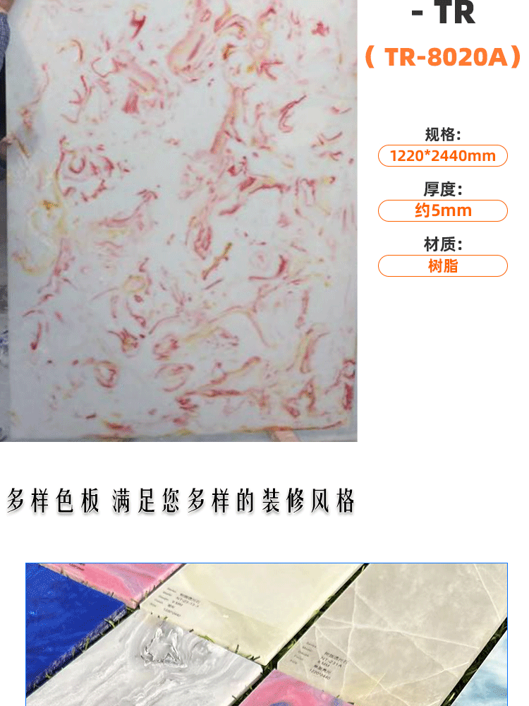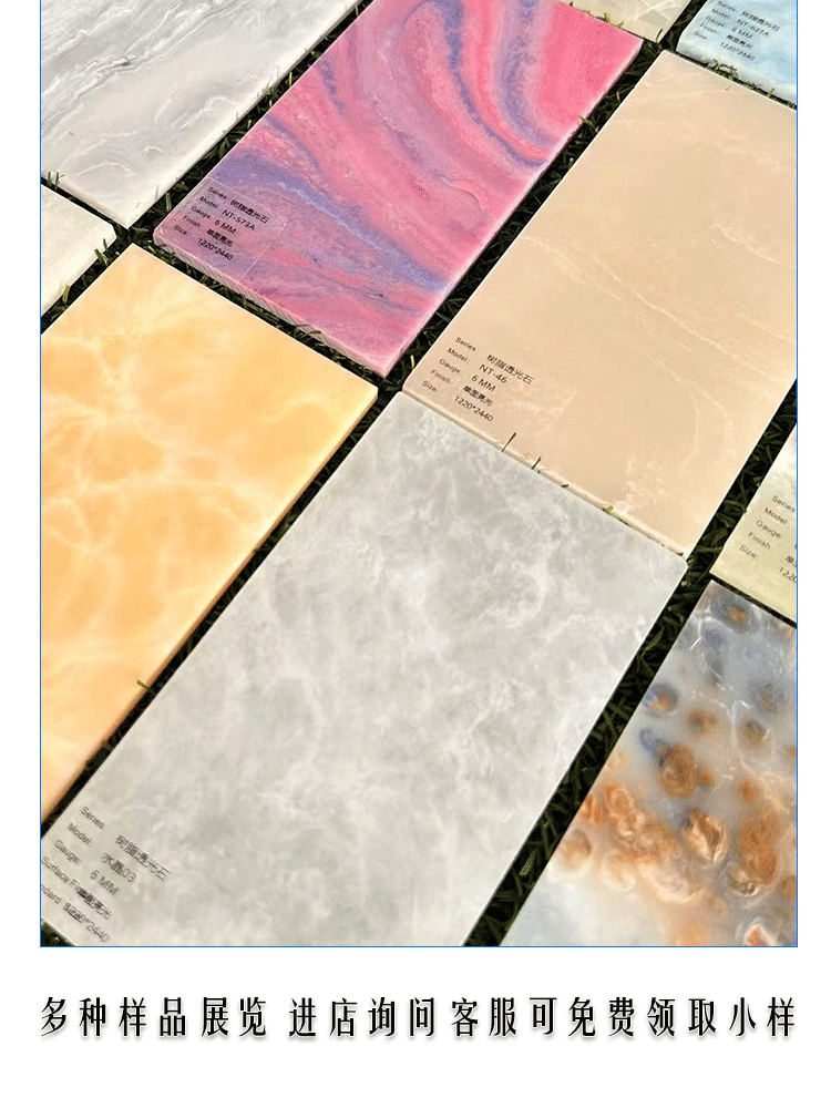 Камень Радуга CH-1001 1220*2440мм (по ссылке образец, спецификация 85*150мм); Камень Радуга CH-1005 1220*2440мм (по ссылке образец, спецификация 85*150мм); Травертин DS62 1220*2440мм (ссылка образец, спецификация 85*150мм); Травертин DS63 1220*2440мм (ссылка образец, спецификация 85*150мм); Феникс камень FH553 1220*2440мм (по ссылке образец, спецификация 85*150мм); Symphony Stone HC-302A 1220*2440мм (по ссылке образец, спецификация 85*150мм); Symphony Stone HC-303A 1220*2440мм (ссылка на образец, спецификация 85*150мм); Стримерный камень 1220*2440мм (по ссылке образец, спецификация 85*150мм); Норвежский нефрит 1220*2440мм (по ссылке образец, сетки 85*150мм)