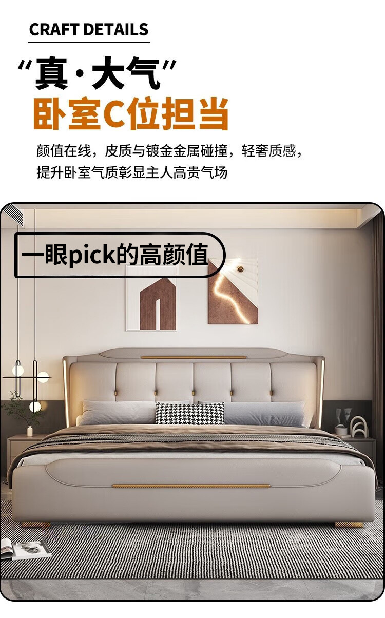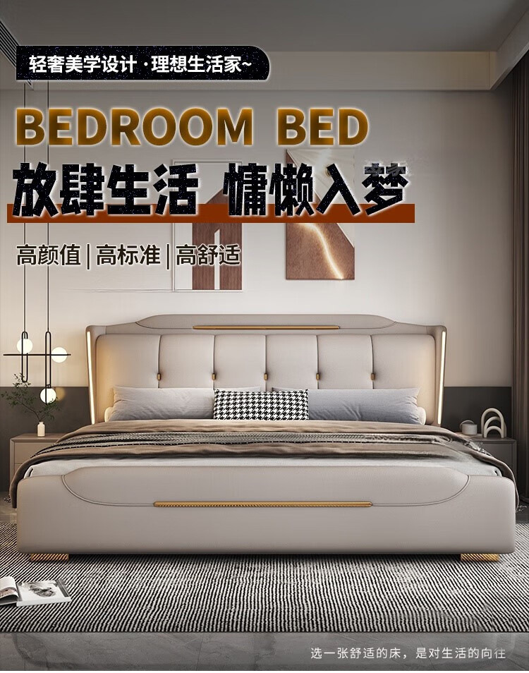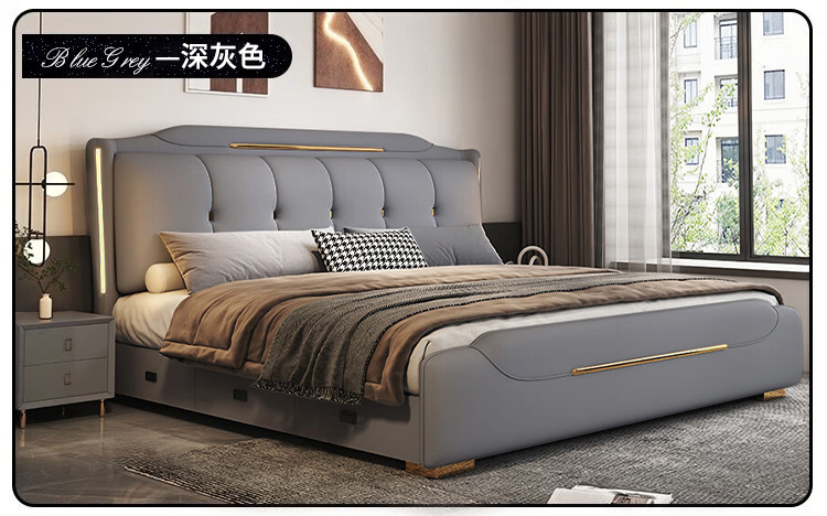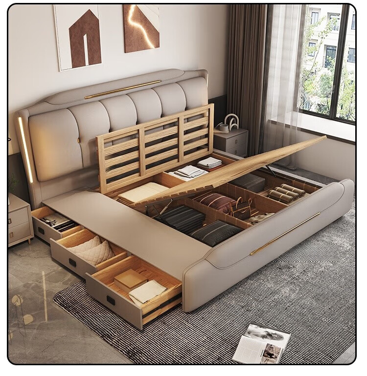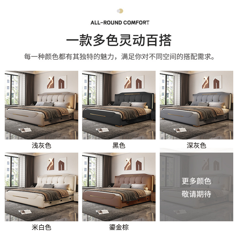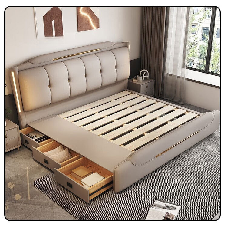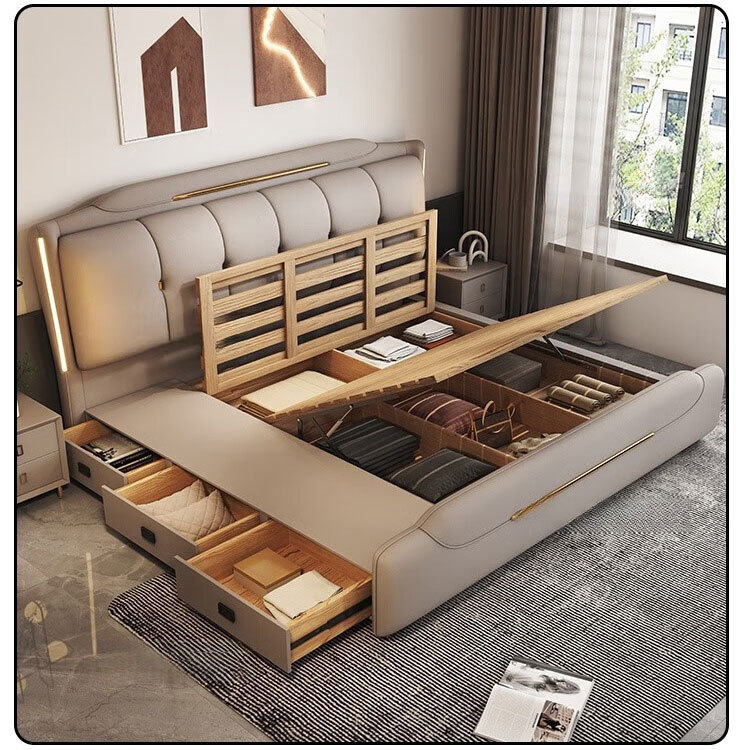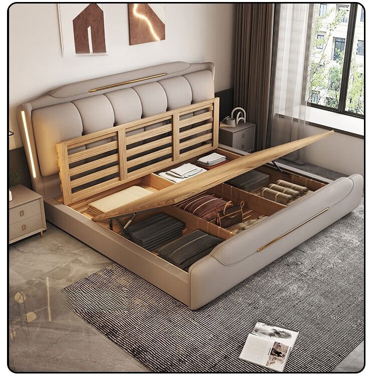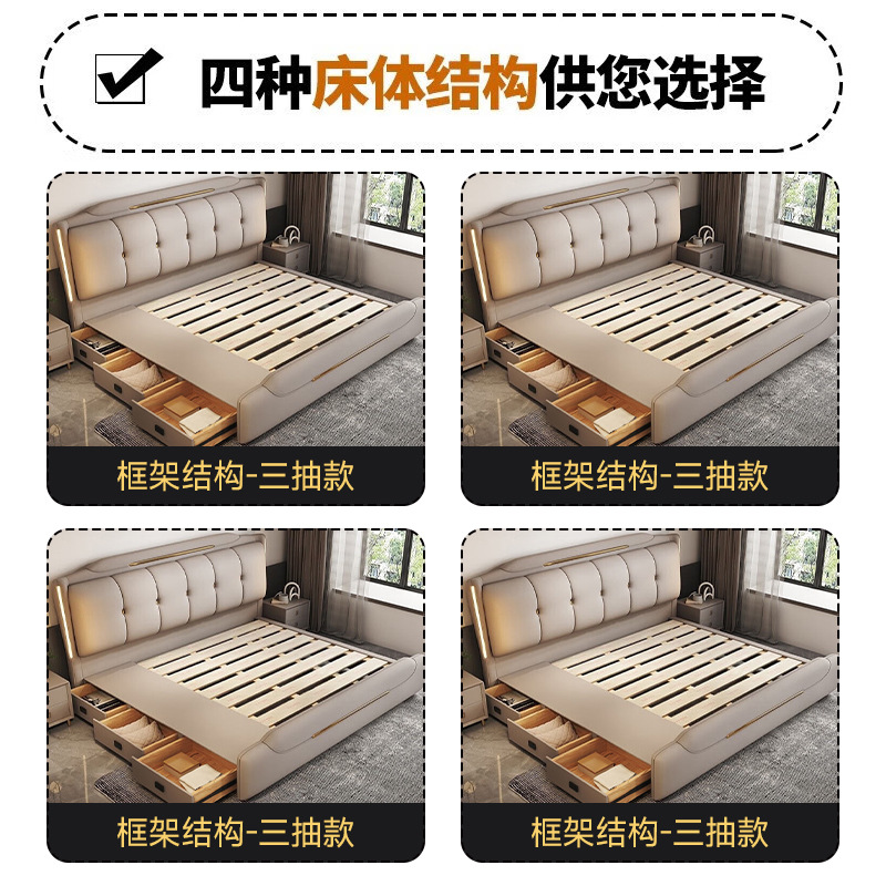 Минималистская кожаная кровать Двуспальная кровать 1.8x2 м Кровать King-size 1,5 м Домашняя спальня кровать для хранения татами