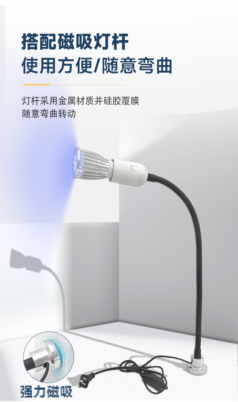 Светодиодный фиолетовый светильник для одежды и освещения автомобилей, специально разработанный для швейных машин на швейных и обувных фабриках, мощный магнитный УФ-светильник со сменными головками, 5W7W12W, сверхъяркий.