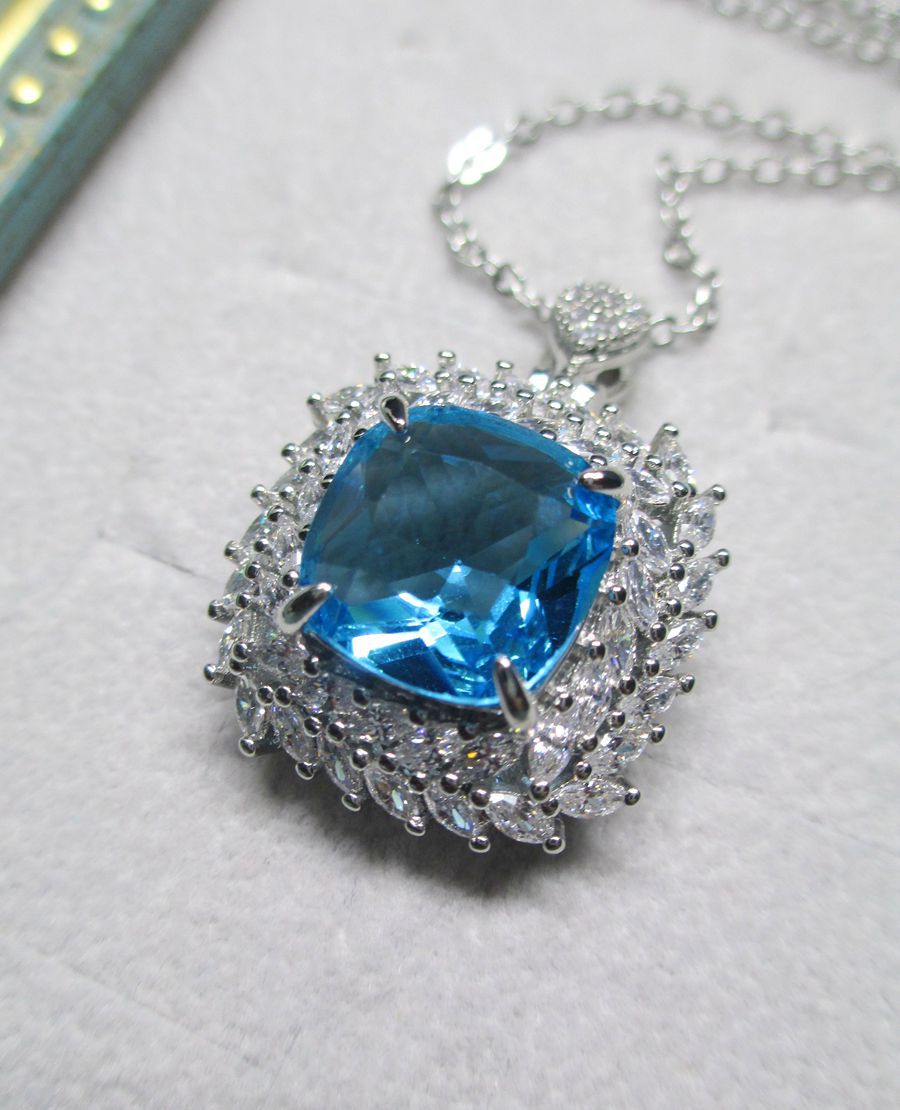 Искусственный кристалл циркон инкрустирован торпа аквамарин ZR19 позолоченный изумрудный квадратный обрезанный ожерелье