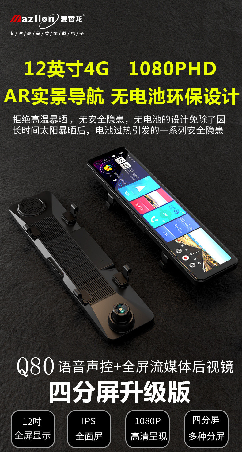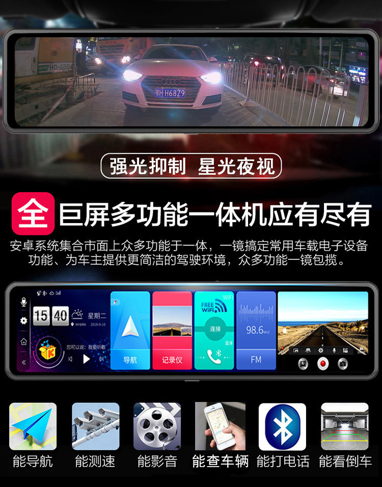 F6T новый 12-дюймовый видеорегистратор 4G потоковый полноэкранный HD зеркало заднего вида навигация электронная собака ADAS один