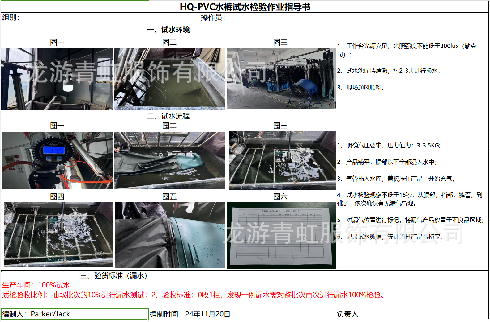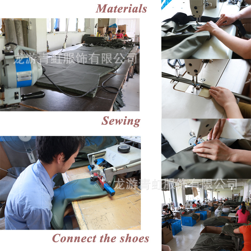 龙游青虹服饰有限公司隶属于杭州卿阳鞋业公司,于2006年开始专业从事雨鞋和户外打猎、钓鱼防水裤设计和生产。工厂占地8000平方米,拥有9条生产线,水裤产能为360,000条/年,雨鞋产能为1,200,000双/年。我司主要承接传统外贸订单、亚马逊跨境电商订单和国内订制订单。 可接受和提供OEM 贴牌生产、ODM 原创设计生产服务。 提供各项验厂服务,也可配合客人公司的验厂要求。产品品质深受客户信赖,产品销往全球各市场。 欢迎客位新老客户下单、咨询。