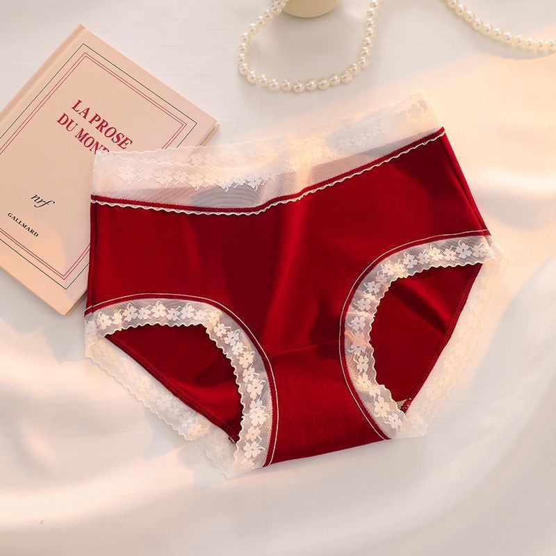 Ненормальные красные хлопчатобумажные кружевные трусики