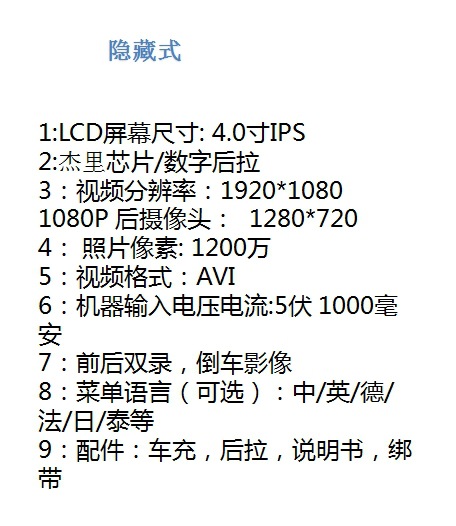 Образ задним ходом, подвижное обнаружение, циклическая запись, запись переднего и заднего видео.