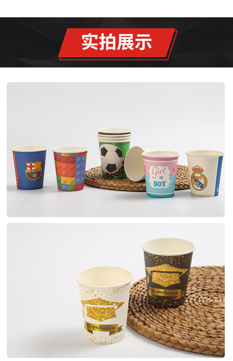Одноразовые бумажные чашки чашки из соевого молока офисные чашки для чая с горячей и холодной водой Коммерческие цветные печатные тематические бумажные чашки для вечеринок