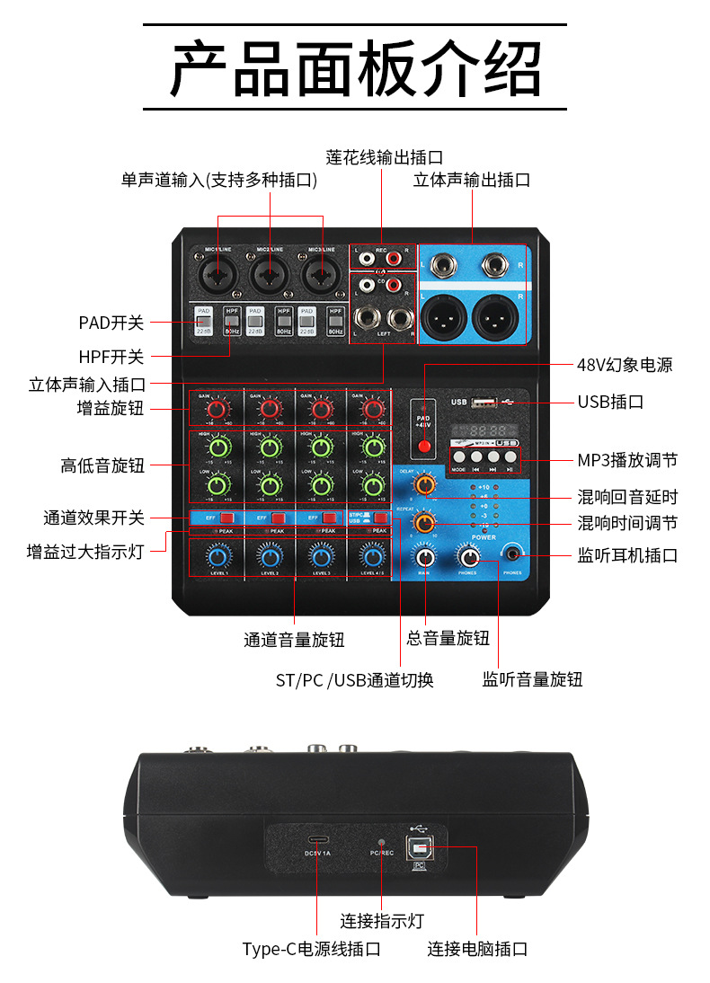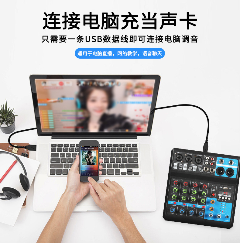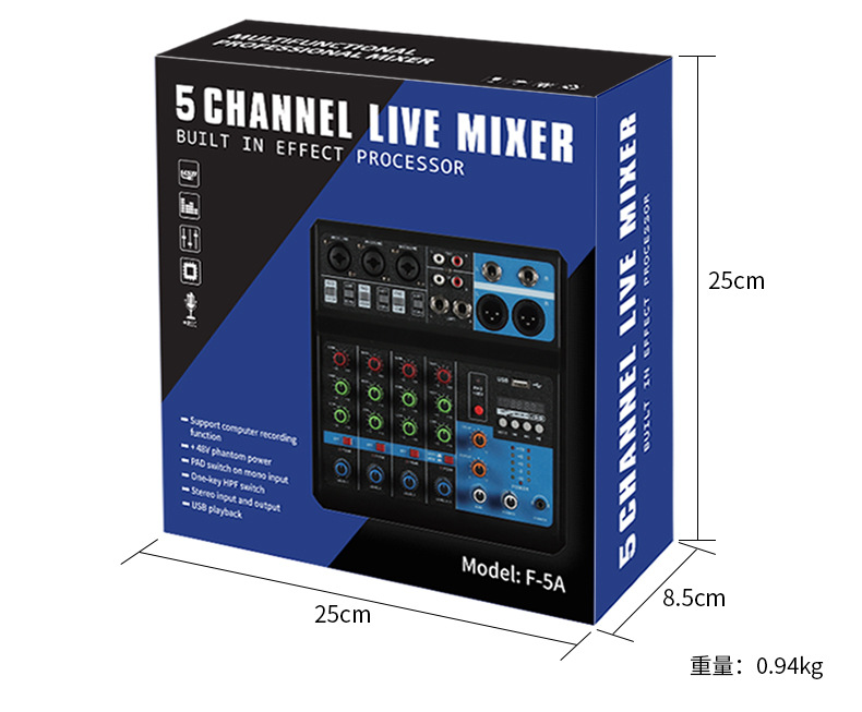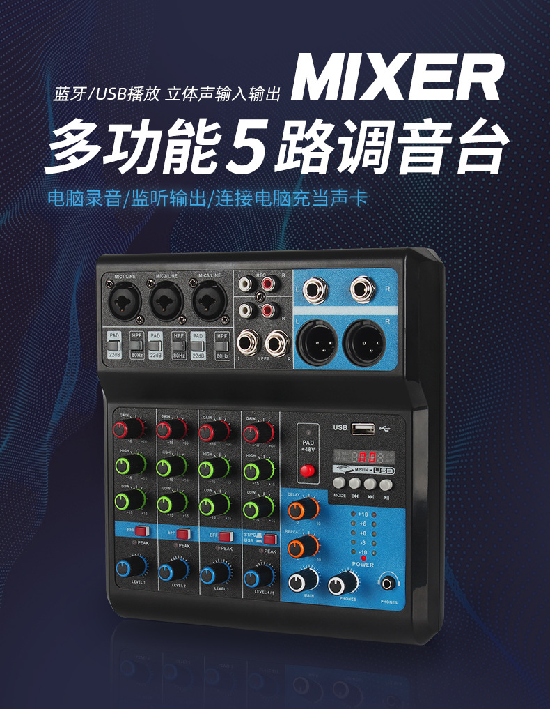Enping новый маленький 5-кановый микшер запись DJ мобильный телефон компьютер звуковая карта USB с Bluetooth микшер эффект