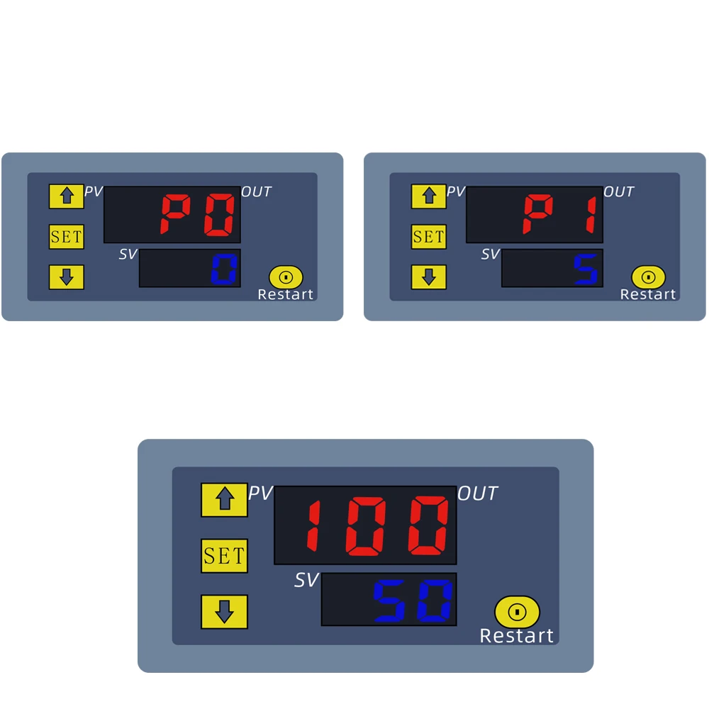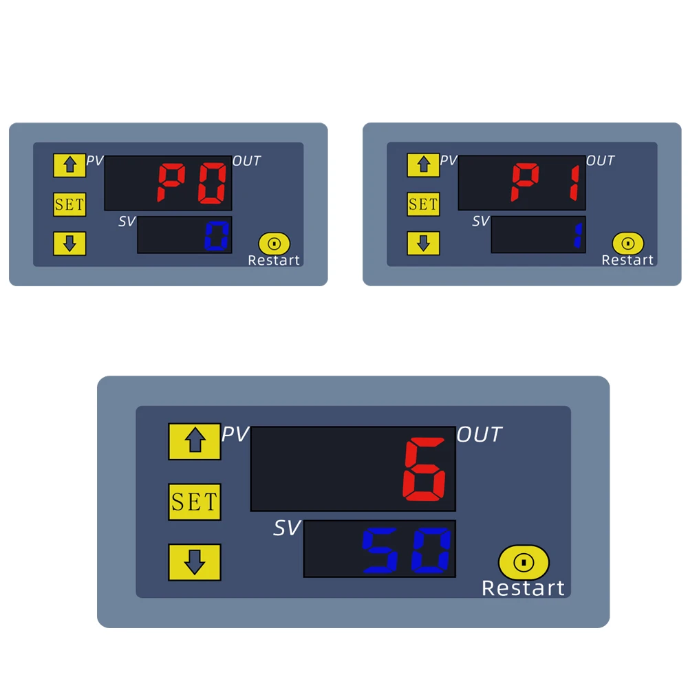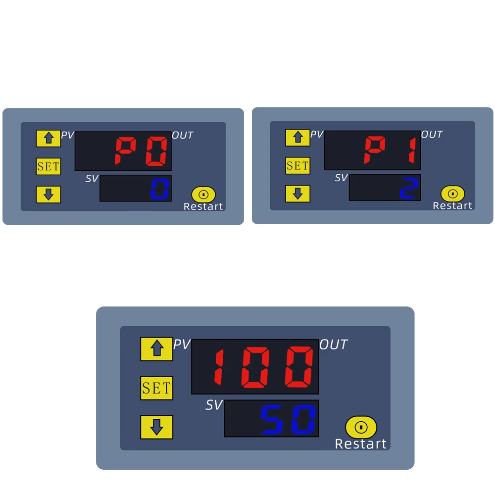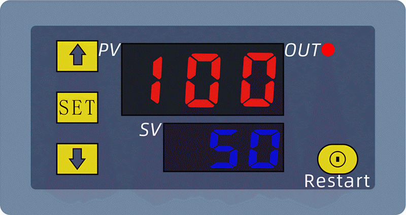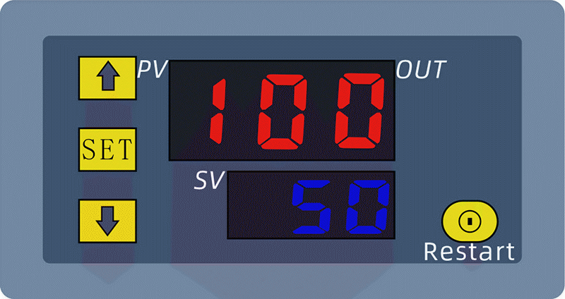 想象一下,您打开机器100秒,然后关闭机器50秒,最后打开机器。 P1 = 3,将控制参数PV-Nixie管放在100处,将SV-Nixie管放在50处。