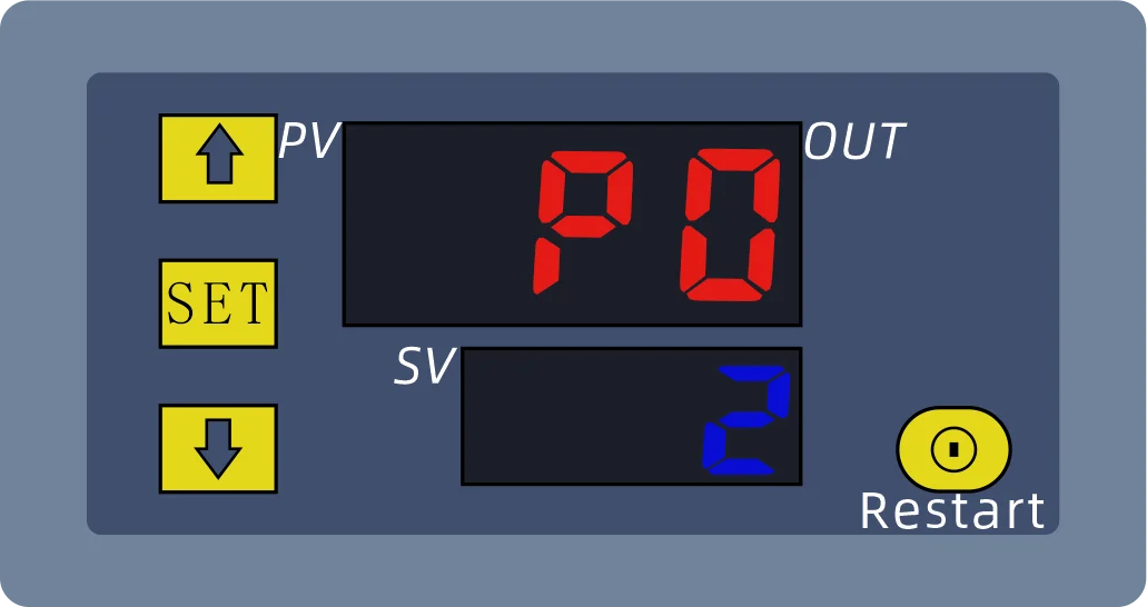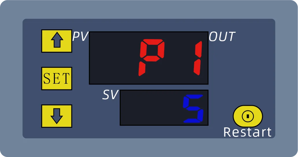 1。交付的关闭意味着打开并随后关闭。 P1 = 1,将PV-Nixie管的时间参数设置为6,而SV忽略了设置。