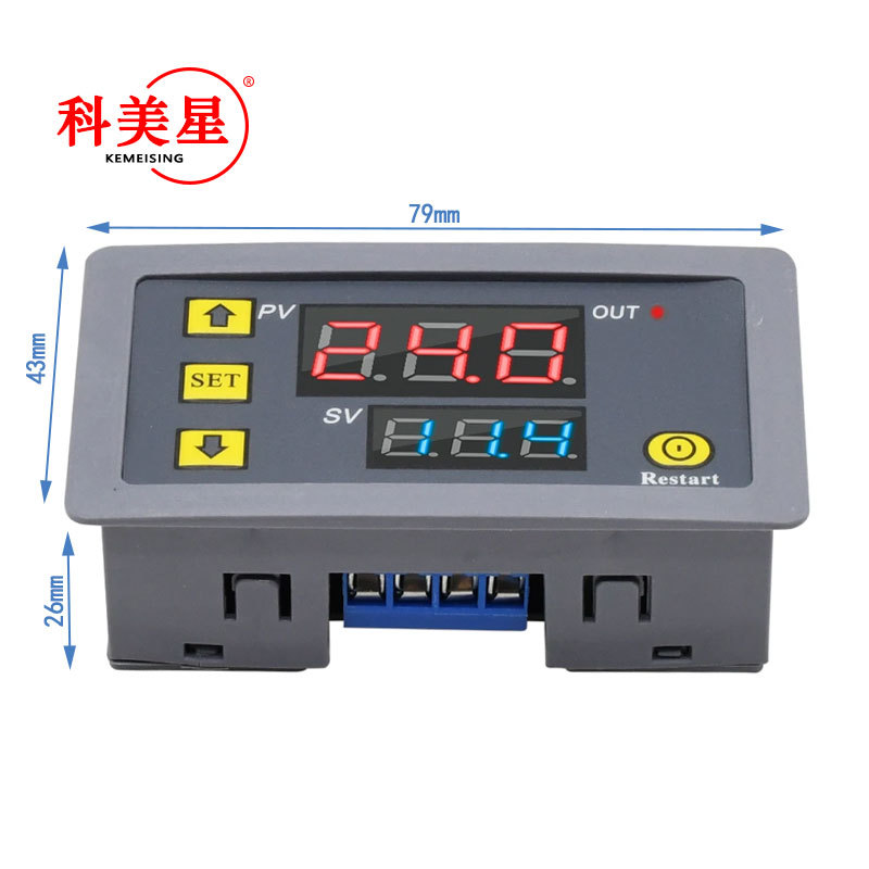 220V延时定时器W3230 无限循环延迟双数显时间继电器模块