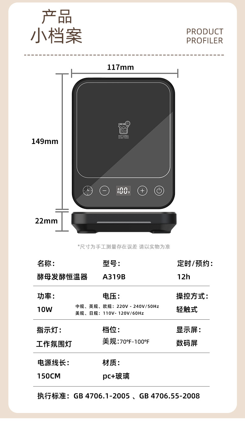 Устройство для домашнего приготовления дрожжевых продуктов, умная подогревающая подставка с регулировкой температуры до 1 градуса Фаренгейта.